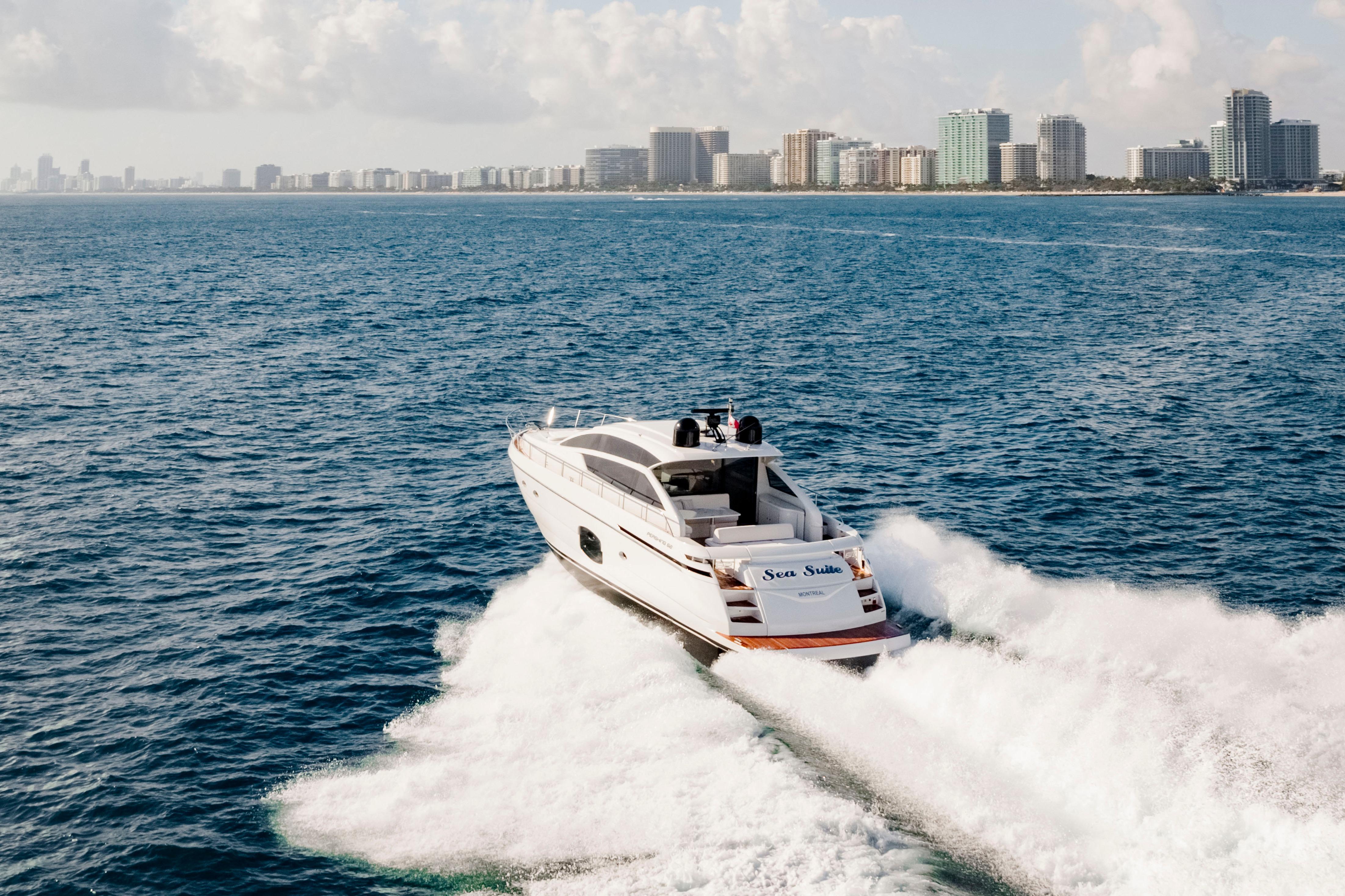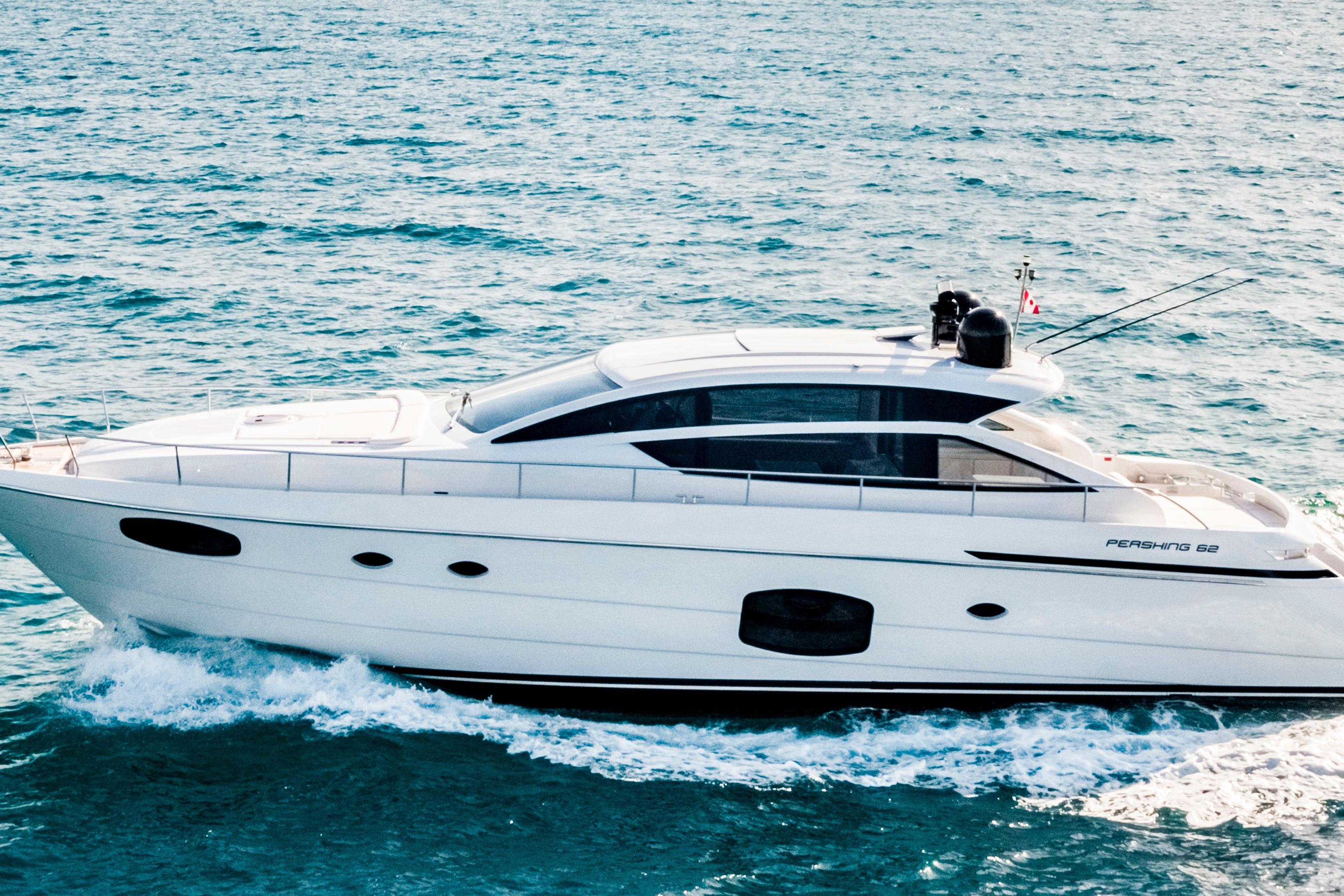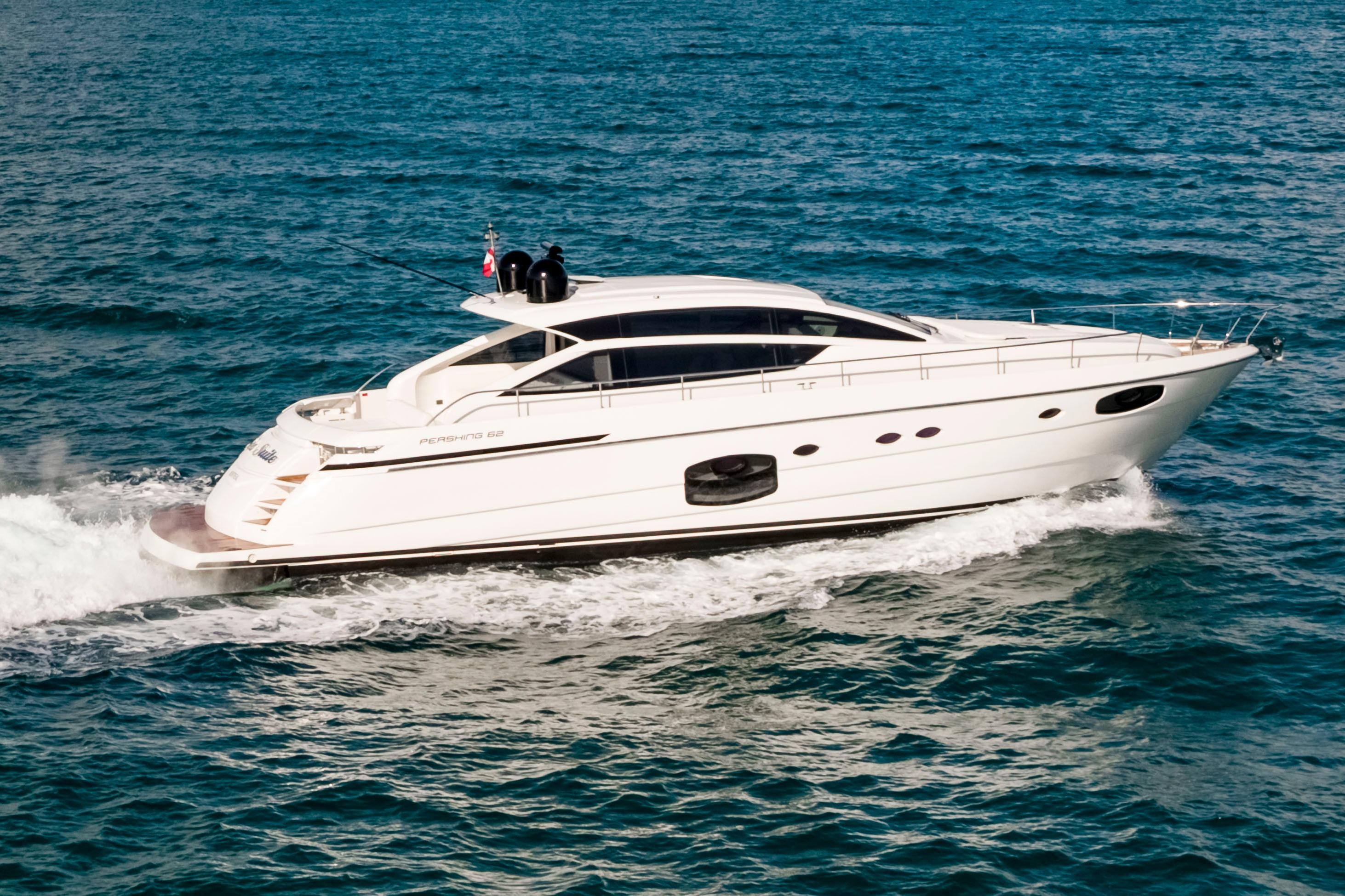 For those who are new to sailing but have a passion for speed, experiencing the thrill of cruising at 48 knots can be likened to driving an extreme supercar. The only way to truly feel this rush is to step aboard the Pershing 62, known as SEA SUITE.From the moment you enter, you are greeted by an impressive aesthetic. The sleek lines of the hull and superstructure convey a sense of speed right away. The aggressive profile and sporty essence are enhanced by the design of the hull windows, a hallmark of the “Made by Pershing” philosophy. These windows not only add to the yacht’s stunning appearance but also provide an abundance of natural light in the full-beam owner’s cabin amidships and the VIP cabin in the bow.Equipped with a powerful 1550 HP MAN engine, the Pershing 62 can achieve a top speed of 48 knots. However, it is not just about speed; this boat also excels in maneuverability thanks to its bow and stern thrusters, autotrim system, and user-friendly docking capabilities. As a result, its impressive performance is always paired with the enjoyment and comfort of cruising.HighlightsUS Spec'd & Duty PaidMAN V12 1550HP (240hrs)Seakeeper Upgraded 3/3 LayoutWhite Pearl Exterior PaintStarlinkNew Exterior Cushions (2024)Aft Bimini ShadeMaintenance (2) Coats of Antifouling Paint 3/2025Prop Speed 3/2025Surface Drives Serviced 3/2025Seakeeper Serviced 3/2025