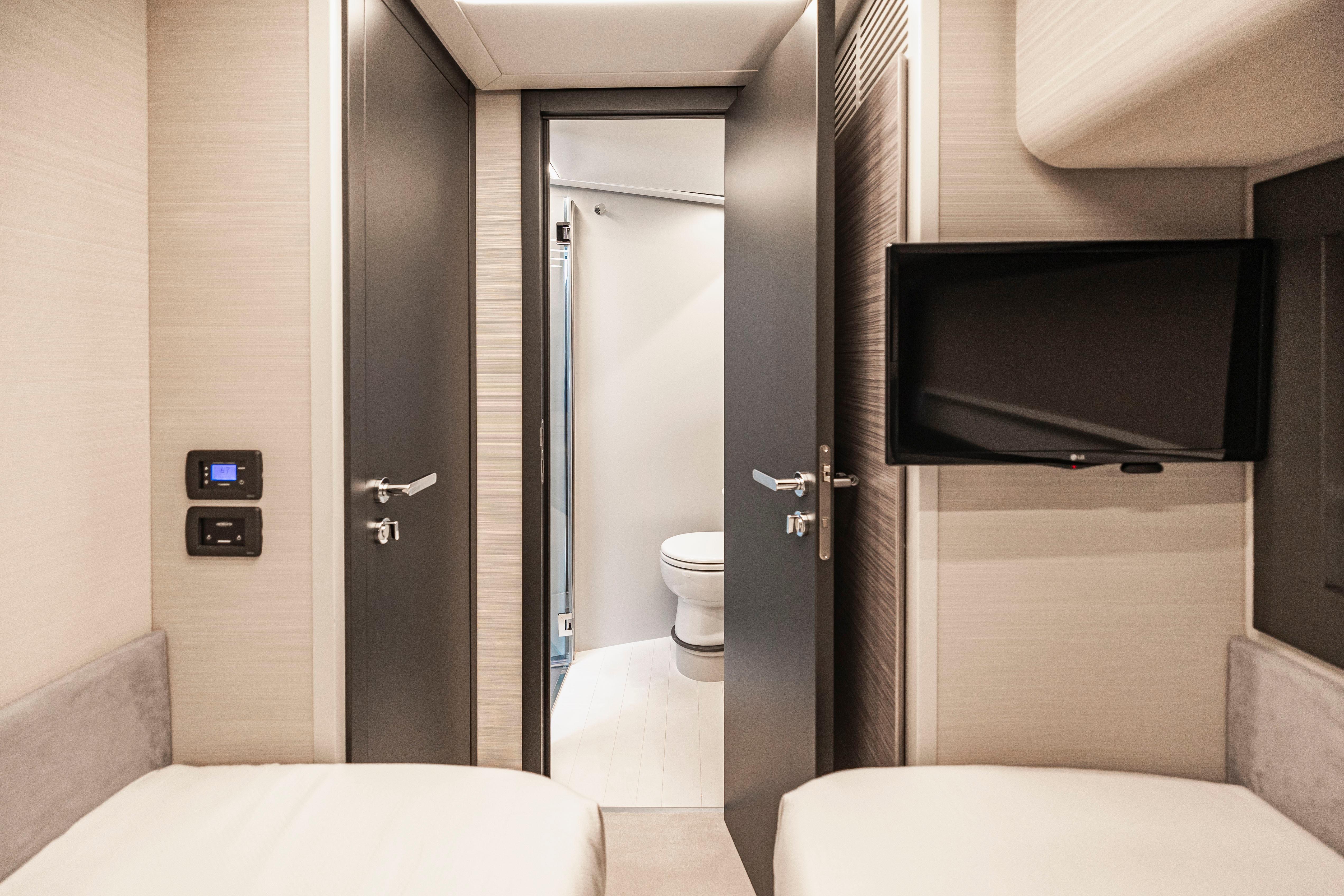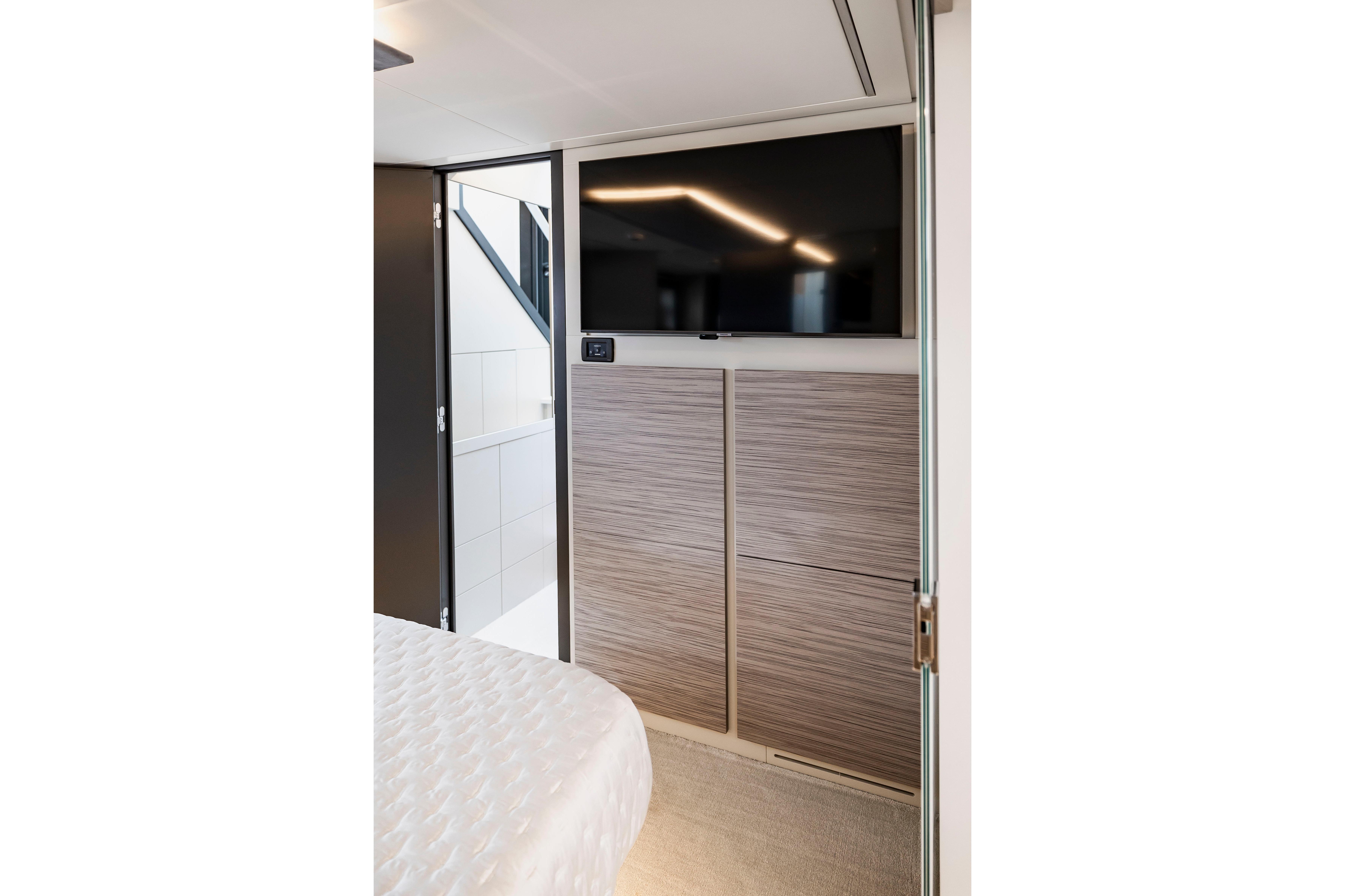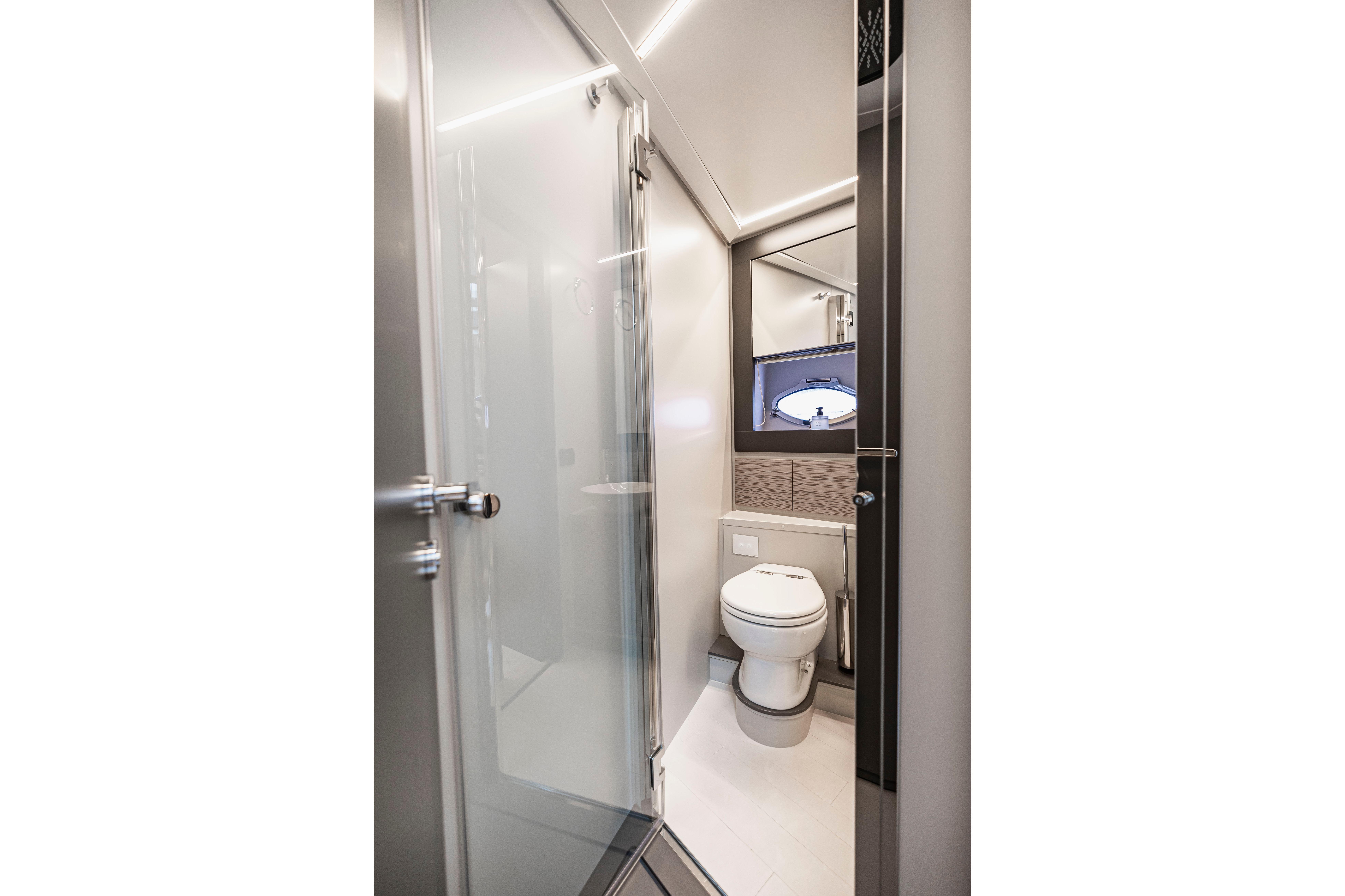 - Fixed side windows in tempered glass and (2) opening porthole in stainless steel and tempered glass