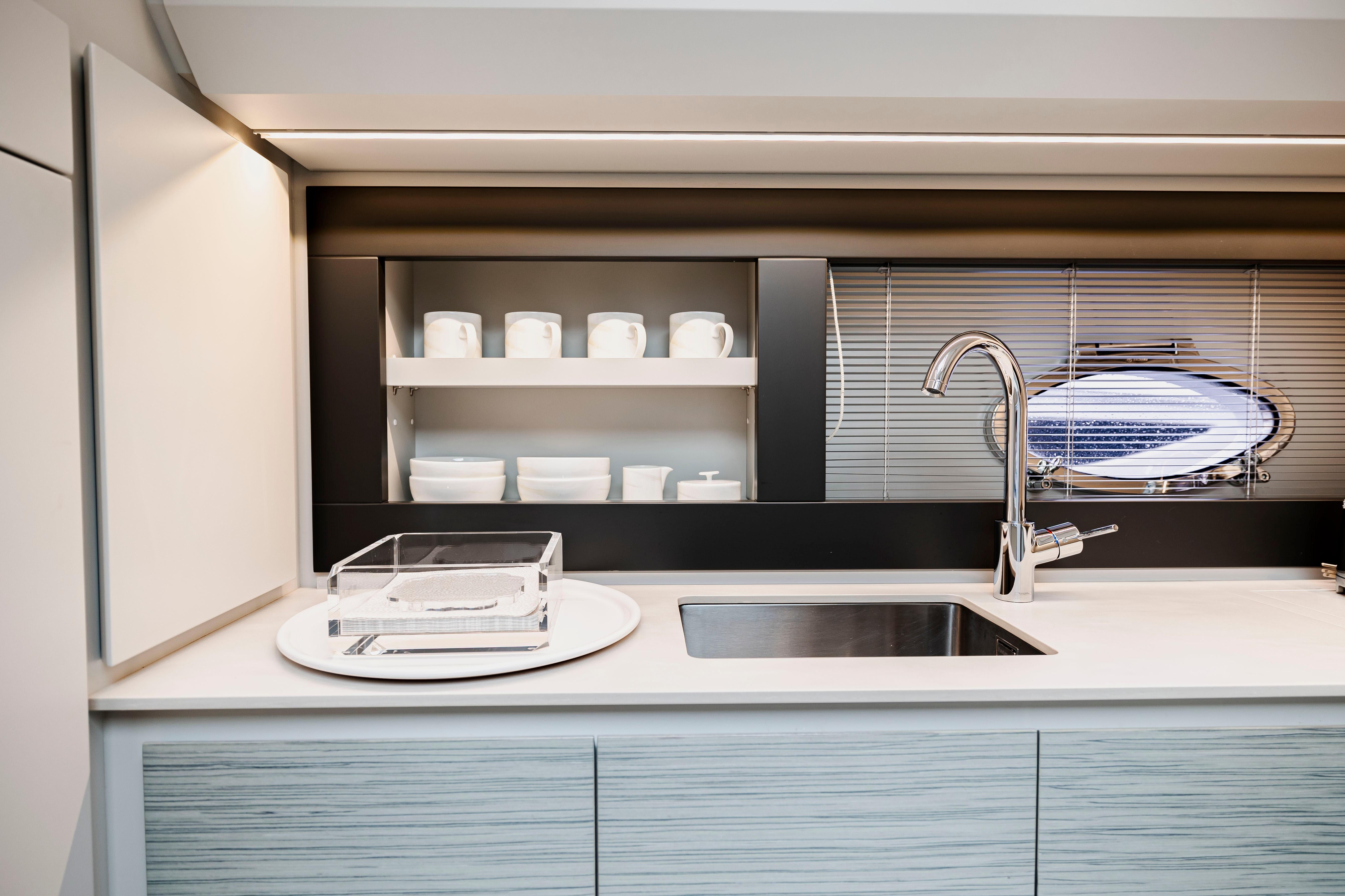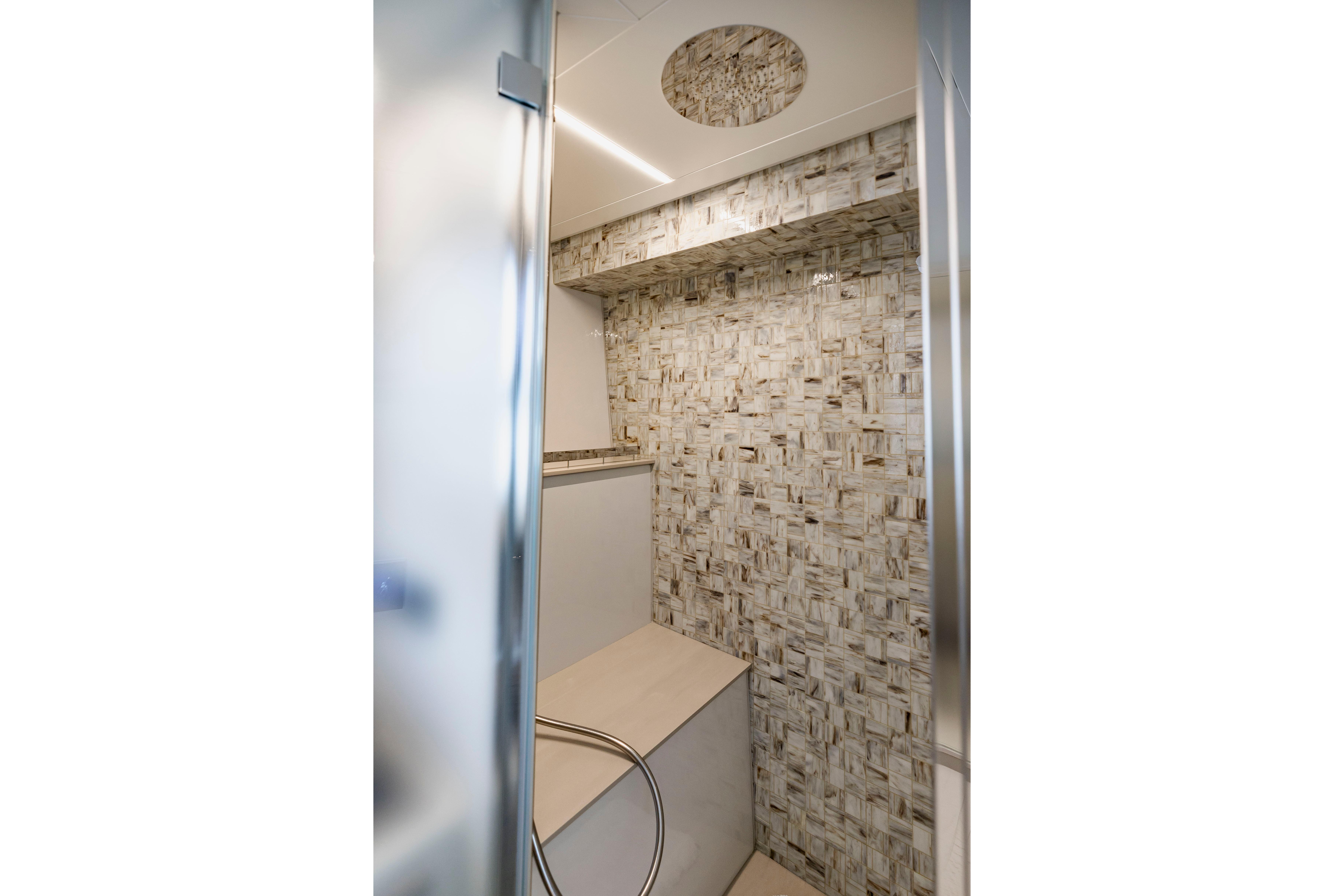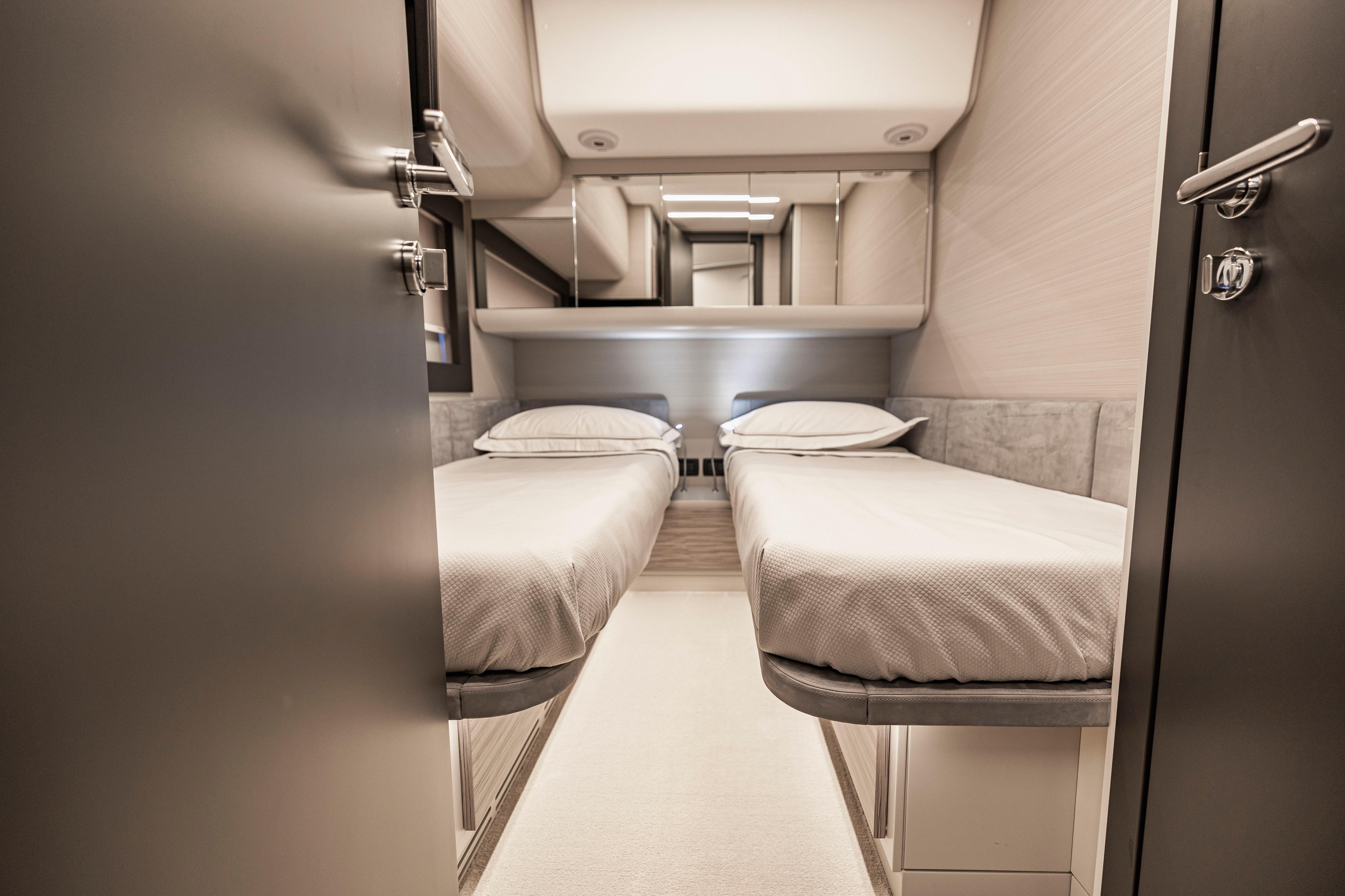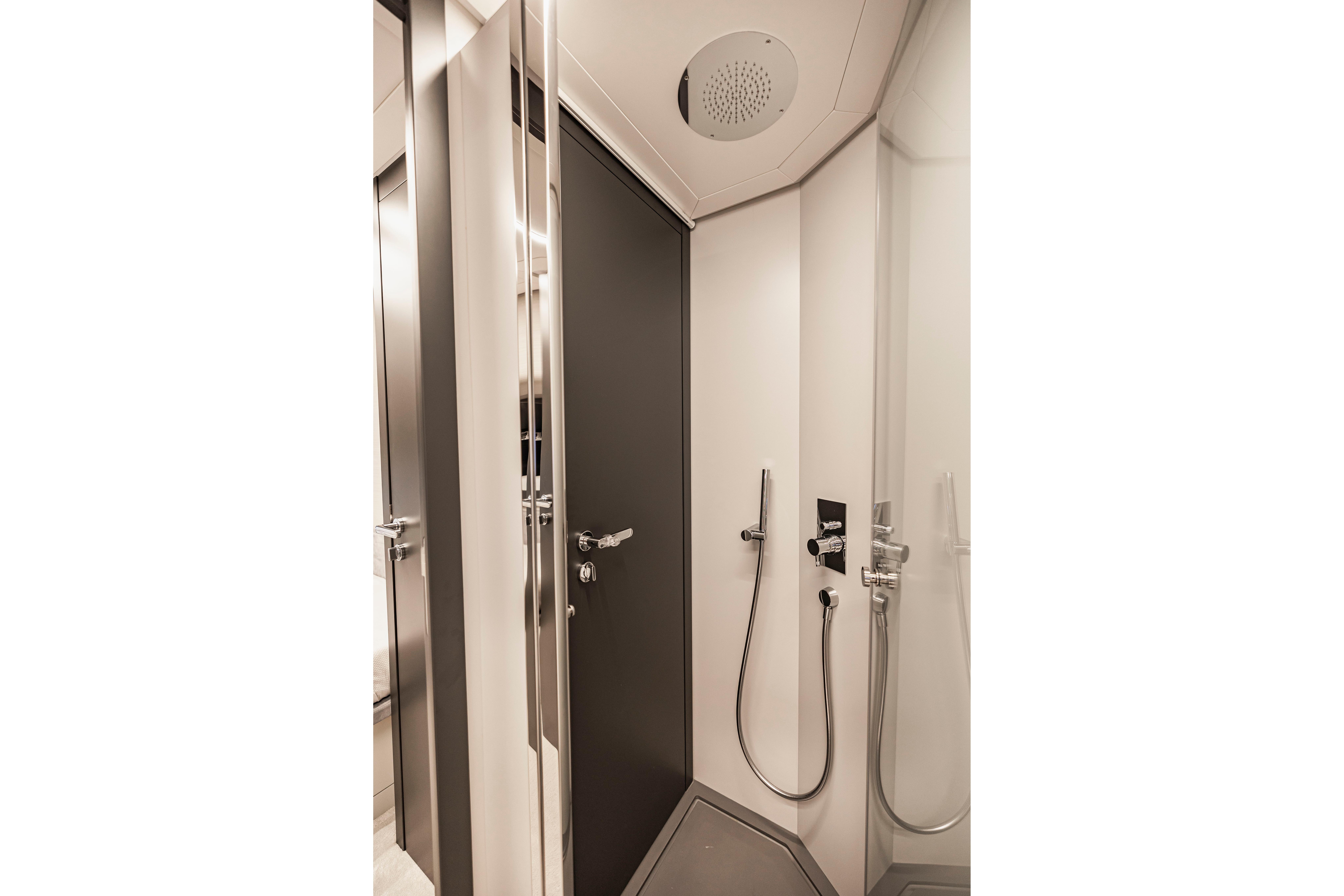 - Fixed side windows in tempered glass and (2) opening porthole in stainless steel and tempered glass