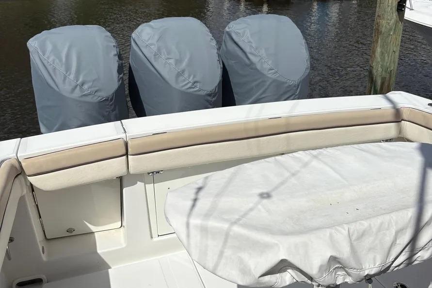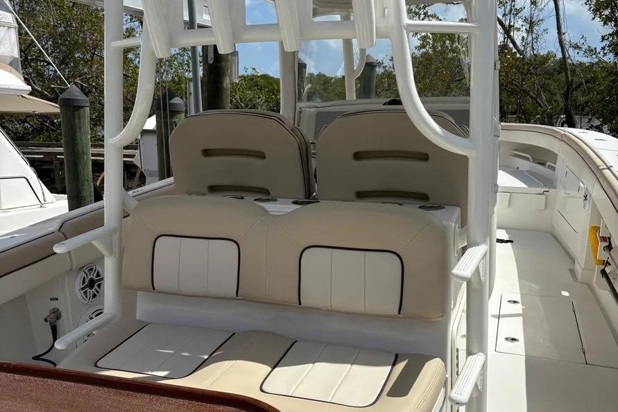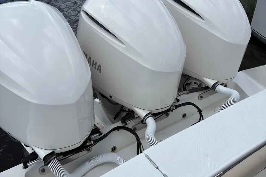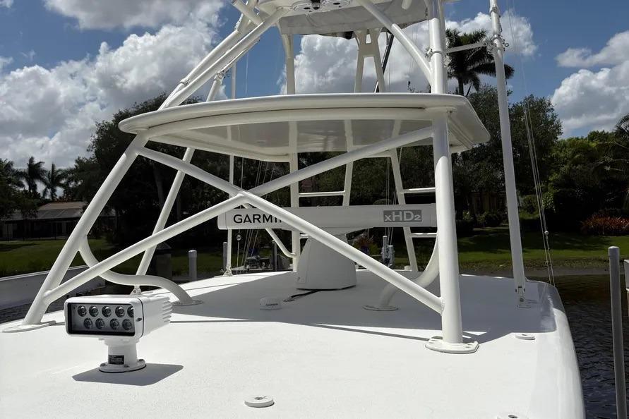 38 ft 2017 Jupiter 38 FSTriple Yamaha 300 hp outboards (900 hp total) · ~1,050 hoursGarmin 16″ MFD at main helm · 7″ display at tower · Garmin autopilot (auto-helm feature) · night-vision · Fusion stereo (2,000 W) with 10 JL speakersLOA 38.17 ft · Beam 10.58 ft · Max bridge clearance ~31 ft · Fuel 485 gal · Fresh water 50 gal · Cruise ~32 kn · Max ~45 kn · MC² Quick Gyro (12V, air-cooled; new 2023, ~100 hrs) · New bow thruster (2023) · Full gap tower with second station (white powder coat) · Rupp rigger holders with 25′ carbon outriggers + center rigger · Electric anchor windlass · Searchlight · Recent full wax/detail(2) macerated in-deck fish boxes · 40-gal livewell · Electric Maya Epoch teaser reels + manual teasers at main helm · Outriggers · Cockpit cushions · Full cover—Jupiter’s 38 FS is built for long runs and clean spreads, and this example adds a tower, teasers and a 12-volt Quick gyro to keep the boat settled on the drift. The gap tower with full second station tightens your sight lines, while 25′ carbon outriggers (plus center rigger) and macerated fish boxes support tournament-grade tactics without crowding the cockpit.At the helm, twin Garmin displays (16″ below/7″ above) drive the autopilot and night-vision for confident navigation day or night. A new bow thruster (2023) pairs with precise throttles for easy docking, and the 2,000-watt Fusion/JL system keeps the crew energized between stops. With triple Yamaha 300s, a 485-gal fuel capacity and Jupiter’s proven deep-V, you’ll cruise efficiently in the low-30-knot range and still have punch to chase the bite.Contact us today to arrange your private viewing!