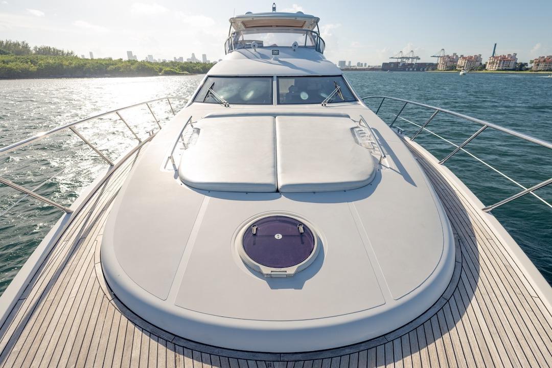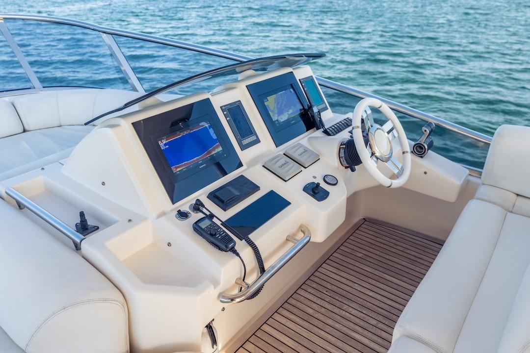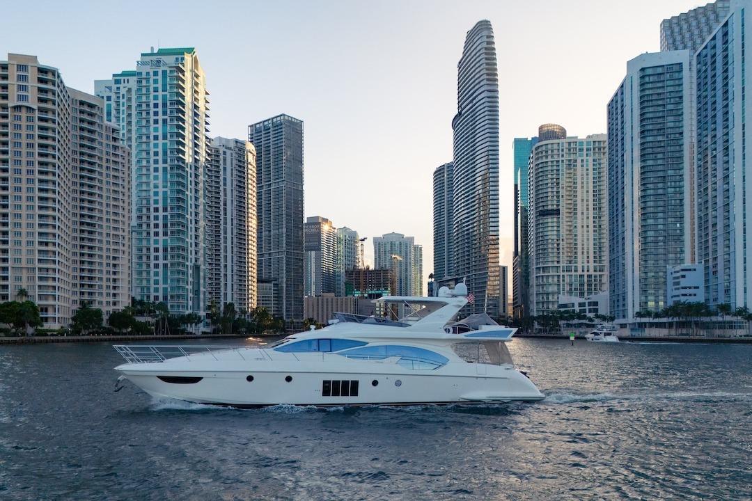 The 70 Azimut Evolution epitomizes Azimut's renowned craftsmanship and design, featuring timeless lines that flawlessly blends the aesthetics with incredible functionality. The interior is created for the utmost in comfort with a completely open design allowing everyone onboard to seamlessly relax and entertain. Easily accommodating 8 overnight guests in 4 staterooms along with 4 full heads and a fully equipped galley, providing all the comforts of home while onboard. An Incredible Opportunity To Own One Of The Most Versatile Yachts In Its Size Range. “Ready To Go," All You Need To Do Is Move Your Luggage Onboard And Start Creating Memories. THIS YACHT CAN OFFSET YOUR EXPENSES WITH A TURN KEY CHARTER PROGRAMENQUIRE FOR MORE DETAILS KEY FEATURES:FULL TIME CAPTAIN MAINTAINEDTWIN SEAKEEPER GYRO STABILIZEDUPGRADED DECOR PACKAGE WITH DECAPE OAK WOODHYDRAULIC SWIM PLATFORM WITH TENDER (TENDER INCLUDED)UNDER WATER LIGHTSEXTREMELY SIMPLE DOCKING WITH XENTA JOYSTICKRAYMARINE G SERIES NAVIGATIONAL PACKAGEFUSION WIRELESS EXTERIOR AUDIO SYSTEMIDROMAR WATERMAKER4 STATEROOM LAYOUT PLUS 2 CREWTO MANY CUSTOM OPTIONS TO LIST ENQUIRE FOR MORE DETAILSAFT DECKSide Boarding doors Starboard side door into galleyStainless steel rub railFuel and water fillers on the side walkwaysBlack water tank discharge intake on the side walkwaysTeak deck walkways, cockpit, fly, and platformTelescopic GangwayDeck WinchesBulwark to the stern cockpitTeak Dining table with folding chairsSWIM PLATFORMEngine room access (transom door)Two electric warping winchesHydraulic Swim platform with 750kg maximum capacityLights on swim platformElectro hydraulic retracting gangway (150 kg maximum lifting capacity)Shower Boarding ladderUnderwater LightingMAIN SALONUpgraded Décor Package and electric blinds.Sofa converts into a bed for 2C Shaped upgraded leather Salon seating 1 Ottoman that converts into a coffee tableFurniture in matt varnished (decapé) oak woodPanoramic oversized windows. Flatscreen TV on a lift. V35 BOSE AM/FM Stereo Surround Sound DirecTVDeluxe Custom Electric Blinds Saloon door curtainGALLEYWaeco refrigerator/freezer with Decapé oak wood door coveringsGaggenau burner glass ceramic stove top GE Microwave Gaggenau built in dishwasher with oak wood coveringDark marble countertops(2) Stainless steel sinksDesigner Faucets Decapé oak wood storage cabinetry and drawersWood flooring“Azimut” tableware, glassware, cookware and cutleryDINING ROOMDining Table for 8. Bar unit and Fridge. Bar unit for glassware, cutlery, and tablewareMAIN DECK HELM STATIONRaymarine G Dual Plotter / Radar ScreensRaymarine AutopilotRaymarine VHF RadioRaymarine Tridata Depth/ SpeedSystem Alarms DisplaySockets, level gauges. Rudder angle indicatorMAN indicatorsChain Counter QuickSeakeeper ControlRemote controlled lightDual Power Helm SeatsAdjustable steering wheel Magnetic compassXenta Joy StickJoystick for trim tabs Joystick for wipersSide window openingMASTER STATEROOMKing Size berth Mattress, pillows and bedspreadPremium Leather and mirror headboardSafe Furniture in matt varnished (decapé) oak woodSetee and Desk with additional vanity unitWalk-in closetVanity unitTV - 40" Sony4 drawers under TVBOSE AM/FM Stereo with 2 SpeakersDirecTV ReceiverPanoramic Windows with 4 portholes Emergency exit hatchVenetian blindsEn-Suite Head:TECMA fresh water marine toiletOversized Steam Shower with shelving Vanity with Dark Marble countertop, designer wall lightingIntegrated mixer tap with thermostatic functionMirrored cabinets over the sinkWood flooringVIP STATEROOMQueen Berth Mattress, pillows and bedspreadPremium leather and mirror headboard. Furniture in varnished (decapé) oak wood2 Wall cabinetsPanoramic Windows. 2 Portholes that can be opened Flat Screen TVEn-Suite Head:TECMA fresh water marine toiletOversized Steam ShowerVanity with Marble countertop, designer wall lightingIntegrated mixer tap with thermostatic functionMirrored cabinets over sinkWood flooringPORT & STARBOARD GUEST STATEROOMSTwo single Berths with filler option Mattresses, pillows and bedspreadsLeather and Mirror headboardFurniture in matt varnished (decapé) oak woodBed Linens with Sheets1 NightstandOpening portholeFlat Screen TVEn-Suite Head:TECMA fresh water marine toilet.Stall Shower Vanity with Marble countertop, designer wall lighting. Integrated mixer tap with thermostatic function.Mirrored cabinets over sink.Wood flooringFLYBRIDGERetractable Power Hardtop sun roofAccess from the aft deck via staircaseAccess hatch openingHeight adjustable steering wheelTeak table for 8 Wet Bar with BBQ, fridge, icemaker, and sink. Side built in seating Sunbathing cushions at helm Hardtop with power sunroof. Waterproof speakersFusion Stereo MS-IP600 Engine control instrumentation Xenta Joy StickRaymarine Dual E Series Radar/ Plotter Raymarine ST6002 Auto PilotRaymarine VHF with RepeatersRaymarine Tridata Depth/ SpeedElectric searchlight control JabscoNavigation lightsTeak DeckingBOW AND DECK EQUIPMENT325 Williams Jet Tender includedTeak DeaksEPIRB(2) Viking Life RaftsBow oversized sunbathing cushions with glass holdersExtra upgraded speakers in the bow with Fusion control. 2500W Lofrans anchor winch Anchor winch controlsChain washdownAnchor chain: 12mm diameter, 200mlength, 520 kg weightCREWS QUARTERSCaptains Cabin and 2nd Berth. Shared wet- head with shower. Carpeting on cabin floors Furniture in matt varnished decapé oak woodFurniture in matt varnished decapé oak wood1 Porthole that can be openedEn-Suite Head:Tecma marine toiletStall showerSink with cabinets120v duplex receptacles (GFI protected)ENGINE ROOM2 X MAN V12 1360 HP Common Rail engines, 2384 appx hours 09-06-2025Twin 20KW Kohler Generators in sound shields - Top 4200 appx hours, Bottom 4100 apps hours 09-06-2025Twin Seakeeper Gyro StabilizersIdromar Watermaker Stern Underwater lights Hydraulic Swim platformDolphin 24 Volt/ 8 A Battery Charger Tecma Marine Toilet System. Two 220V fansTwo 220V air extractors Racor Fuel Filters ZF Tra