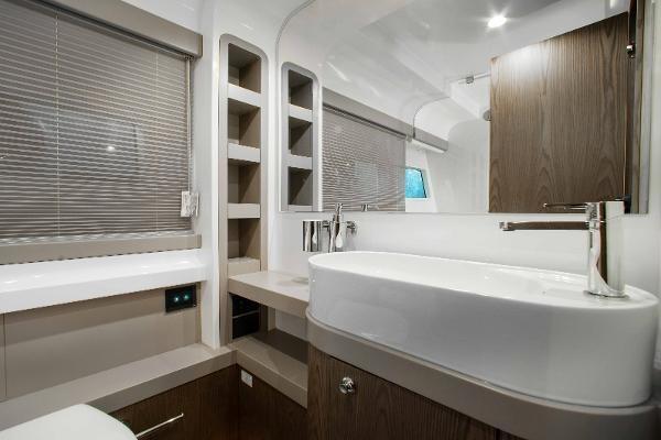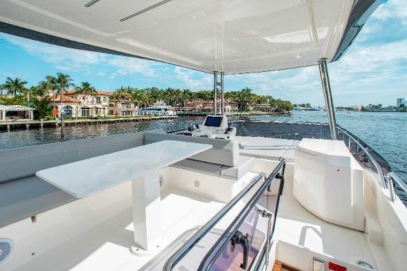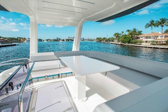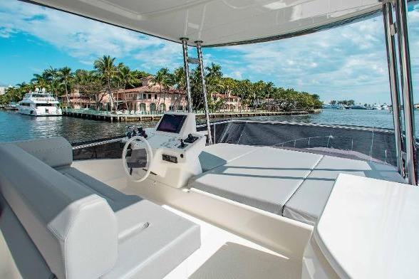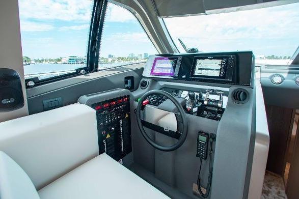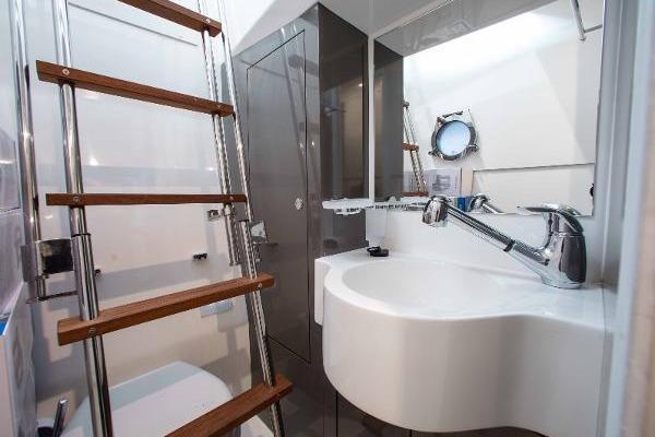 - Access to the flybridge through stainless steel and teak steps, stainless steel handrail