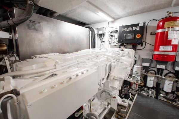 - Access to the engine room through a hatch ad a stainless and teak ladder