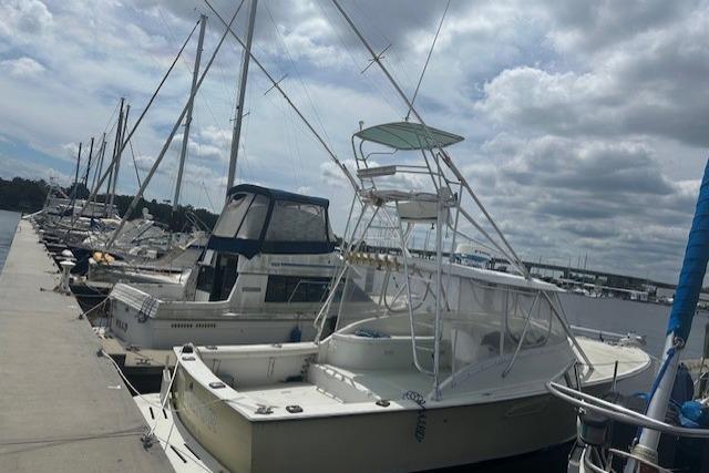 Introducing the 2002 Custom Carolina Sportfish, a remarkable sports fishing boat that combines performance and comfort. With an overall length of 34 feet, this vessel boasts a sleek fiberglass hull designed in a Deep Vee shape, ensuring excellent stability and handling on the water. Powered by a robust Cummins 6BTA 5.9-M3 inboard engine, it delivers an impressive 370 horsepower, allowing for a cruising speed of 30 knots and a maximum hull speed of 35 knots. Accommodating up to 8 passengers, the Sportfish features a well-appointed cabin and two heads, making it perfect for extended outings. With a range of 200 miles, this boat is ideal for both short trips and longer adventures. The thoughtful design and powerful engine make the Warrior a standout choice for fishing enthusiasts seeking both performance and comfort on the water.