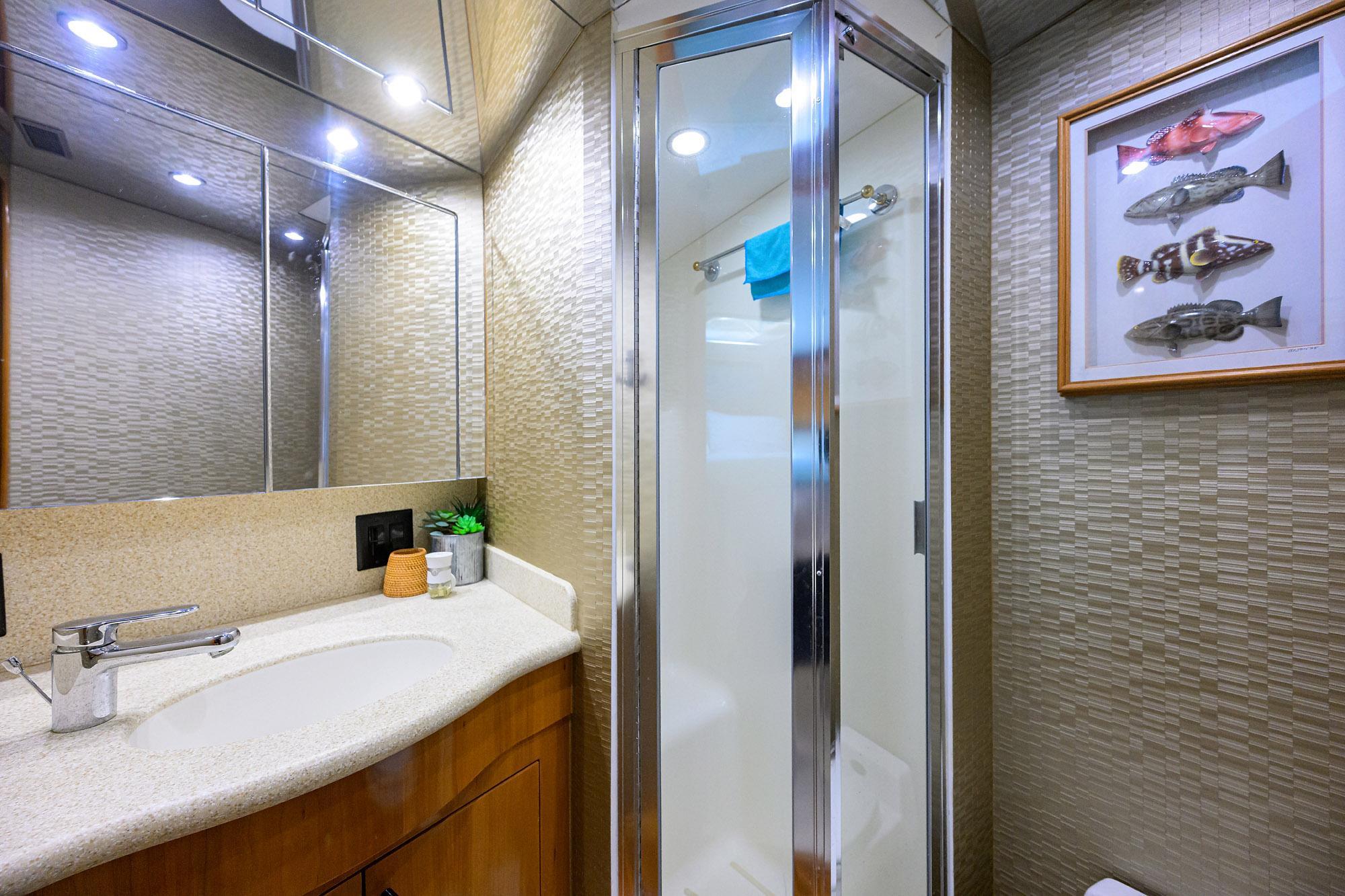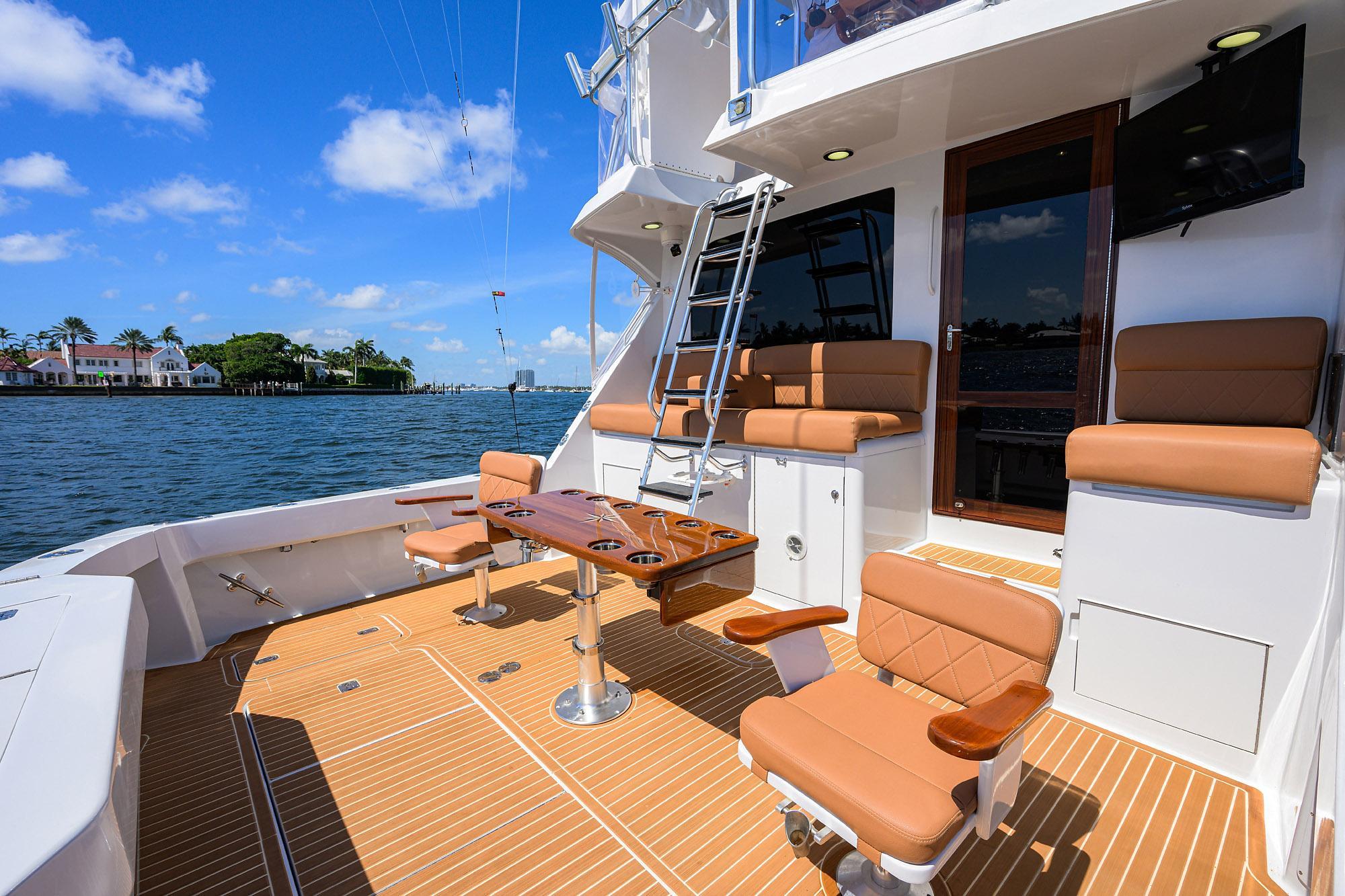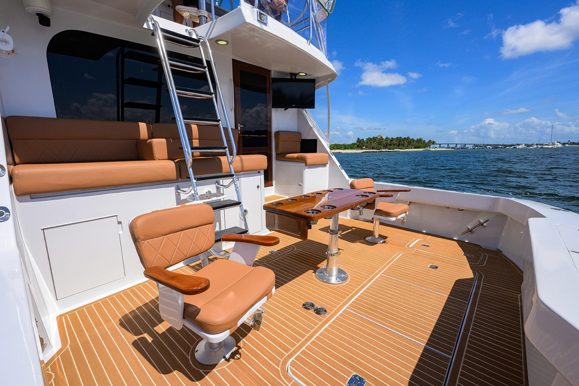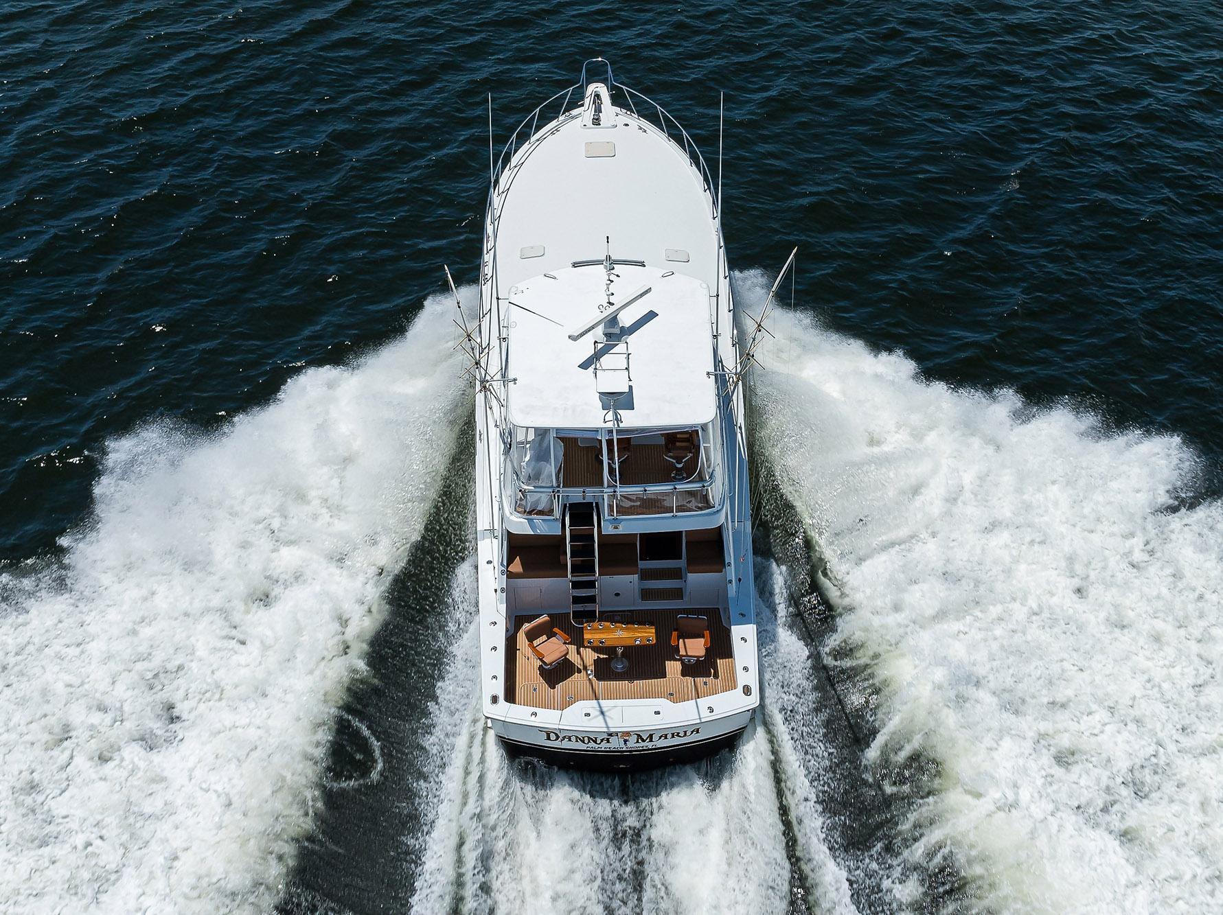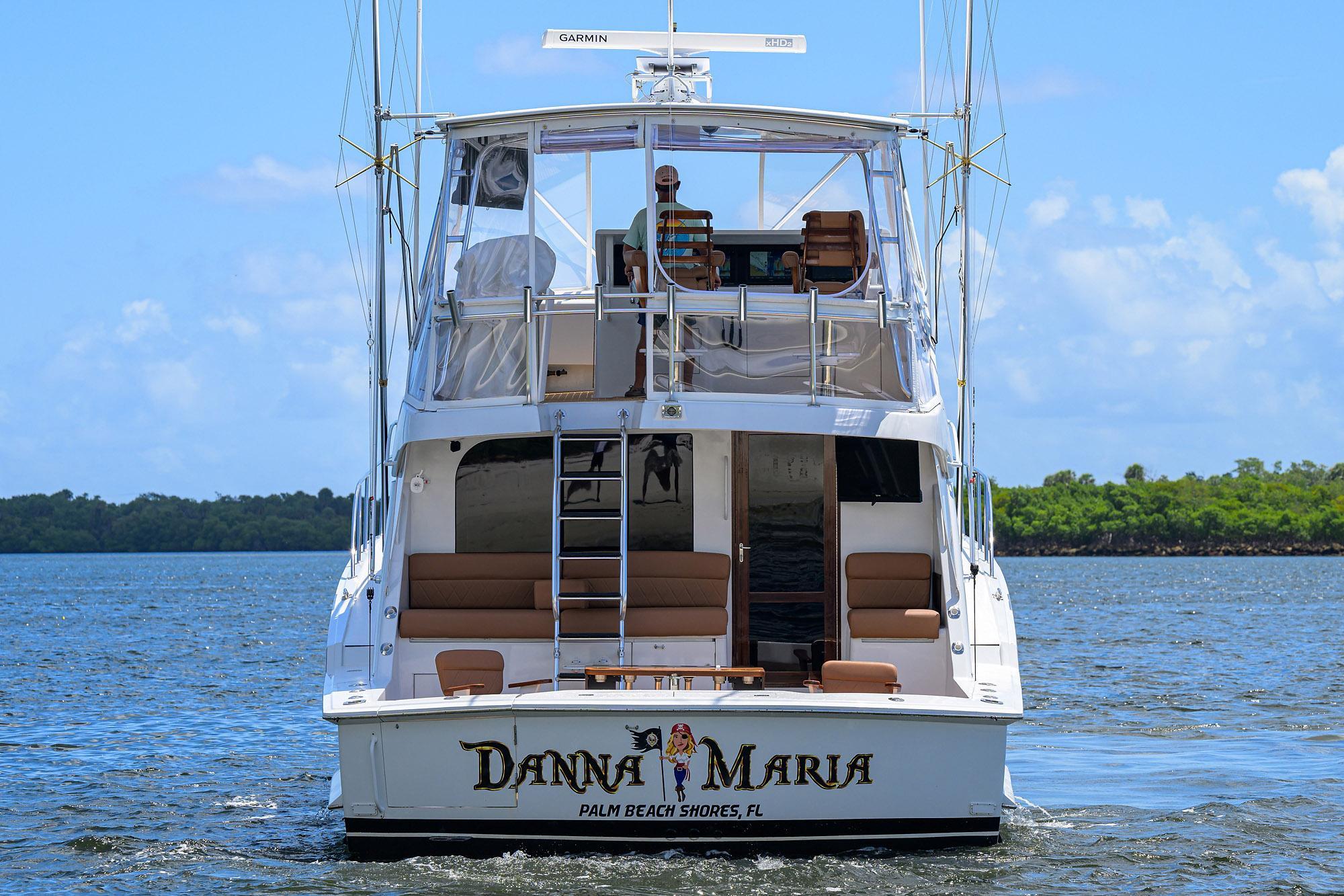 Downstairs are the Master, VIP and Guest Staterooms. With New Carpet, Wallpaper, Lighting, Electrical Outlets and Bathroom Enhancements, the "Danna Maria" has the feeling of a new vessel. The Large Cockpit has a Brand new Custom Rocket Launcher and 2 Classic Sailfish Chairs. Bulkhead Seating, TV and a New Electric Grill sets off this area for fun times to be had. A Custom Ladder to the Flybridge and the Helm is not only easily accessible, but to ALL Instruments within easy reach to operate the Vessel,. A New Enclosure and New Cushions all around make for a very clean setting and very enjoyable to operate the Vessel. Sea Deck Flooring in the Flybridge and Cockpit make it very comfortable Under Foot. The Engine Room with access from the Cockpit, has been Awlgripped and shows like new and all Systems are very easily serviced.