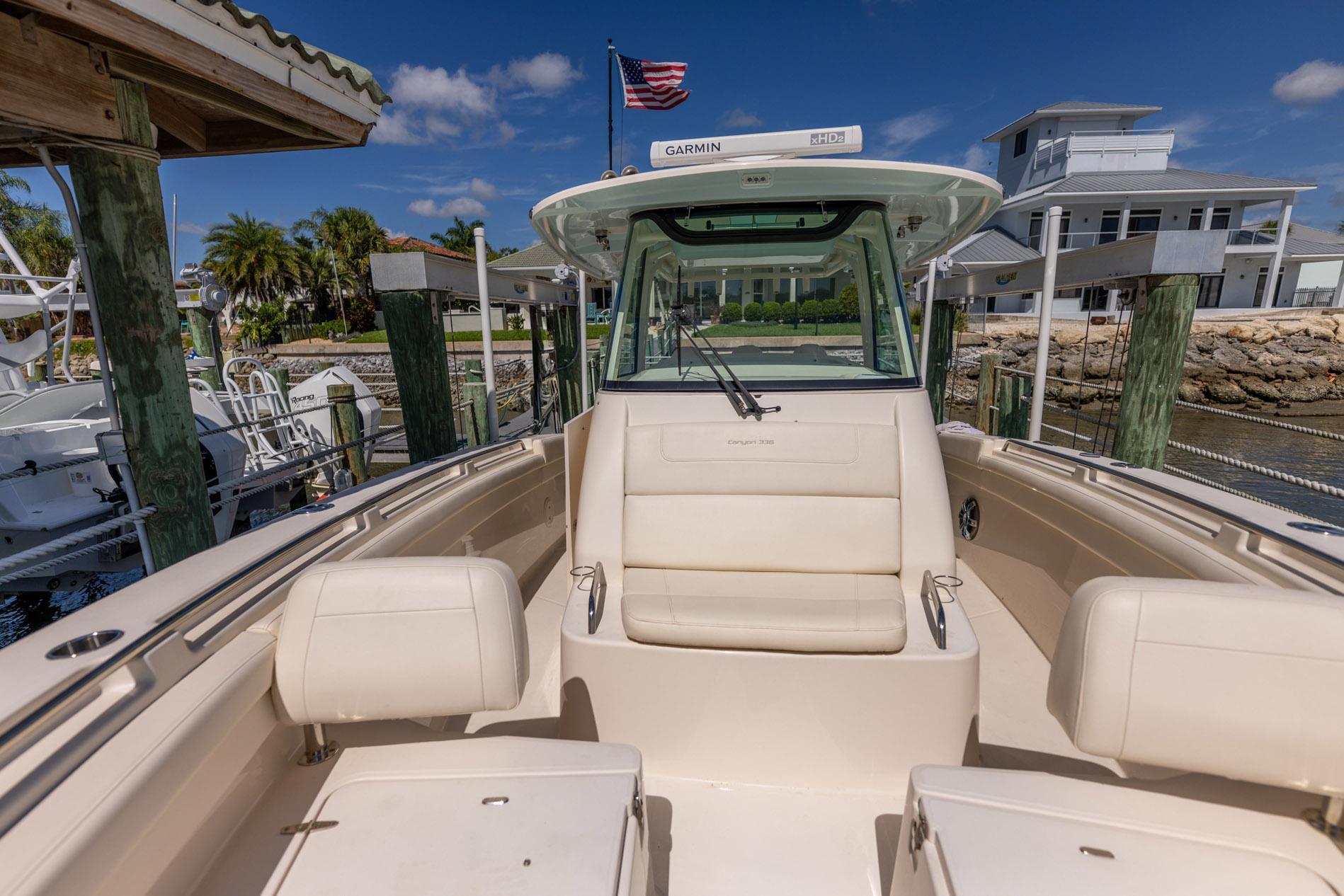 2022 Grady-White 336 CanyonOWNER WOULD BE AGREEABLE TO ACCEPTING A TRADE OF A LATE MODEL BAY BOATTwin Yamaha 425 V-8s with 42 Original Hours and Warranty Until May 2027This 336 Canyon has every imaginable option offered by Grady-White including SeaKeeper 3 Gyro Stabilizer, electrically actuated cockpit sunshade, Yamaha Helm Master, refrigerated fish box, air-conditioning and 5kW diesel generator.Full Garmin electronics package with (2) 8216 displays and 12kW open array radar.This lightly used 336 is rigged to fish, lift kept, and no bottom paint. Very attractive Ocean Mist Blue, this like-new boat is a must see for anyone in the market for a Canyon 336 and will not disappoint.Call today for more information or to schedule a showing!