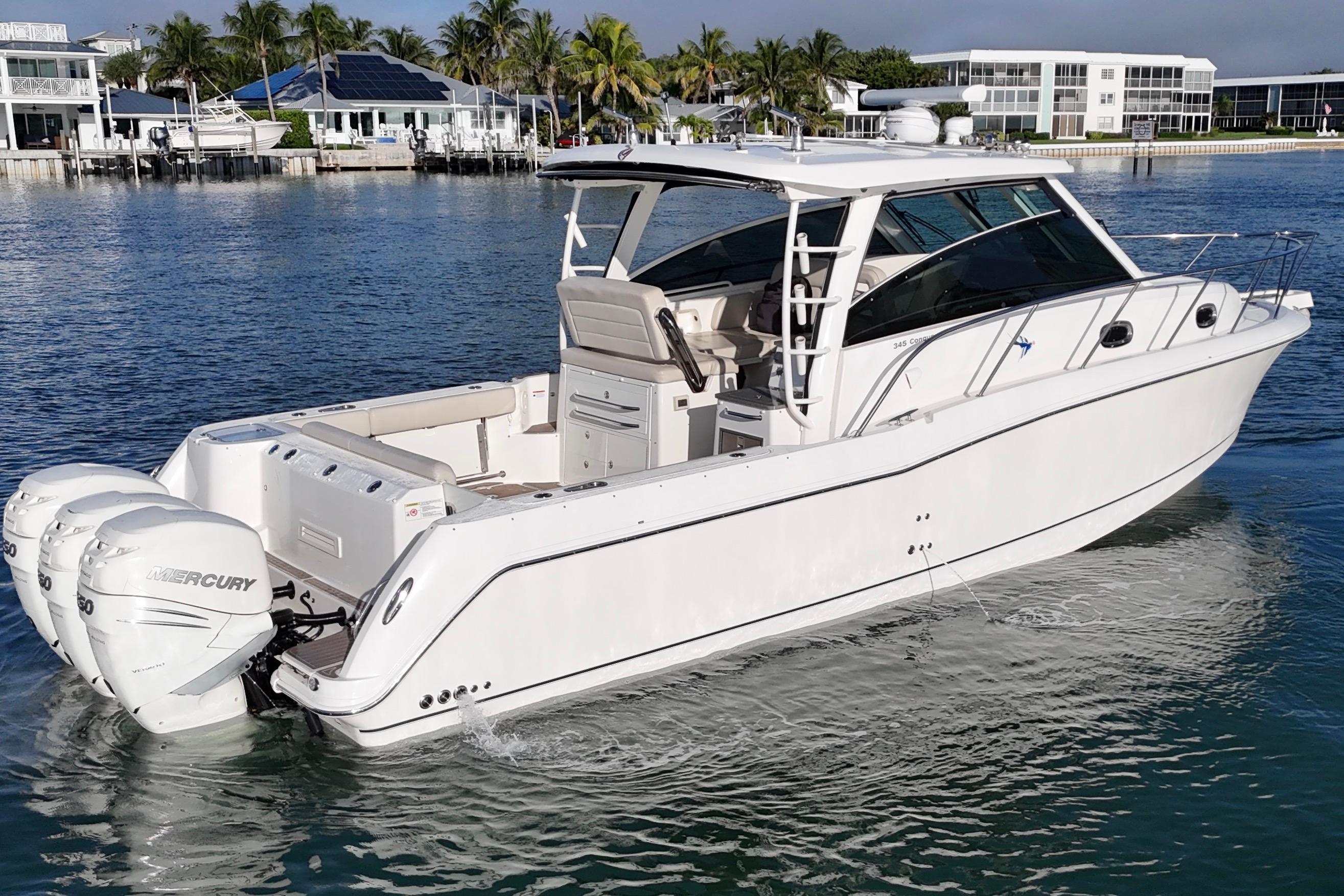 - Triple 350 horse power Mercury® Verado Four-Stroke engines (Only 680 hours since new)