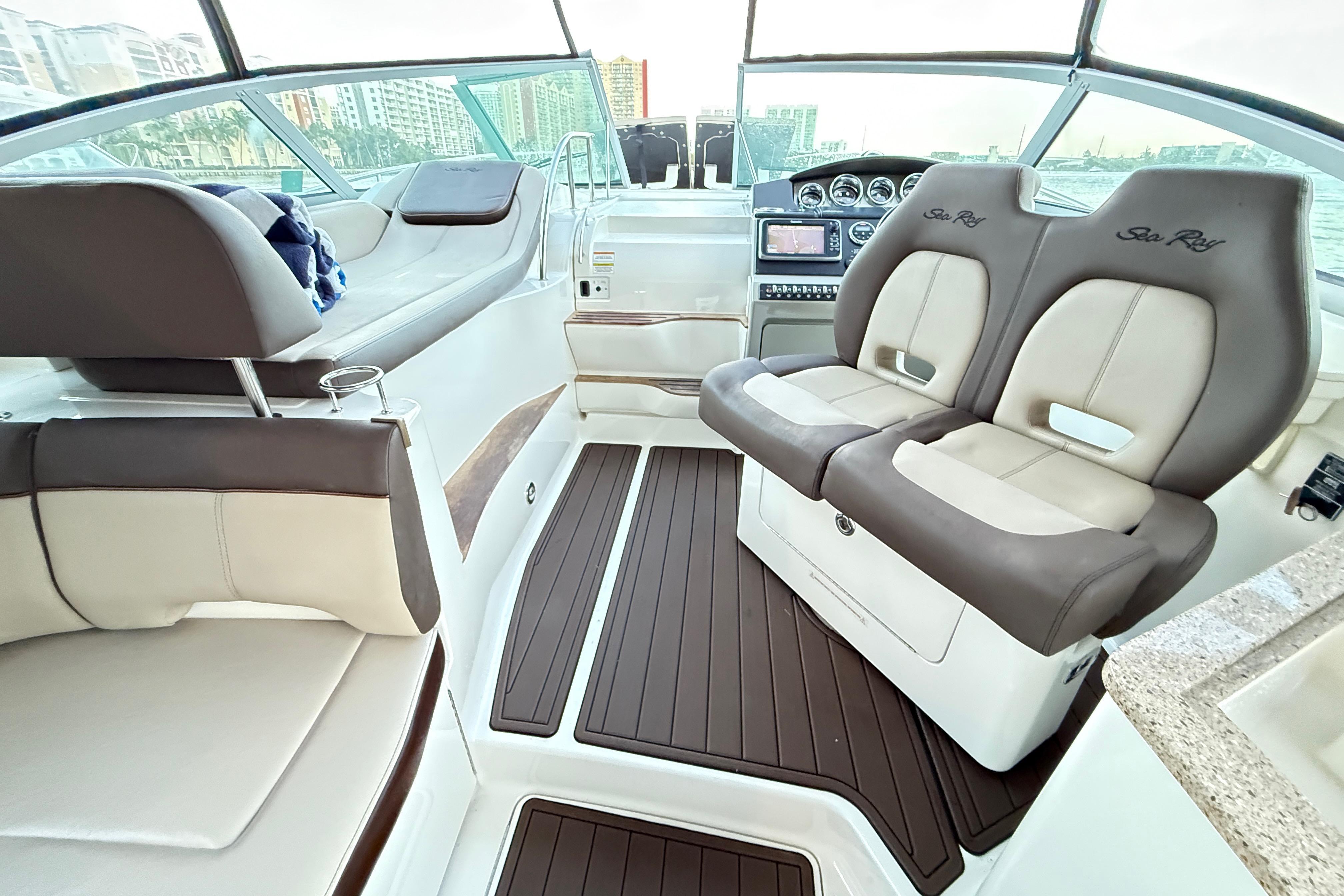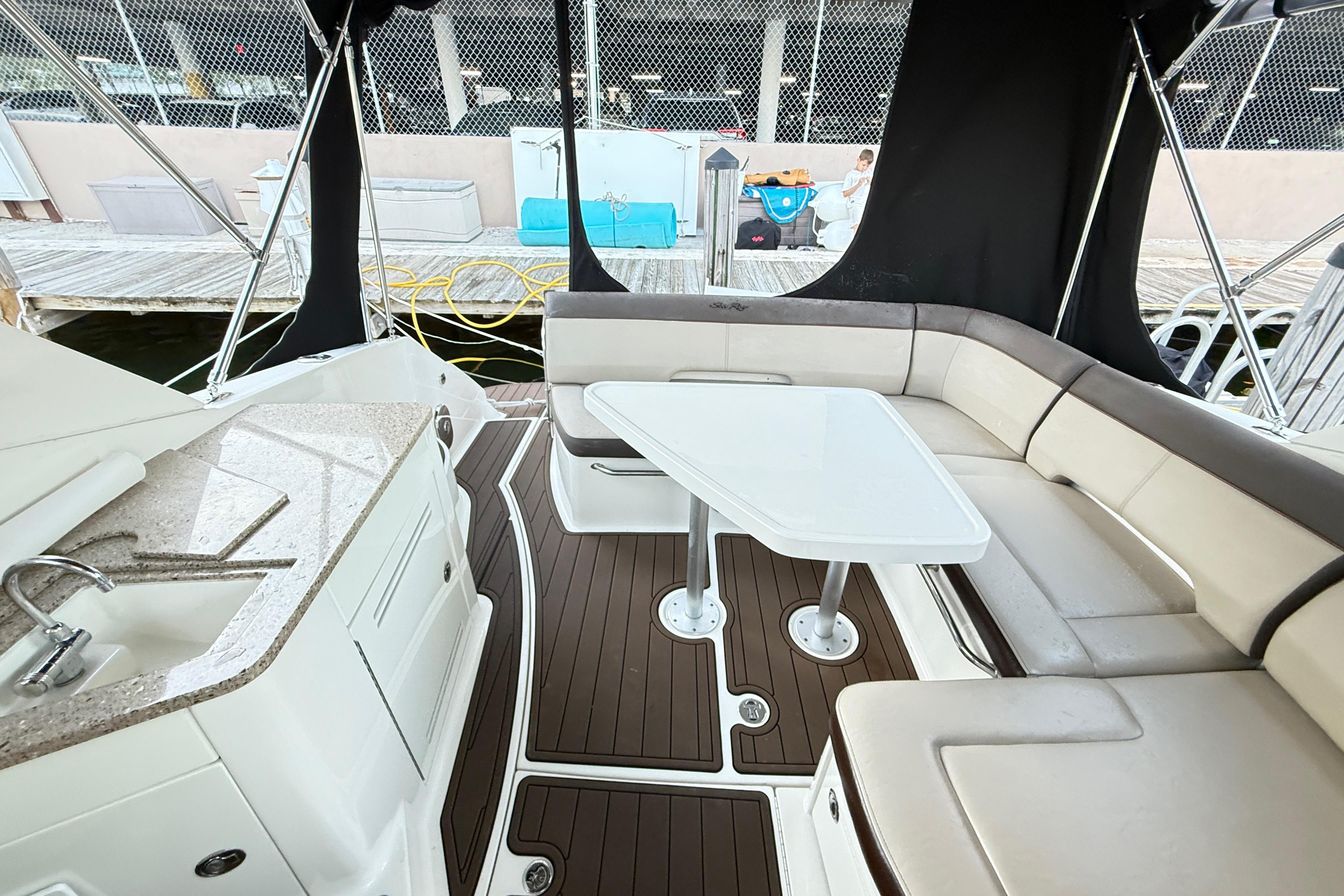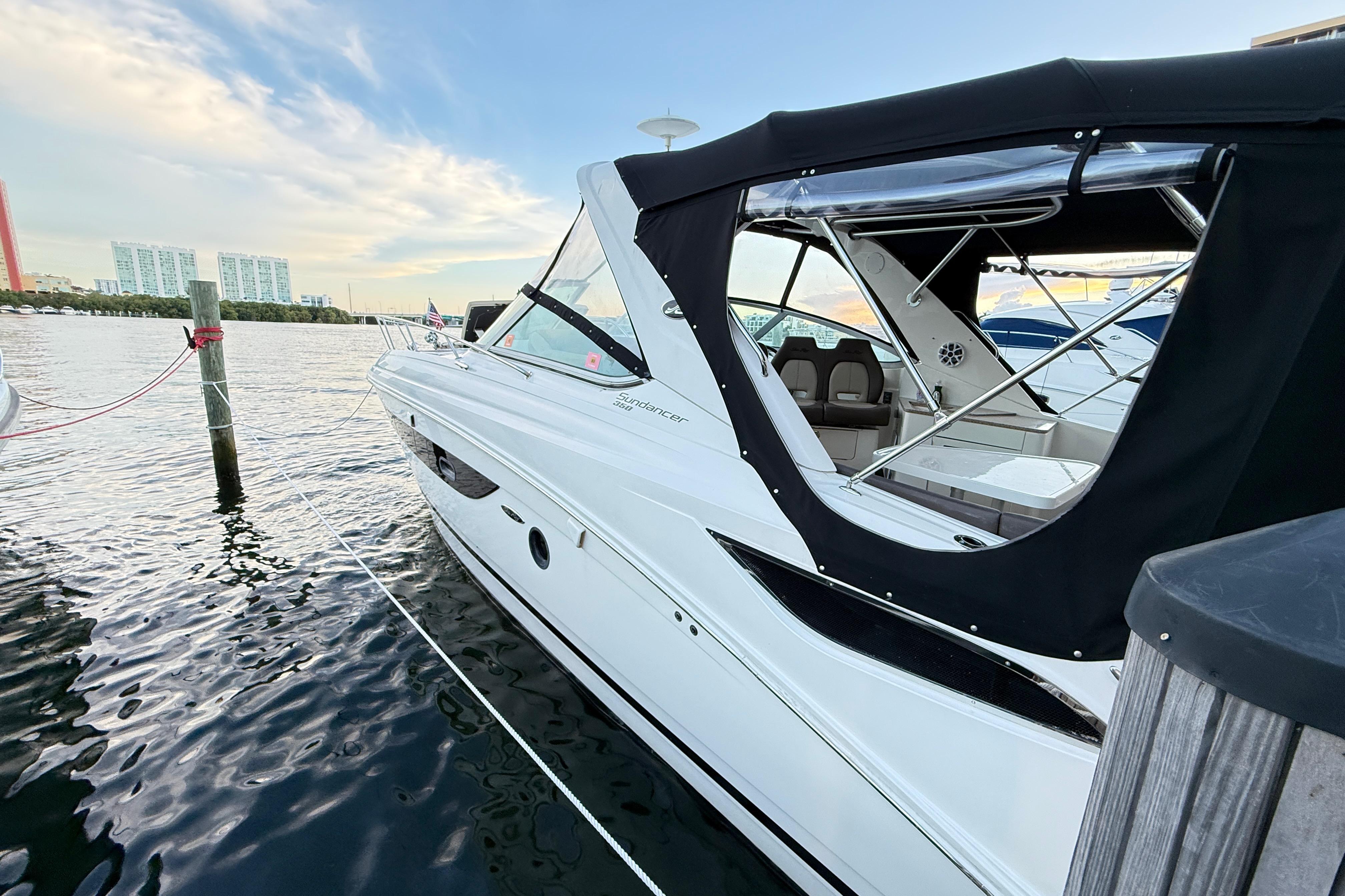 ~New to the Market~~Bristol Conditions with only 285 Hours with Joystick Control~~Twin Engines Mercury 8.2 MAG with only 285 original hours~~Kohler Generator with just 59 hours~~Recently Serviced Outdrives Mercury Bravo III ~~Fully updated saltwater cooling system~~New manifolds & risers~~New impellers, sensors~~New oil & fuel filters~~Custom full rear enclosure – perfect protection from rain and dust~~New Bottom Paint~~Polished & waxed inside and out ~~Upgraded premium sound system~~New custom Sea Deck~~A/C is in perfect working condition, recently serviced~~Full head with a shower and water heater~~6 sleeping spaces to accommodate for long journeys and weekends~~Newly installed bilge pumps~~Autopilot system~~Deck shower~~Cockpit fridge and Fridge in the galley~~Newly installed trim tabs~~Recently the bottom was painted with hard paint~~Recently replaced zincs~~ Recently replaced fuel fillers~~Two beds sundeck~~High ceiling cabin with a lot of closets and a full-size galley with a microwave~~Very Easy to show Turnkey with the recent maintenance everything is in excellent condition ~~Financing Available~ The Company offers the details of this vessel in good faith but cannot guarantee or warrant the accuracy of this information nor warrant the condition of the vessel. A buyer should instruct his agents, or his surveyors, to investigate such details as the buyer desires validated. This vessel is offered subject to prior sale, price change, or withdrawal without notice.