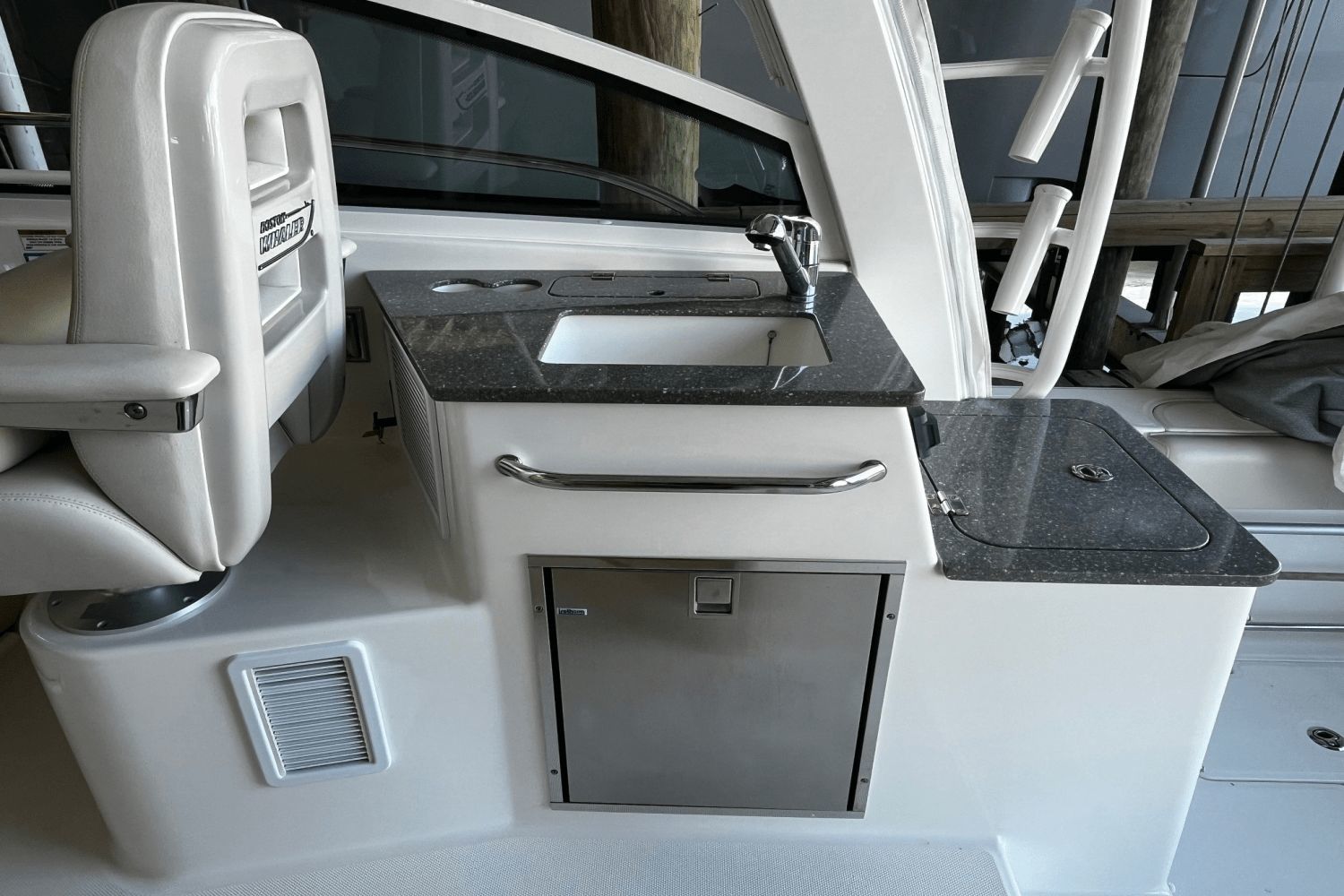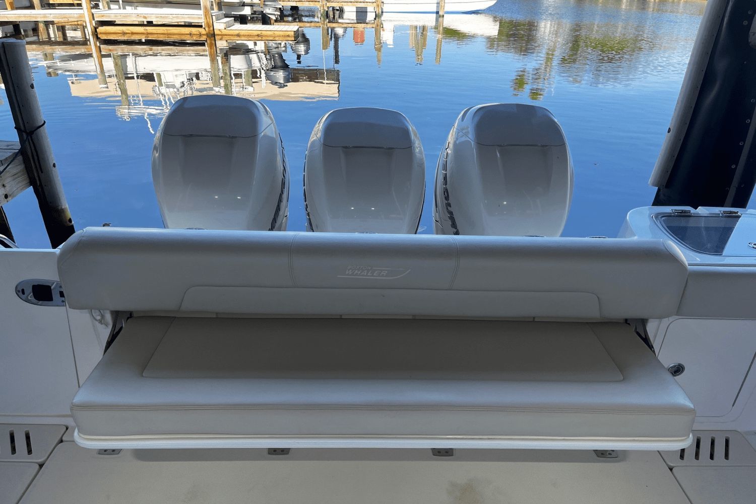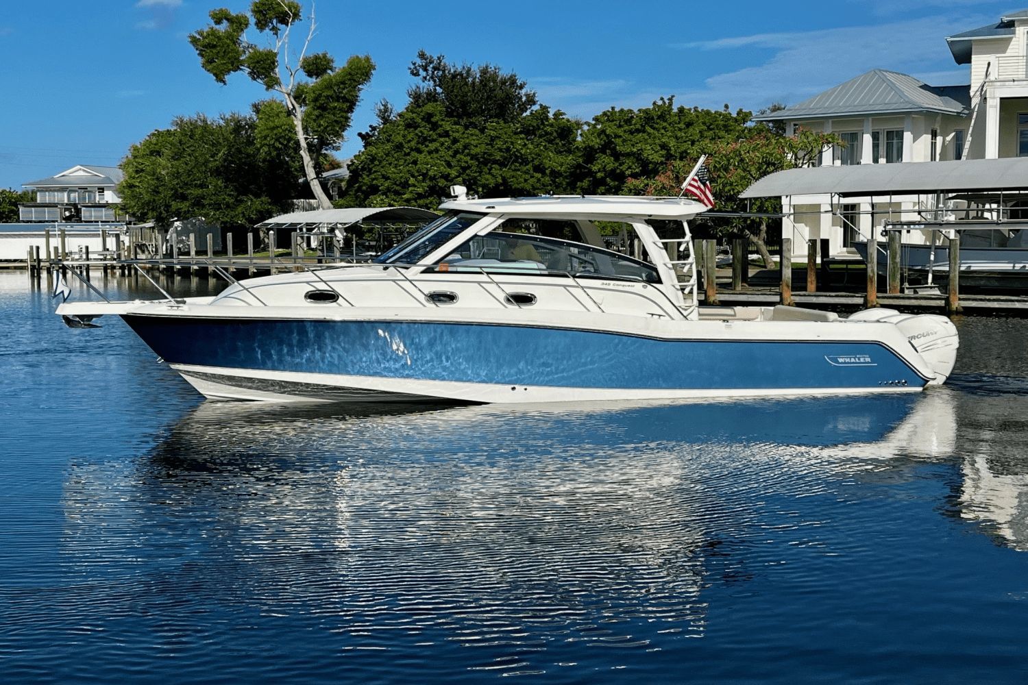 Turn heads in every harbor with this stunning original owner 2018 Boston Whaler 345 Conquest, "Margin Call" is finished in optional Abaco blue paint a $15,346.00 factory option that really sets this boat apart. Renowned for it's rugged offshore capability, unsinkable hull, and luxurious interior comfort, this boat is equally at home chasing fish offshore or entertaining family and friends in style. Triple (white) Mercury Verado 300 HP engines provide unmatched reliabilty, speed, and efficiency. A fully climate controlled pilothouse provides comfortable cruising in every season, and the electric grill & cockpit sure-shade is a game changer whether fishing offshore or entertaining family and friends at the local sandbar. This 345 Conquest blends serious offshore capability with yacht-class amenities. The unsinkable legend of Boston Whaler ensures peace of mind, whether cruising the coast,overnighting, or running miles offshore.Don't miss this opportunity to own a meticulously cared for, " original owner " 345 Conquest that's been lift kept under cover since new. No excuses to be made with this boat, she will delight any serious Boston Whaler 345 Conquest buyer. Please call listing broker Capt. Tim Blanchard direct for details (401) 413-9647 and / or viewing arrangements.This boat is not on-site- Call listing broker for viewing details.Abaco Blue Hull with Silver Boot StripeTriple White Mercury Verado L6 300 Engines (487 hrs.)Auto Engine Flush SystemCabin Comfort Package - Pilothouse & Cabin Climate ControlBow ThrusterMercury 7" Vessel ViewPremium Audio System(2) Simrad MFD DisplaysRemote SpotlightLenco Electric Trim TabsElectric Sure-ShadePort Side Cockpit Bench SeatElectric GrillLED Underwater LightingStainless Steel Anchor & Electric WindlassCockpit TableWhite Rub Rail with Stainless InsertVacu-flush HeadCockpit WetbarKohler Generator