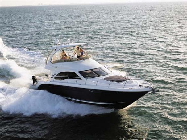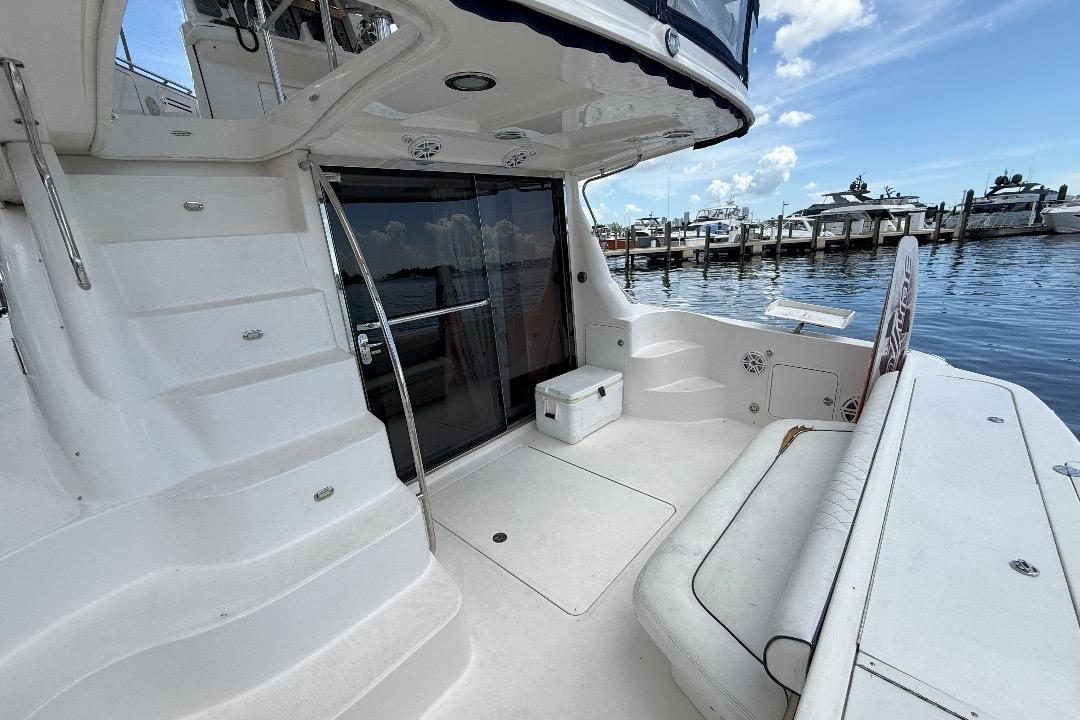 General DescriptionThe Sea Ray 500 Sedan Bridge is a luxury motor yacht in the flybridge category, designed for comfort, performance, and long-range cruising. The 2005 model combines Sea Ray’s signature styling with spacious interiors, strong offshore performance, and modern amenities for its size.It’s particularly appreciated for its wide beam, large salon, three-stateroom layout, spacious flybridge, and powerful twin diesel engines, making it a popular choice among experienced boaters.⸻Key Specifications • Length Overall (LOA): ~ 50 ft (15.24 m) • Beam (Width): ~ 15 ft 3 in (4.65 m) • Draft: ~ 4 ft 2 in (1.27 m) • Displacement: ~ 40,000 lbs (18,140 kg)Engines & Performance • Engines: Twin Cummins QSM-11 diesels (640 HP each) • Total Horsepower: ~ 1,280 HP • Cruising Speed: 24–26 knots • Top Speed: ~ 30 knots (depending on load and conditions) • Fuel Capacity: ~ 500 gallons (1,893 L) • Range: 300–400 nautical miles (approx., at cruise)Tank Capacities • Fuel: 500 gallons • Water: 140 gallons • Holding Tank: 68 gallonsAccommodations • Cabins: 3 (Master stateroom forward with queen berth + 2 guest cabins) • Heads: 2 full heads with showers • Salon: Large, with wrap-around seating, entertainment system, and panoramic windows • Galley: Fully equipped with refrigerator/freezer, cooktop, microwave/convection oven, and ample storage • Flybridge: Spacious with hardtop, seating for 8+, wet bar, and helm stationNotable Features • Large swim platform with hydraulic lift (optional) • Air conditioning & generator • High-quality cherrywood interior finish • Electronics package (Raymarine or upgraded modern systems) • Ample storage and comfort for long cruising