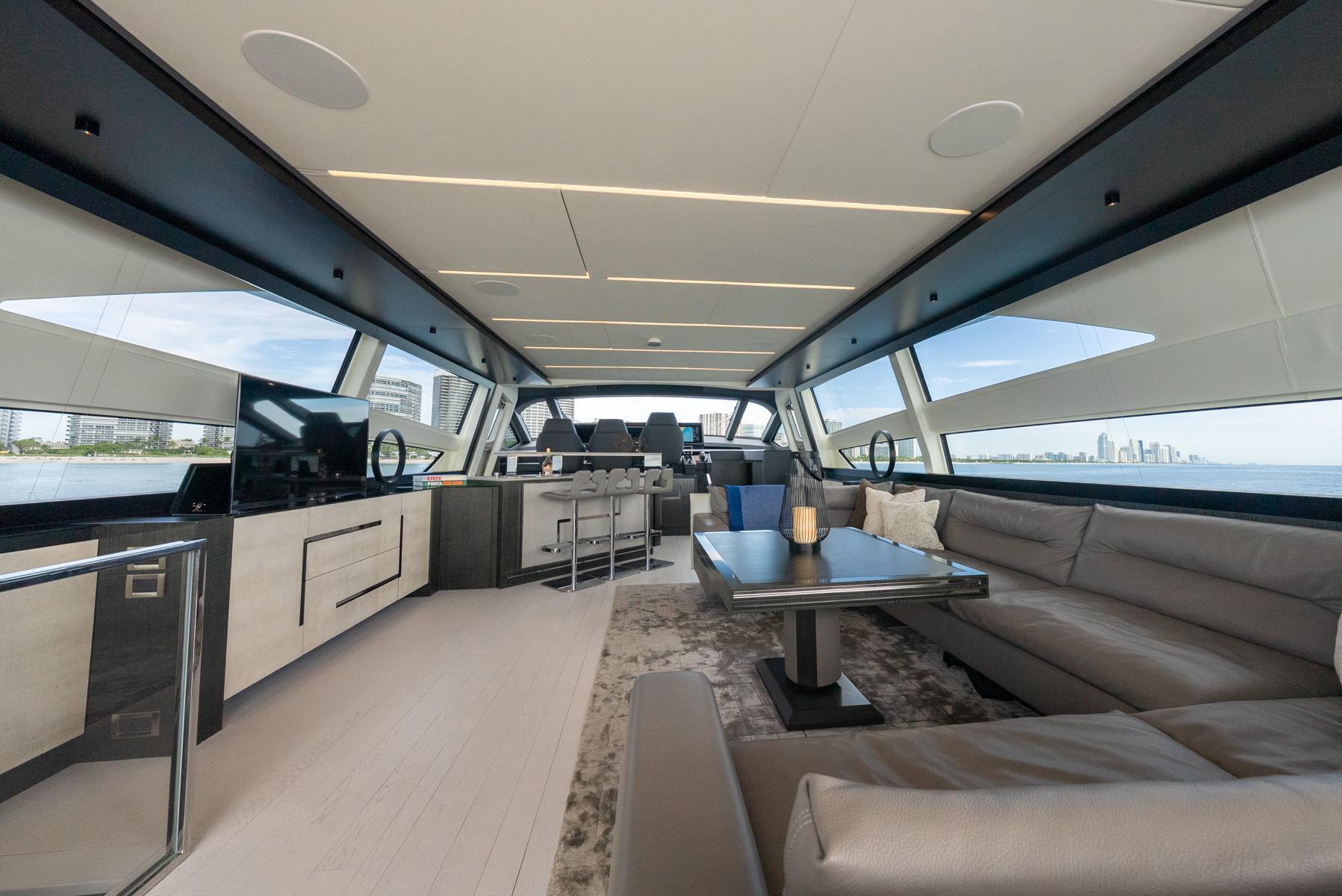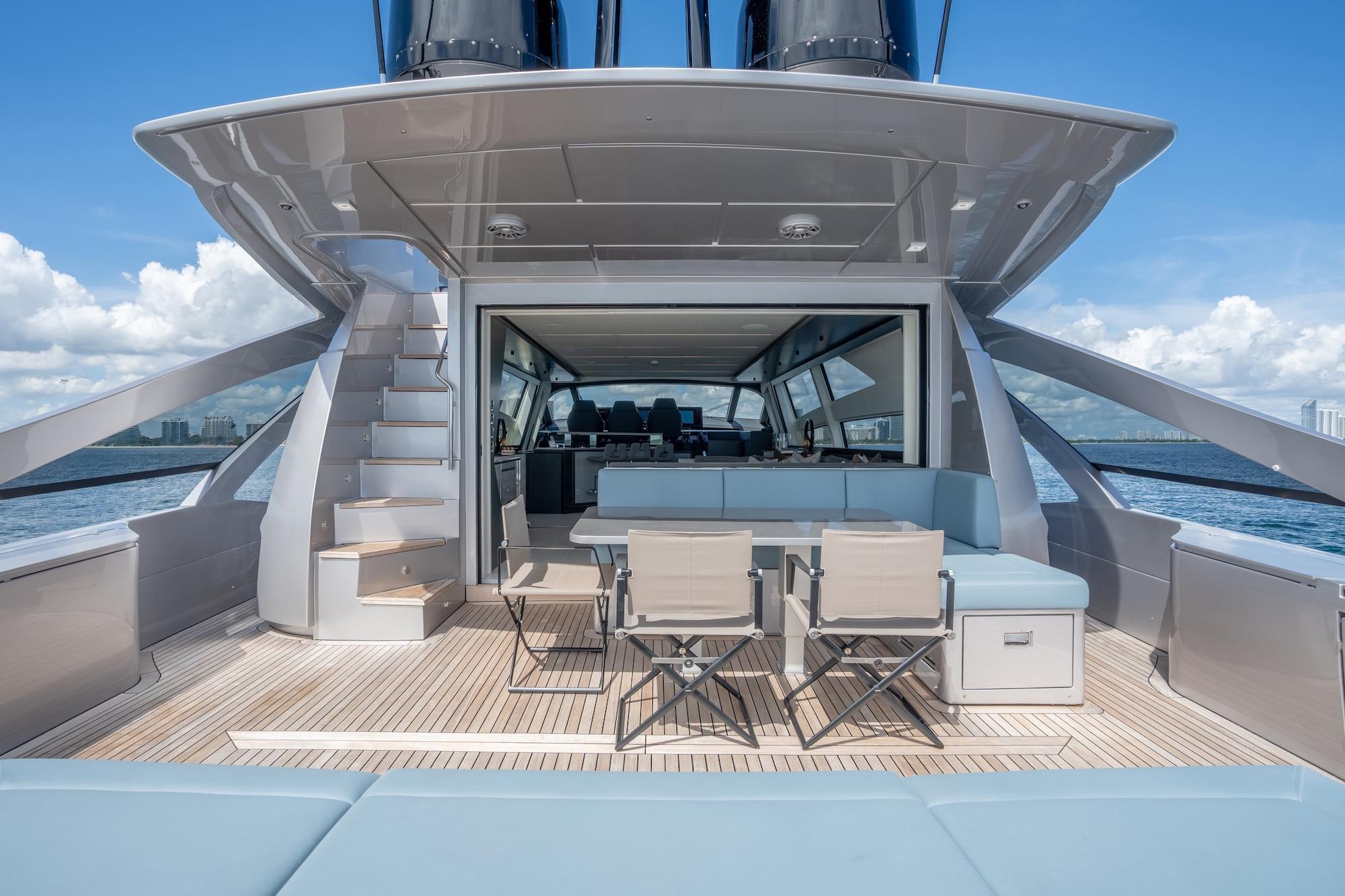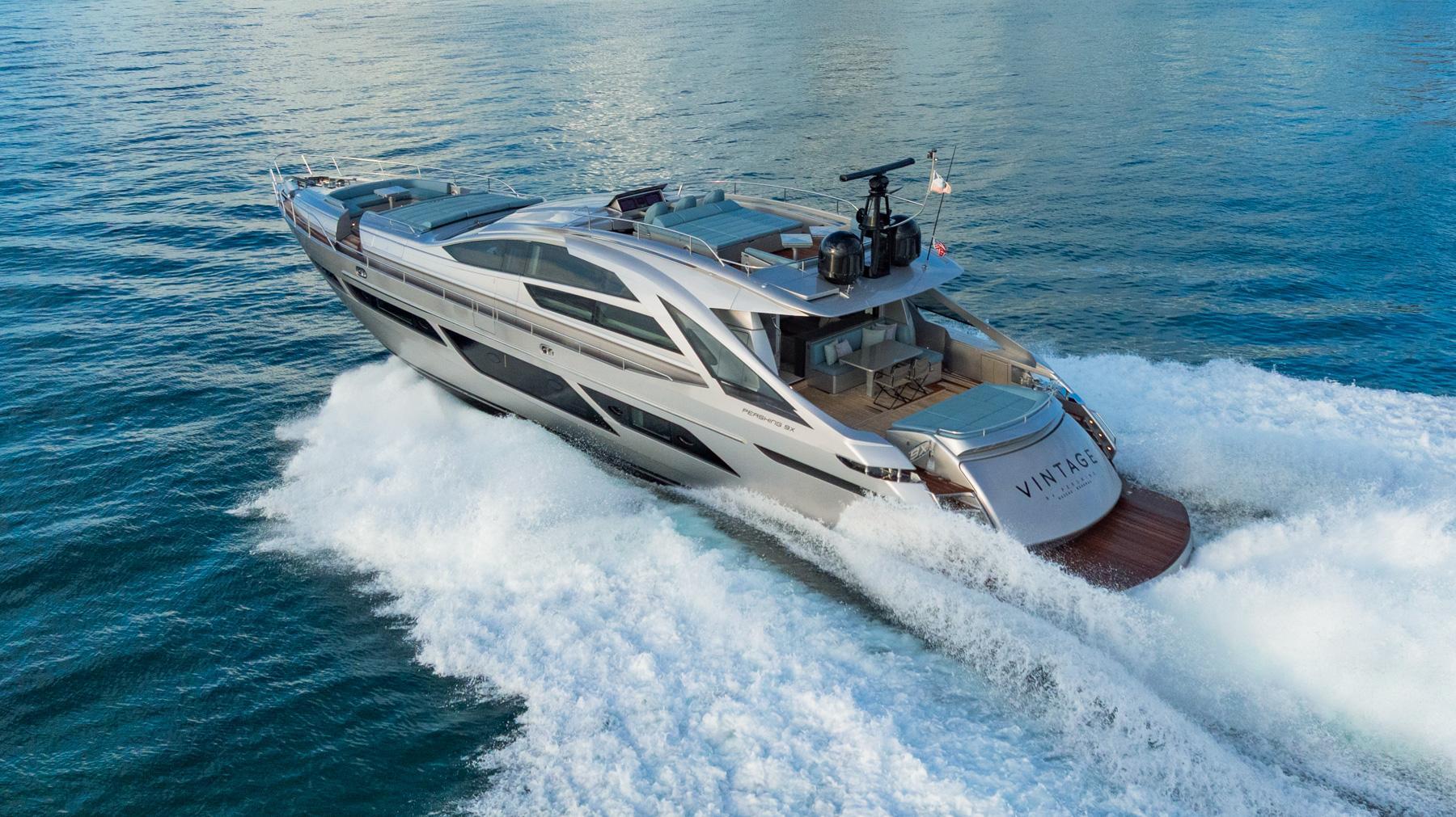 The 2021 Pershing 9X “VINTAGE” is innovative in every way, beginning from the composite materials, based on carbon, vinyl ester resin and epoxy resin. Its sporty lines are exalted by the large side wings and the aerodynamic profile of the sun deck. The open-air foredeck area and the sundeck combine supreme comfort with maximum privacy, while the interior décor stands out for elegance and sophistication. “Vintage” offers performance at the very top of its class and unique comfort thanks to its quiet running, even at high speeds, and its lack of roll at anchor. The full integration of the propulsion, navigation and monitoring systems merges performance with control. Thanks to the joysticks and surface propellers, “Vintage” offers utmost maneuverability, even in tight spaces. This 2021 9X combines elegance and technology to maximize on board pleasure. The sun deck offers extremely generous spaces for relaxing, thanks to a lounge dinette and a large sun pad. The interior décor boasts the best Italian brands, such as the leather-upholstered “Interior in Motion” helm station which celebrates the partnership between Pershing and Poltrona Frau. One owner since delivery new in 2021, having been maintained impeccable and upgraded by a diligent Captain and crew. Don’t miss the opportunity to own a one-of-a-kind express yacht, that will surely exceed your expectations.