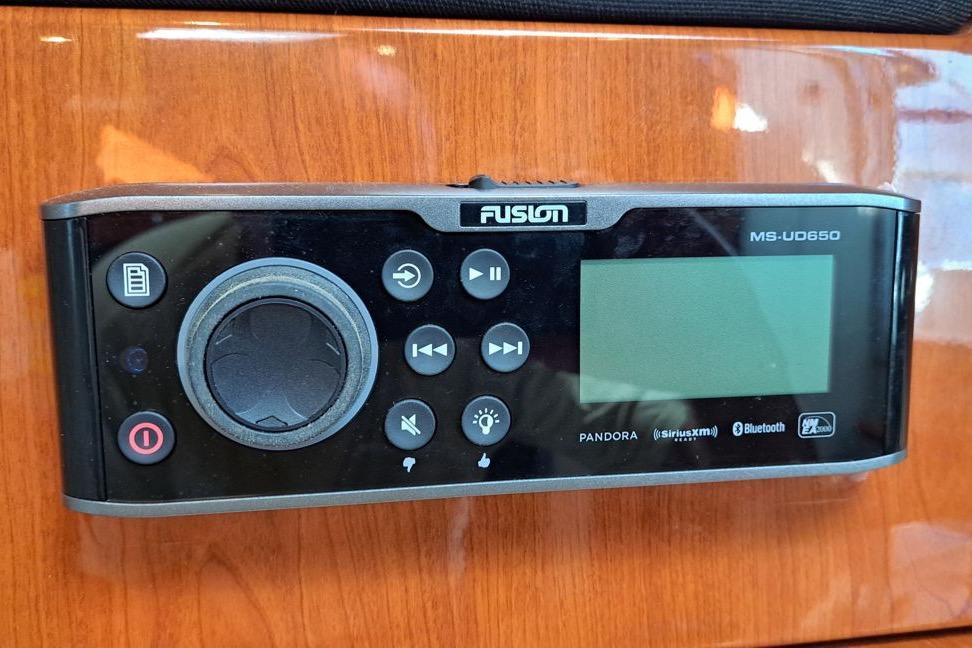 Fusion sound system with subwoofer features separate speaker control for the cockpit and cabin