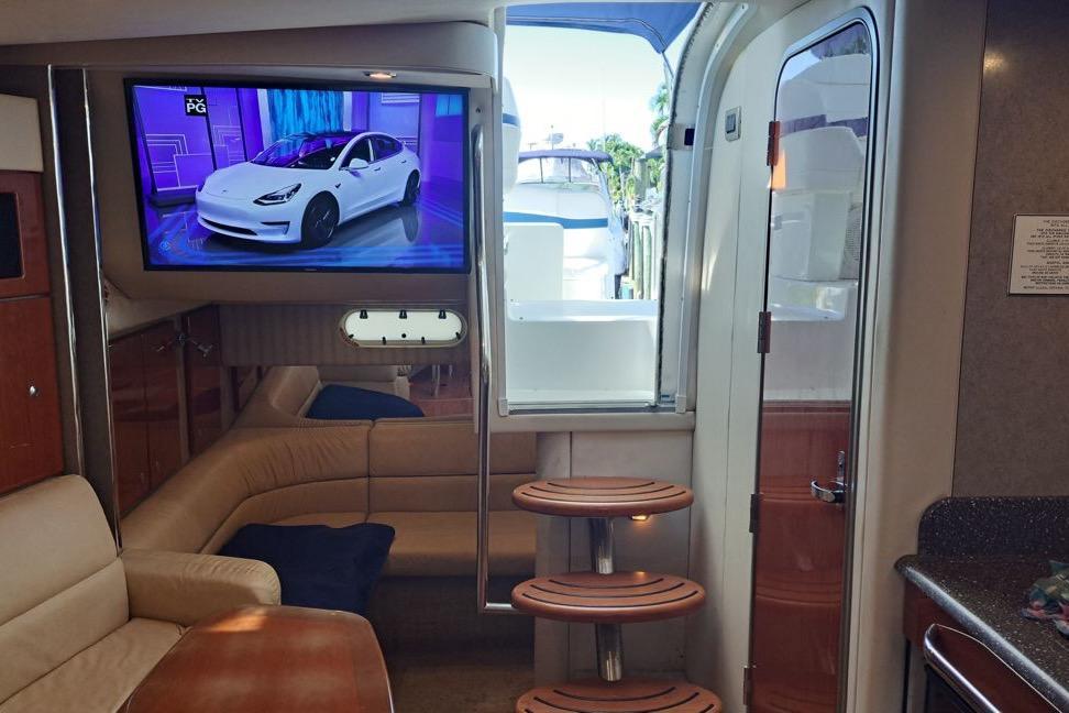 Cockpit lighting can be white or blue, multicolor underwater lighting on the transom