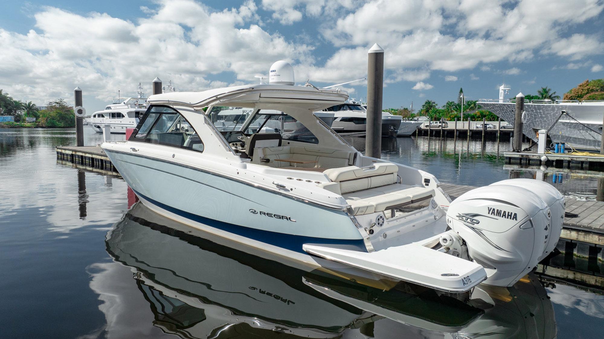 2022 Regal 36 LXThis is the one you have been waiting for! Pristine and very well equipped. This boat will please the entire family with an abundance of seating and amenities. I don’t think there is another boat on the market with this many innovative features and attention to detail. The sliding hardtop and retractable aft sunshade give you the best of all worlds and all weather comfort. The aft sun lounge and large swim platform offers waterside lounging in luxury. The cockpit is perfect for entertaining with lots of seating and a wet bar complete with electric BBQ grill, refrigerator, sink, and storage. The Sat TV and drop down Flat Screen provide the entertainment! This is truly a yacht that checks all the boxes. She has been impeccably maintained, serviced, and detailed and comes with an extended bumper to bumper warranty. This is a great opportunity to get a like new boat at a significant discount. Please call the listing broker directly for more information.