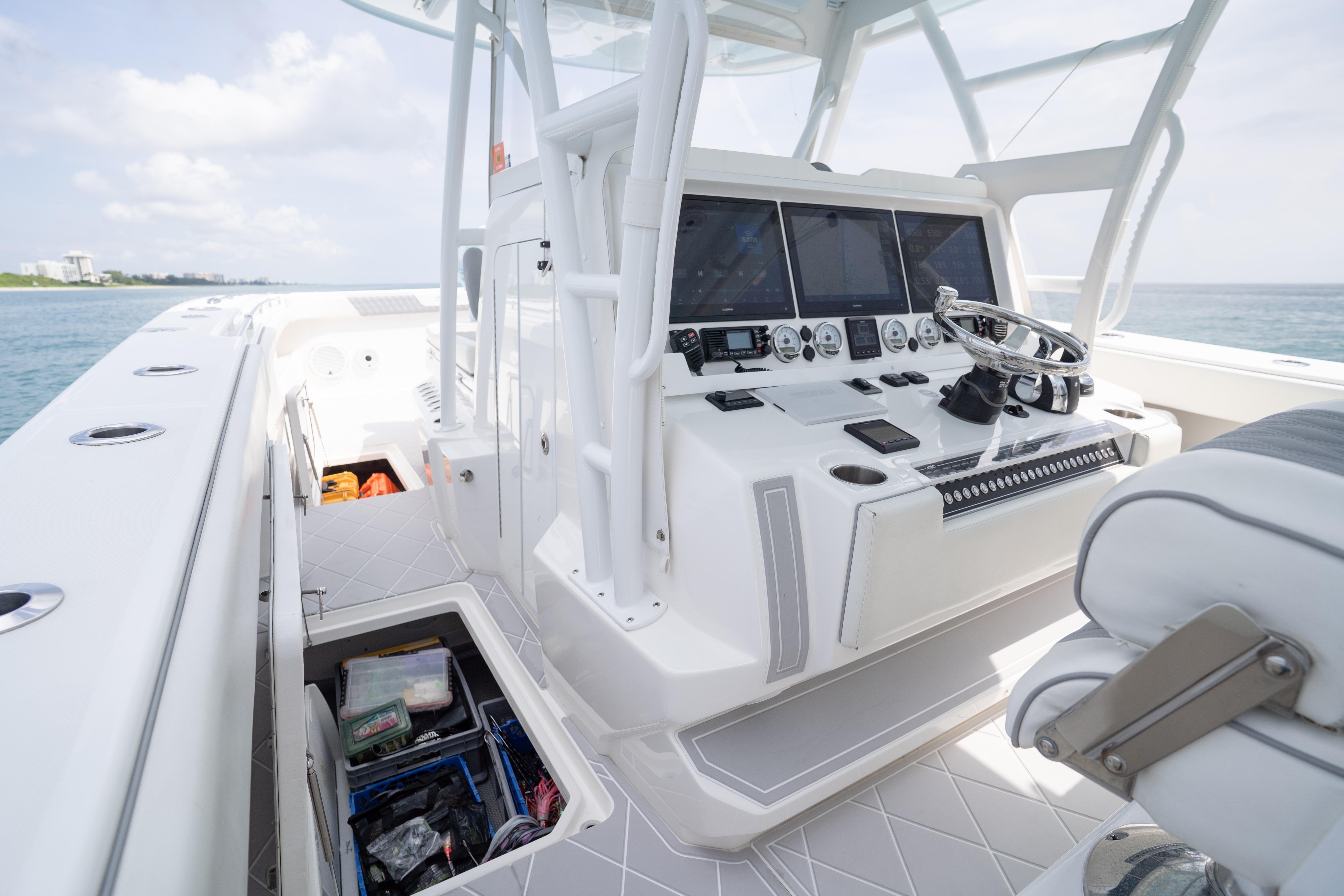 Introducing this stunning 2022 Invincible 46 Catamaran, that combines elegance with high performance to give her new owners an amazing experience. This boat is meticulously maintained by its current owner with weekly wash plan and quarterly full detail and wax. With an overall length of 46 feet, this vessel boasts a sleek Ice Blue hull designed for stability and speed. Equipped with four 2024 Mercury V10 outboard with platinum warranty till 2032, each delivering 400 horsepower, it effortlessly reaches cruising speeds of 45 mph and can achieve a maximum speed of 65 mph. The catamaran features advanced joystick control for seamless maneuverability, double row seating for amazing overall boating experience. Designed for adventure, it is perfect for those seeking thrilling excursions on the water. The spacious layout allows for comfortable movement, making it ideal for entertaining guests or enjoying a day out on the waves. With its modern design and robust engineering, the Invincible 46 Catamaran is a true gem.Powered by Quad 2024 Mercury V10 400s fusion whitePlatinum Warranty till 5/20233 Garmin 8617 Touch screen GpsGarmin 6kw open array radarGarmin autopilotStarlink wifi with 2500 watt inverter 2 icom vhf radios Simrad touch screen gps used as engine gauges Optimus Joystick steering control Side door with dive ladderTransom pullout dive ladder and steps2 Large floor live wells Port/Starboard2 Large transom wells2 rear bait cooler with drains Extended forward coffin box with built in refrigeration chiller platesLeaning Post with deluxe bait prep station built in drink box Drink box with dual refrigerated chiller platesFloor fish box with refrigerated chiller platesDouble row seating with custom embroidered lebroc seats with individual pedestals2 4 pump sea chest for live wellsCustom designed sea deck flooring Deluxe electric head in console Windlass in hull with custom anchor and bracket44 gunwale rod holders6 heavy duty swivel rod holders21 console rod holders6 rear hard top rod holders5 led spreader lights1 rigid 52' curved light bar on hardtopGemlux deluxe outriggers with carbon fiber poles 22ft3 Panel polycarbonate enclosure2 Panel polycarbonate wingsLumitec bow mounted light barSaltwater washdown with 2 hose and coil holder locations Freshwater washdown with 2 hose and coil holder locations Folding tower with dual station with full controlsGarmin 8612 in second station with steering and optimus control