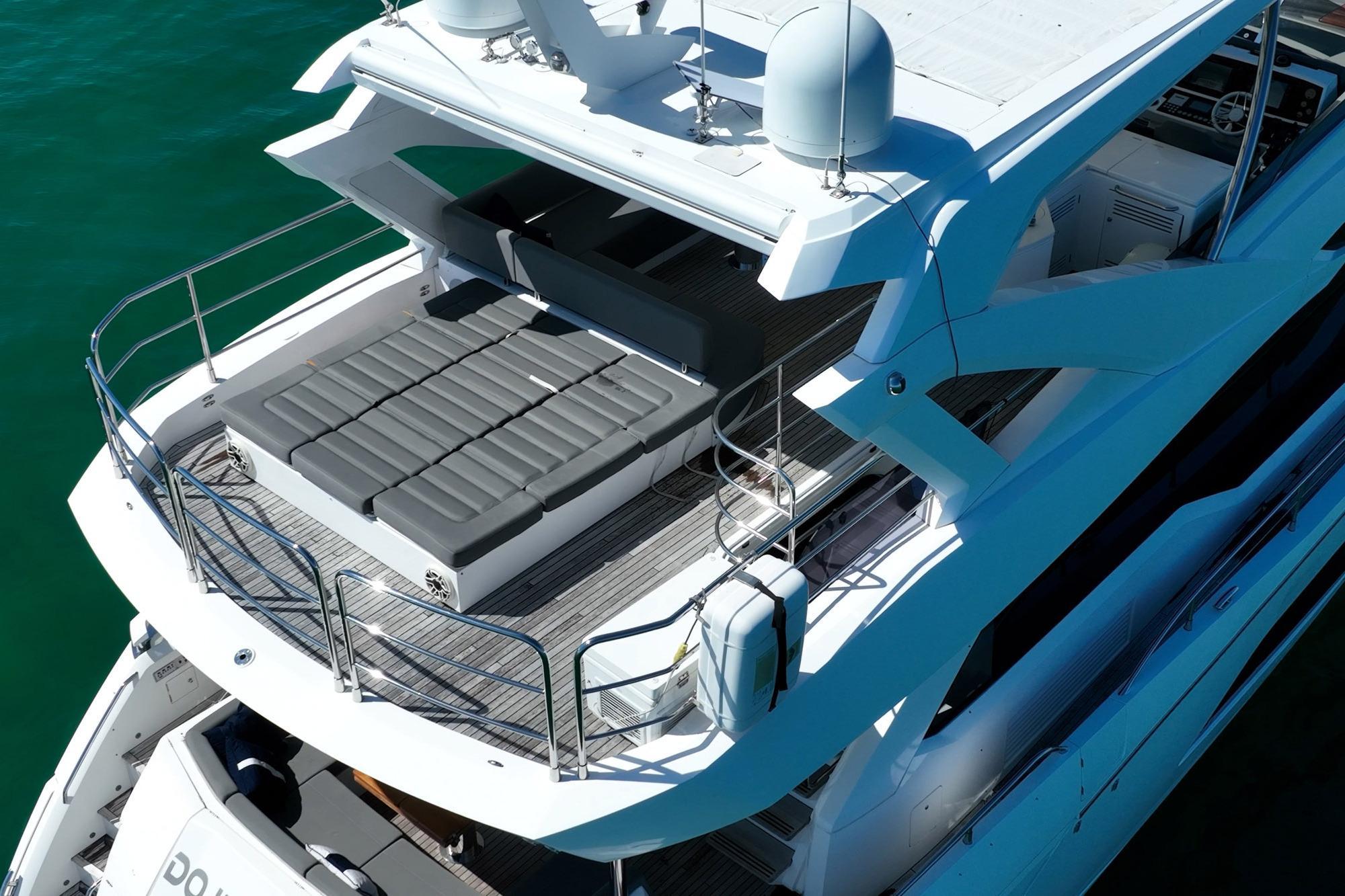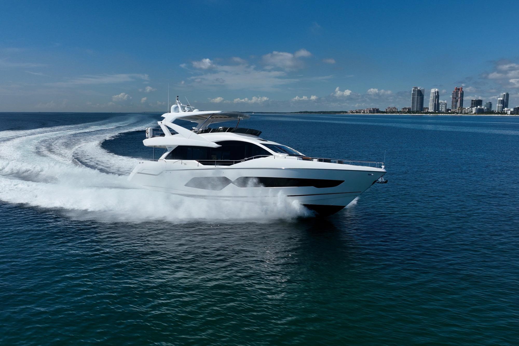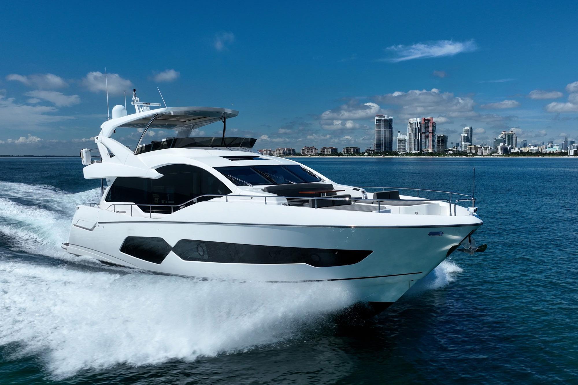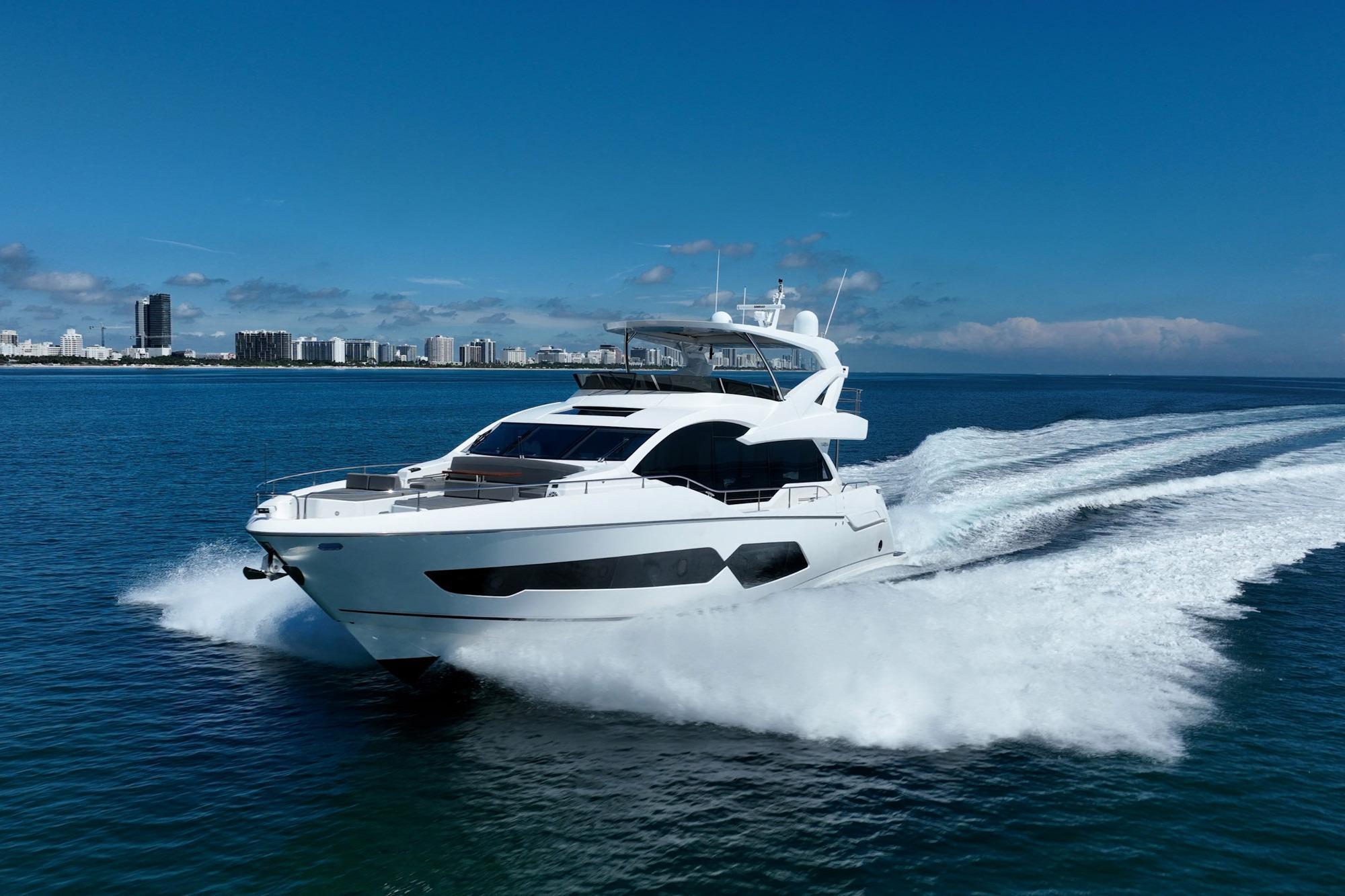 2018 Sunseeker 76 Yacht Fresh out of the Yard!This 2018 Sunseeker 76 Yacht is one of the cleanest and best-equipped in her class. With only 1,200 hours and a recent $100,000 yard period (including the full MAN 1,000-hour service, new bottom paint, PropSpeed, and fully serviced running gear) and more she is fully turnkey with records in hand.What makes her stand out are the expansive outdoor spaces — including a flybridge larger than most 80-footers and a dynamic bow lounge with dining and sunpad areas — paired with a luxurious 4-stateroom + crew layout.Add in Sleipner fin stabilizers with at-rest stabilization, dual proportional thrusters, and joystick docking, and you’ve got a yacht that’s easy to handle, comfortable at sea, and ready to impress.Repairs and Maintenance Completed: FULL 1,000 Hour service completed August 2025 - Work done with MAN factory certified technicians with OEM parts. Propellers scanned and re conditioned August 2025 New bottom paint August 2025 Prop speed on running gear August 2025Anchor roller mechanism rebuilt August 2025 Entire yacht compounded, buffed and waxed September 2025 Teak reconditioning September 2025New cockpit ice maker July 2024New windshield cover July 2024 New port and starboard raw water intake hoses July 2024 New generator raw water intake hoses July 2024 New AC raw water intake hose July 2024New cutless bearings July 2024 New stern tube bearings July 2024 New starboard shaft and propeller July 2024 Props and shafts balanced and reconditioned July 2024 Teak reconditioning July 2024Top Features Include:$100K Yard Period (2025): Full 1,000-hour MAN service, bottom paint, PropSpeed, and running gear serviceTwin MAN V12s at 1550 HP each – proven performance with joystick controls and dual proportional bow/stern thrustersStabilized: Sleipner fin system with at-rest stabilization for comfort at anchor and underwayExpansive Flybridge: Retractable hardtop, full wet bar with BBQ, ice maker, fridges, and multiple lounging/dining zonesDynamic Bow Lounge: Oversized U-Settee with varnished teak table, retractable canopy, twin sunpads with cooler storageLuxury Accommodations: 4 en-suite staterooms including a full-beam master plus crew quarters with laundry and nav stationBeach Club Lifestyle: Hydraulic swim platform with fold-out seating, BBQ, shower, tender storage, and direct water accessFully Equipped Galley: Miele appliances, wine cooler, and Sub-Zero refrigerationKey Specifications:Year/Model: 2018 Sunseeker 76 YachtEngines: Twin MAN V12 at 1550 HP each (1,200 hours)Generators: Twin Onan 29kWStabilizers: Sleipner fins with at-restWatermaker: Aquamatic 1400 GPDConstruction: GRP hand-laid hull with cored topsides and superstructureUnderwater Lights: 4 x LumishoreRecent Upgrades: Full MAN 1,000-hour service plus yard period (2025)Layout and Highlights:Main Deck Helm:Triple 19” Simrad MFDs with radar, autopilot, AIS, SAT TV, weather station, Wi-FiTwin Besenzoni helm chairs plus joystick dockingPiano black console and sliding sunroof Salon and Galley:Silver Oak cabinetry with wenge trim and granite countertopsL-Shaped sofa, loveseat, 55” TV with surround soundOpen galley with Miele appliances, Sub-Zero refrigeration, and wine coolerAccommodation:Master: Full beam with king berth, walk-in closet, 55” TV, en-suite headVIP: Forward queen berth, 40” TV, en-suite headGuest Cabins: One double (32” TV) plus one convertible twin (22” TV), both en-suiteCrew Quarters: Double berth, settee, laundry, nav station, en-suite head, engine room accessFlybridge:Retractable hardtop canopy, teak deckWet bar with BBQ, ice maker, fridge, and coolersForward sunpad plus aft U-Settee with dining tableDual Simrad helm with joystick dockingBow and Aft Deck:Oversized U-Settee with teak dining table, retractable canopy, twin sunpadsAft deck with U-Settee, folding teak table, wet bar, fridge, and ice makerHydraulic “Beach Club” swim platform with BBQ, shower, fold-out seating, passerelle, and tender storageMechanical and Electrical:Twin MAN V12s at 1550 HP eachTwin Onan 29kW generatorsSleipner stabilizers with at-rest capabilityHydraulic trim tabs and power steeringAquamatic 1400 GPD WatermakerCentralized AV rack with battery backupLumishore underwater lightsFull-service access from both crew quarters and aft deckThe Sunseeker 76 Yacht has always been a standout in the 70–80 ft category, but this particular 2018 model is in a class of her own. With her fresh $100K yard period, MAN service up to date, and a layout that maximizes outdoor entertaining, she is ready for immediate cruising.From the oversized flybridge and bow lounge to the luxurious full-beam master and Beach Club swim platform, this yacht delivers the ultimate blend of performance, comfort, and lifestyle.Turnkey and aggressively maintained, she’s an exceptional opportunity for a discerning buyer.