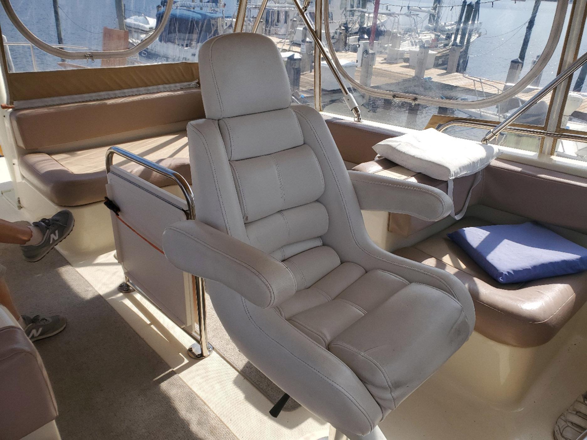 - Upper helm flybridge with custom Todd helm chair with fold down arms and extended headrest
