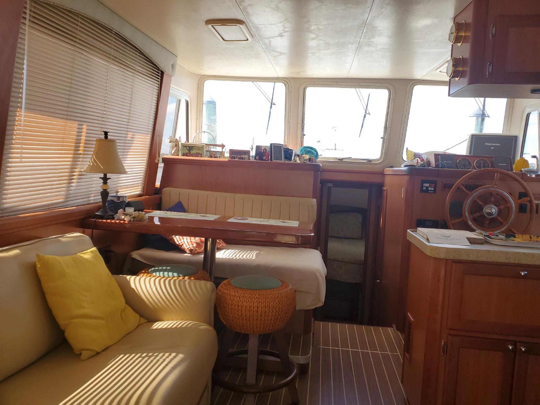 This is a very well maintained (by a former Air Force mechanic) 40’ single engine trawler that is fuel efficient. It has all the extra bells and whistles such as: bow and stern thrusters, remote steering for easy docking, stern camera, “summer” kitchen on upper deck, enclosed flybridge with extra seating, swim platform, forward and aft shore power hook ups, a tub/shower combo in the head, a dinghy included and more! Very fuel efficient: approx. 2-3 gallons per hour at cruise speed.Newer Northlights generator (2016)Low engine hours (2500)