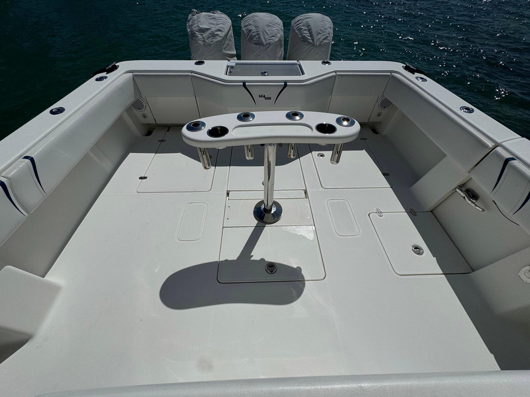 2014 SeaVee 390B Center ConsoleModel: 2014 SeaVee 390BLength: 39 feetHull: Deep-V, composite fiberglass construction for smooth offshore performancePower: powered by triple Yamaha outboardsPerformance: Fast, stable ride in rough conditions, built for serious offshore fishingLayout: Open center console with wide beam and full walkaround accessFishing Features:Factory-installed fishing tower with full controls and electronicsDual live wells, large insulated fish boxesTackle center and in-deck storageAbundant rod holders and outriggersElectronics: equipped with dual screen Garmin/Raymarine systems, radar, sonar, and autopilotSeating: Forward lounge seating, fold-down transom bench, and leaning post with storage and rod holdersFuel Capacity: Approximately 550 gallons for extended rangeNotable For: Tournament-ready layout, custom rigging, and exceptional build qualityThis is a turn key fishing machine, be on the fish and having epic days on the water in no time.Built to dominate offshore, the 2014 SeaVee 390B delivers serious speed, stability, and fishability. With triple outboards, a full tower, and tournament-grade features, this beast is made for anglers who won't settle for second place.