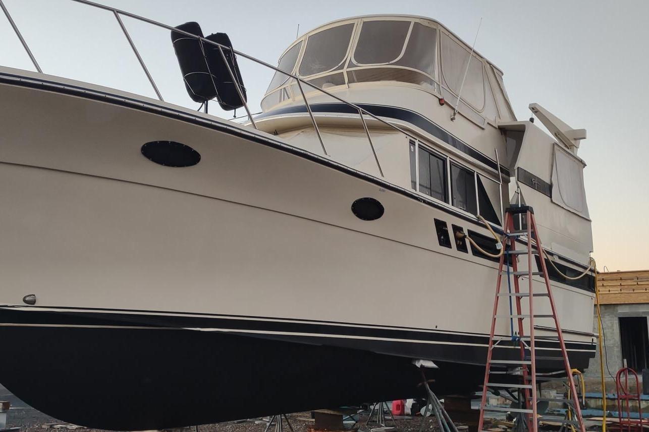 With No expense Spared this vessel has been meticulously maintained and tastefully upgraded -All soft goods and upholstery replaced including interior blinds/ curtains, bunks, dining area, headboard, etc - New electric heads in both bathrooms along with all new black lines and a new holding tank (70 gallon)- New shower sump pump in forward shower - New macerater for overboard discharge - New garbage disposal in kitchen - New Ac’s in salon and aft bedroom (forward one is old) - New fresh water lines throughout- New electrical lines- All hoses on the boat replaced inc fuel, raw, etc. - All new batteries and battery charger - New water pump - New LVP flooring everywhere except forward bathroom still has tile - New Turbos - Risers and Mixing Boxes Replaced - Replaced All Fuel Lines - 1000 hour Service - New Bottom Paint - Rewired Aft Electrical Panel - Raw Water Pumps - New Throttle and Shift Cables - Every raw hose and clamps replaced - Gears Freshly Serviced - New Pss Seals- Engines Targeted and Aligned- Generator Fully serviced and coolers done