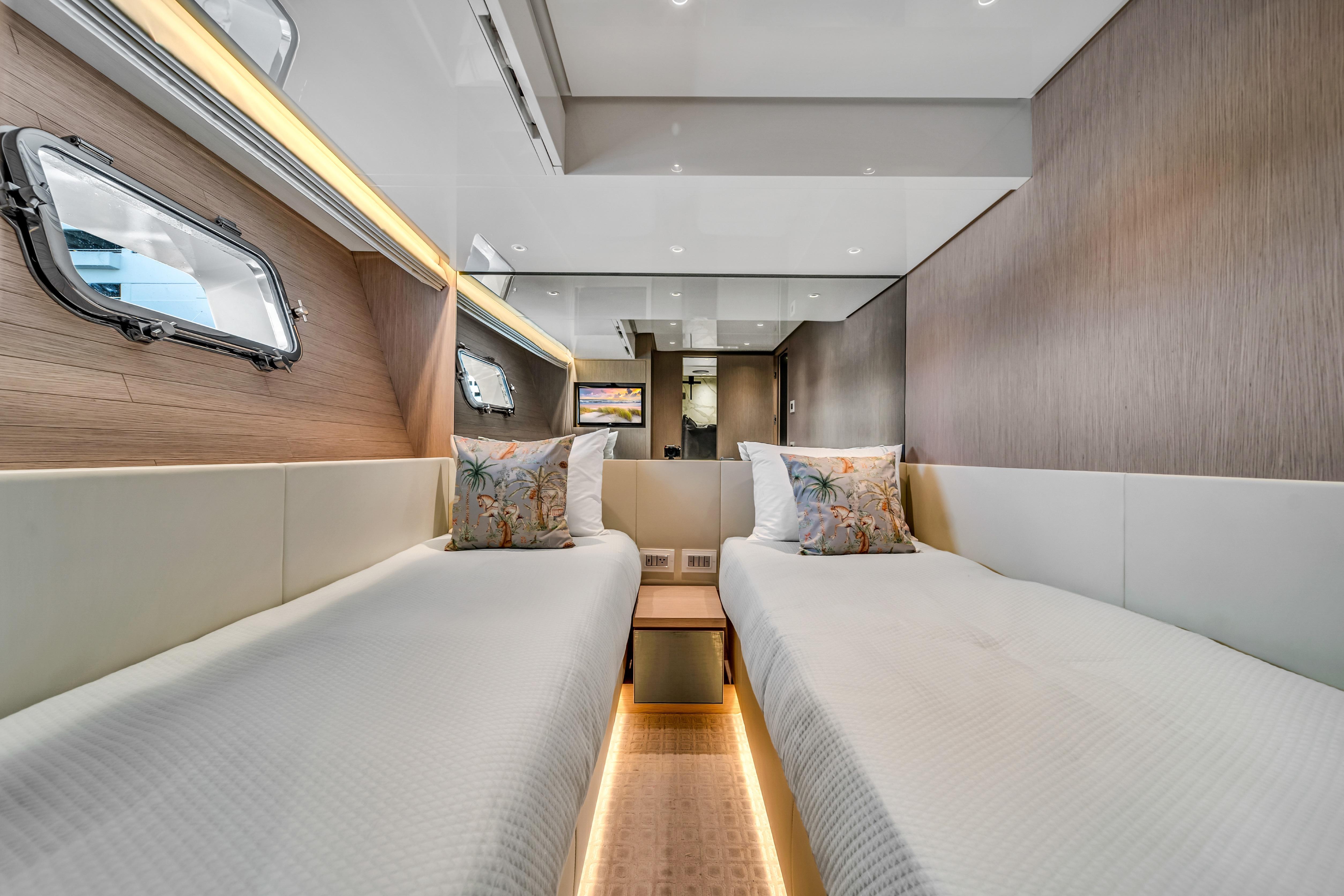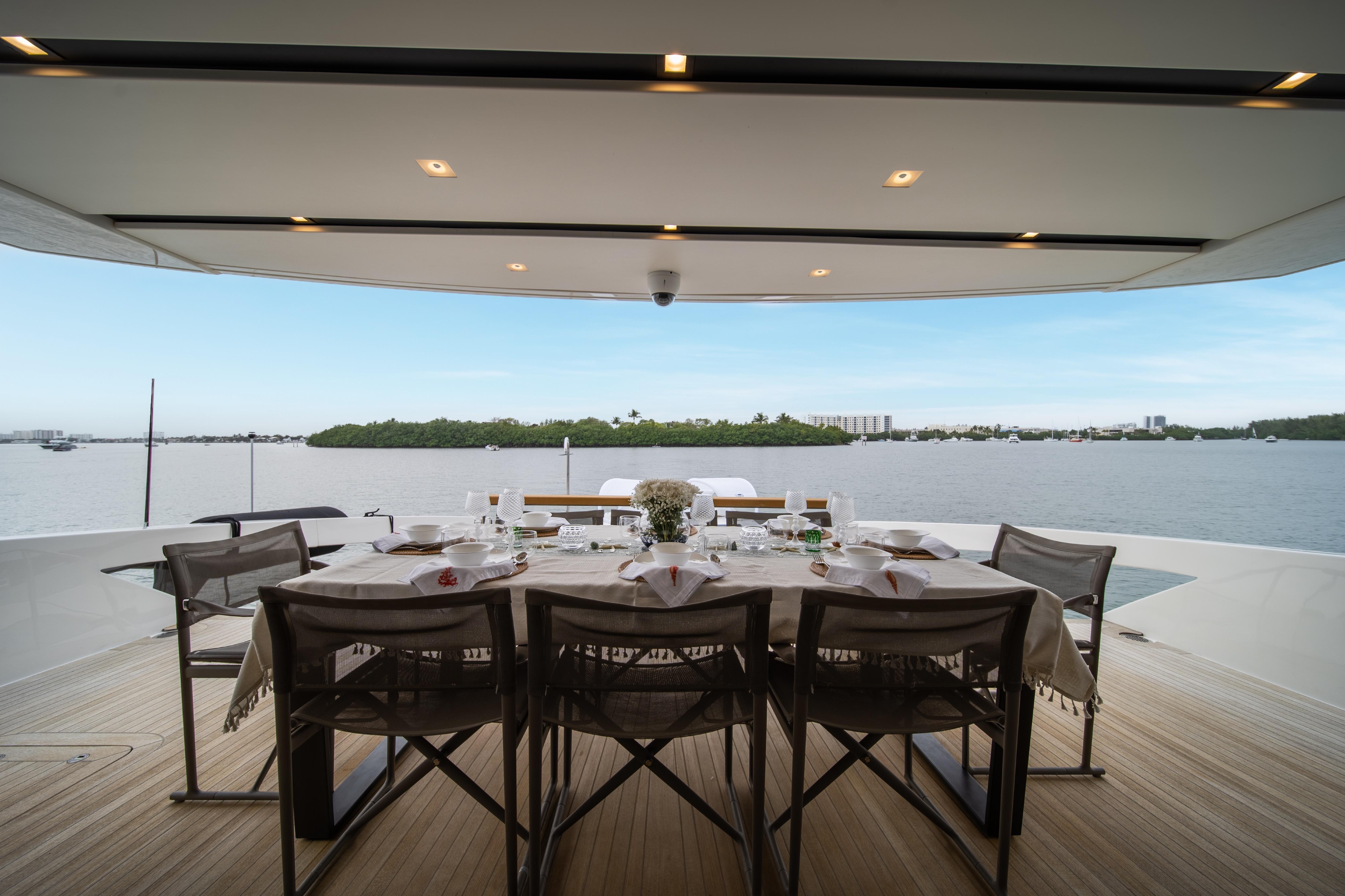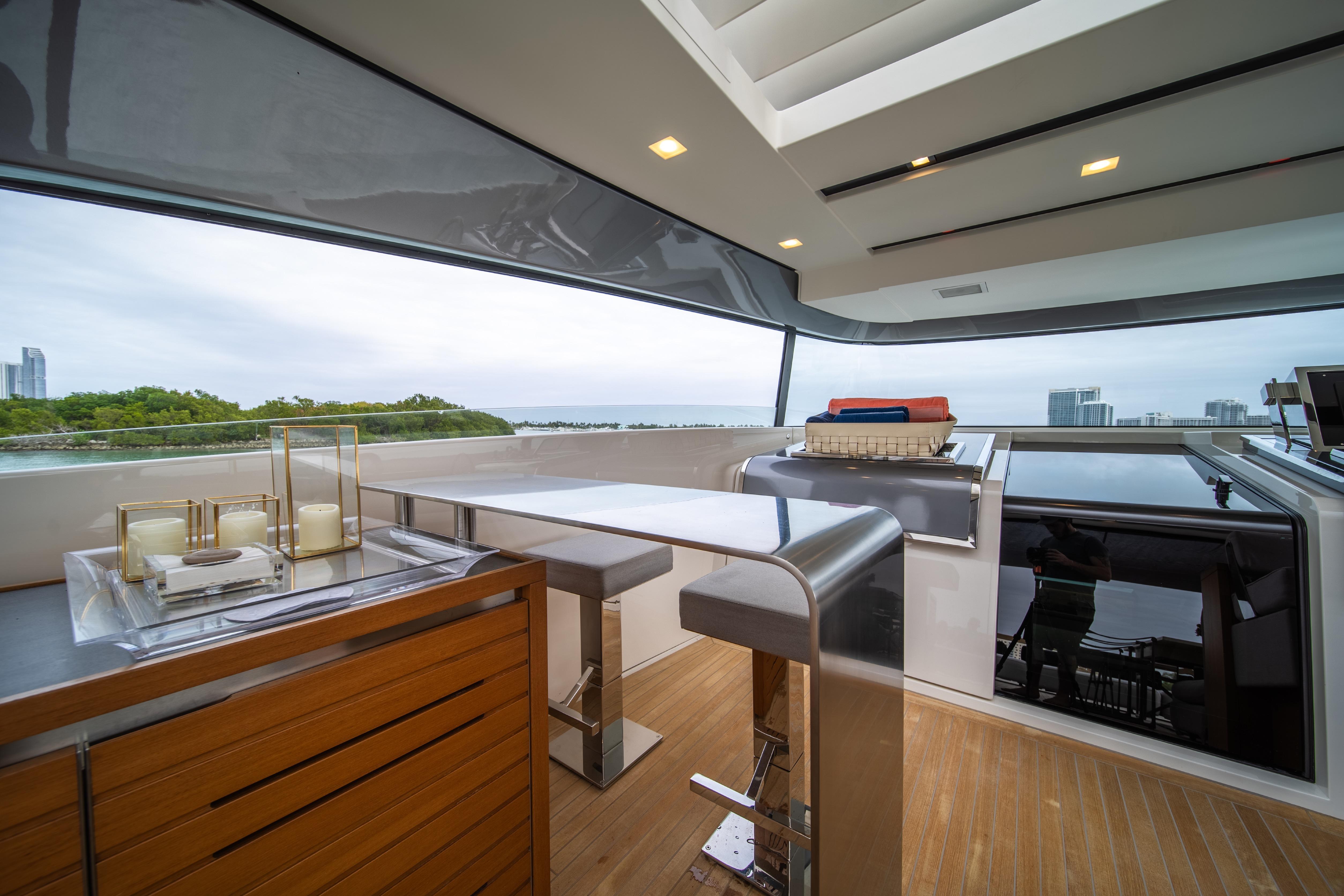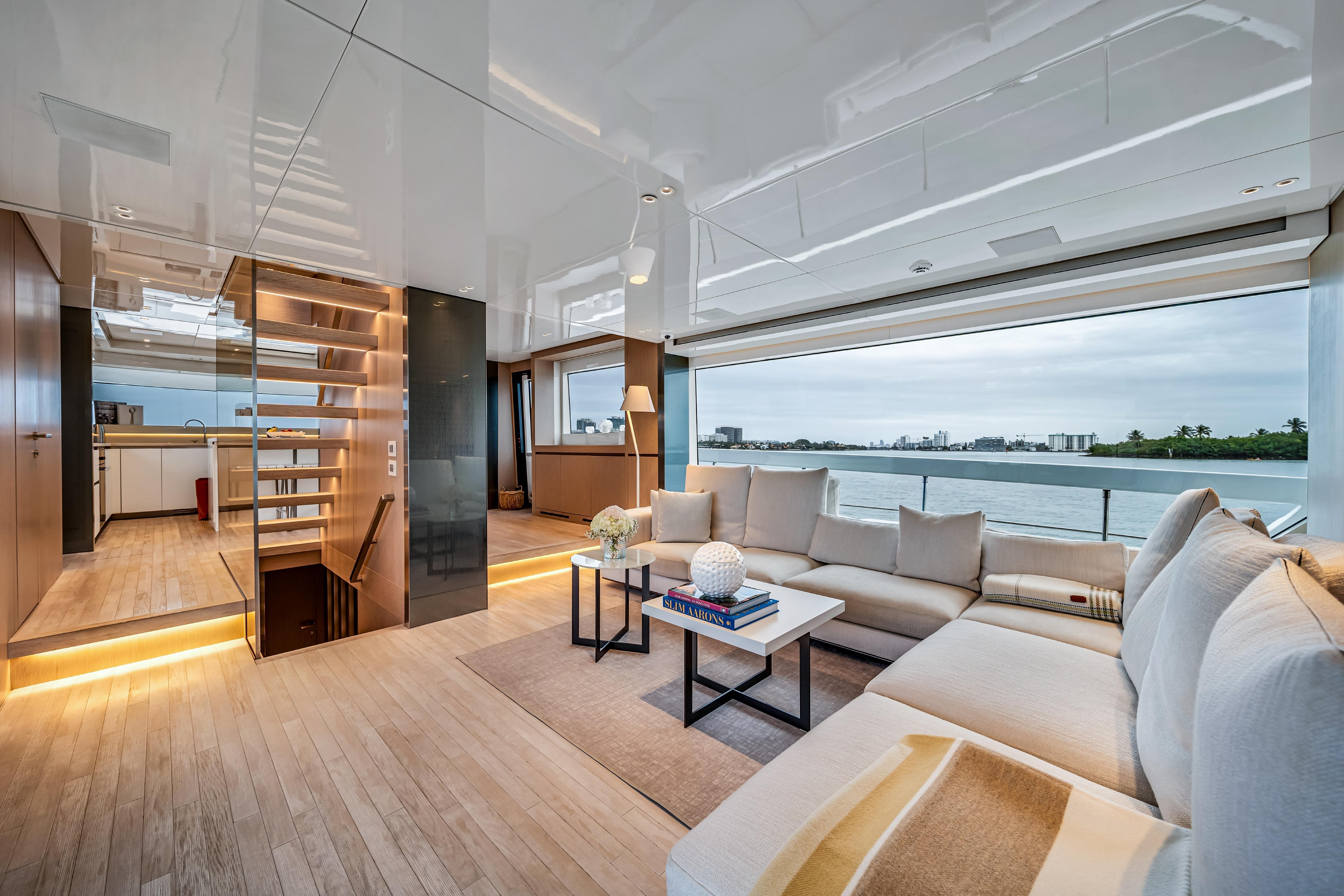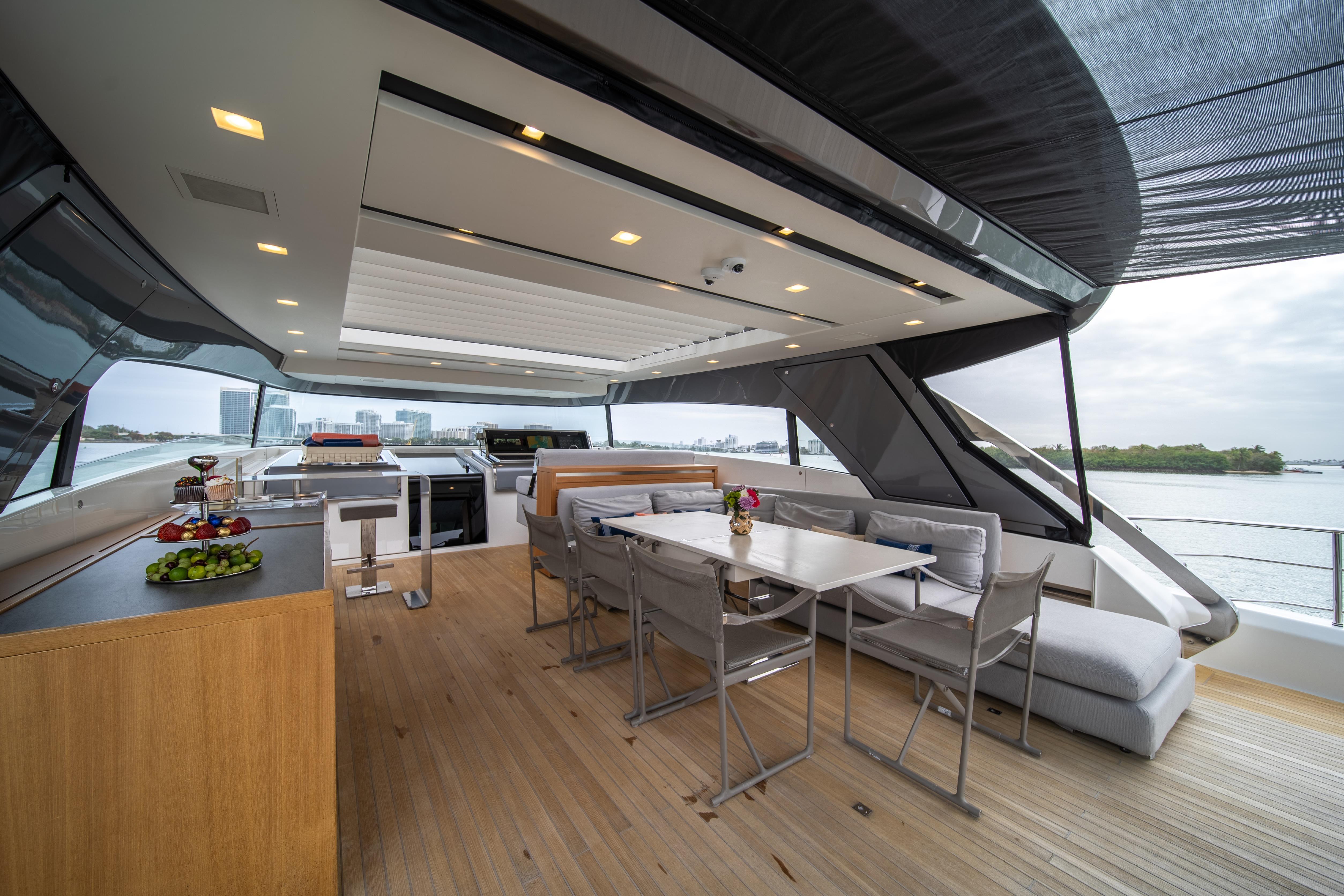 - Flybridge teak flooring and upgraded Minotti-style custom furniture