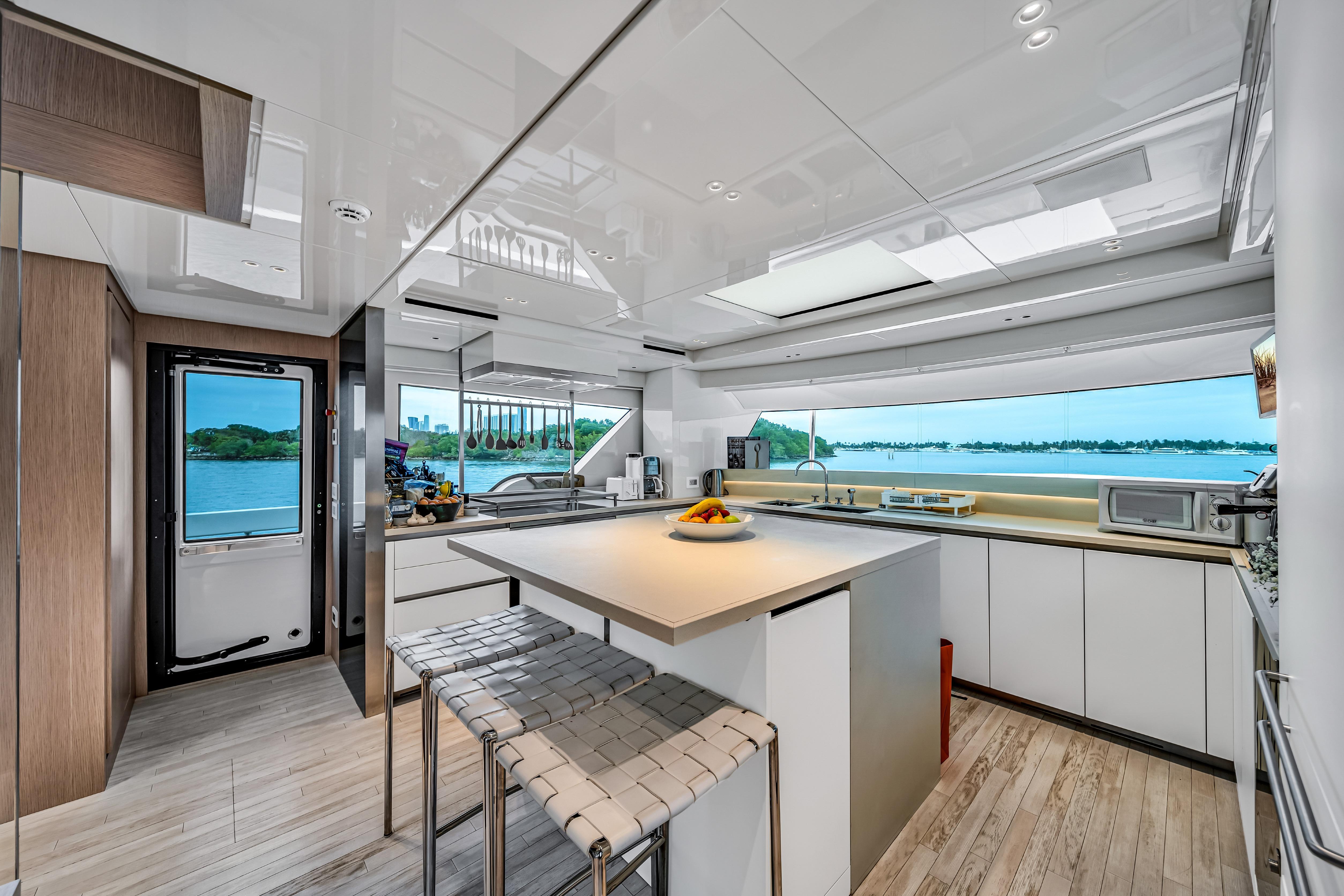 - Unique open-layout galley with custom island and Dekton “EDORA NATURAL” counters