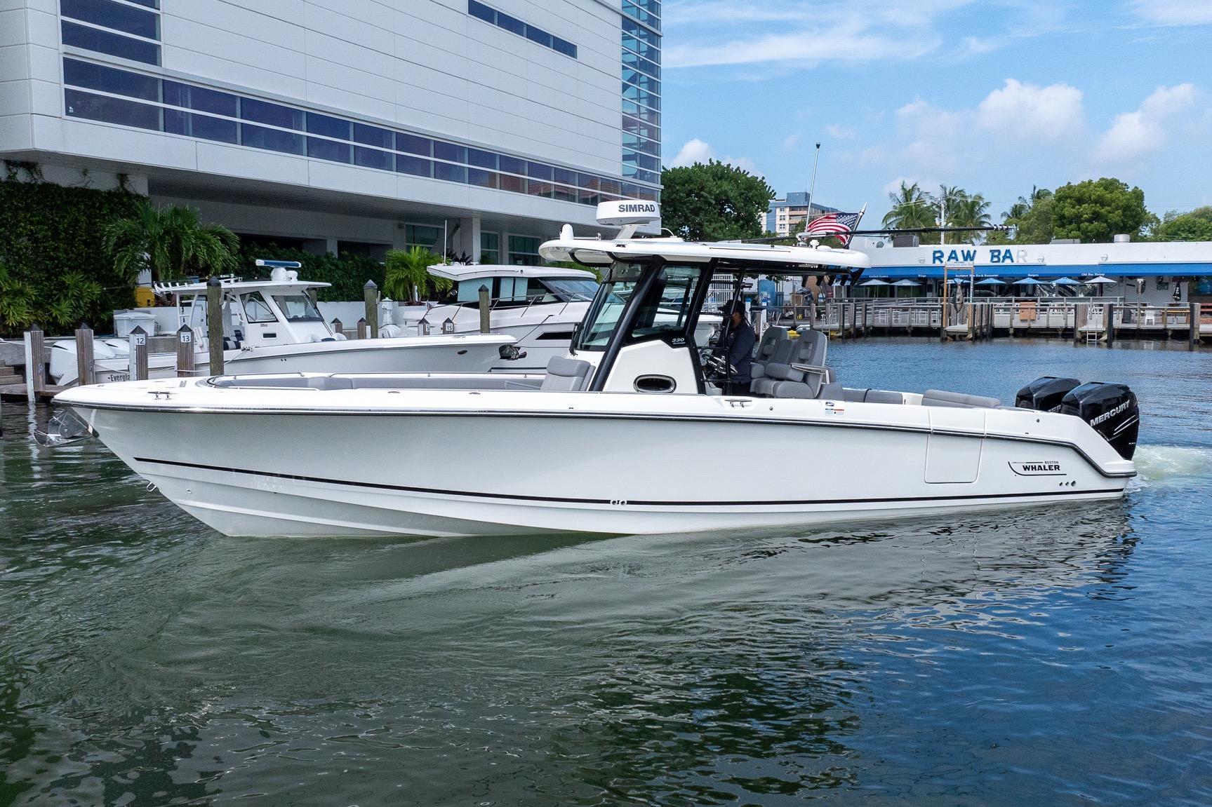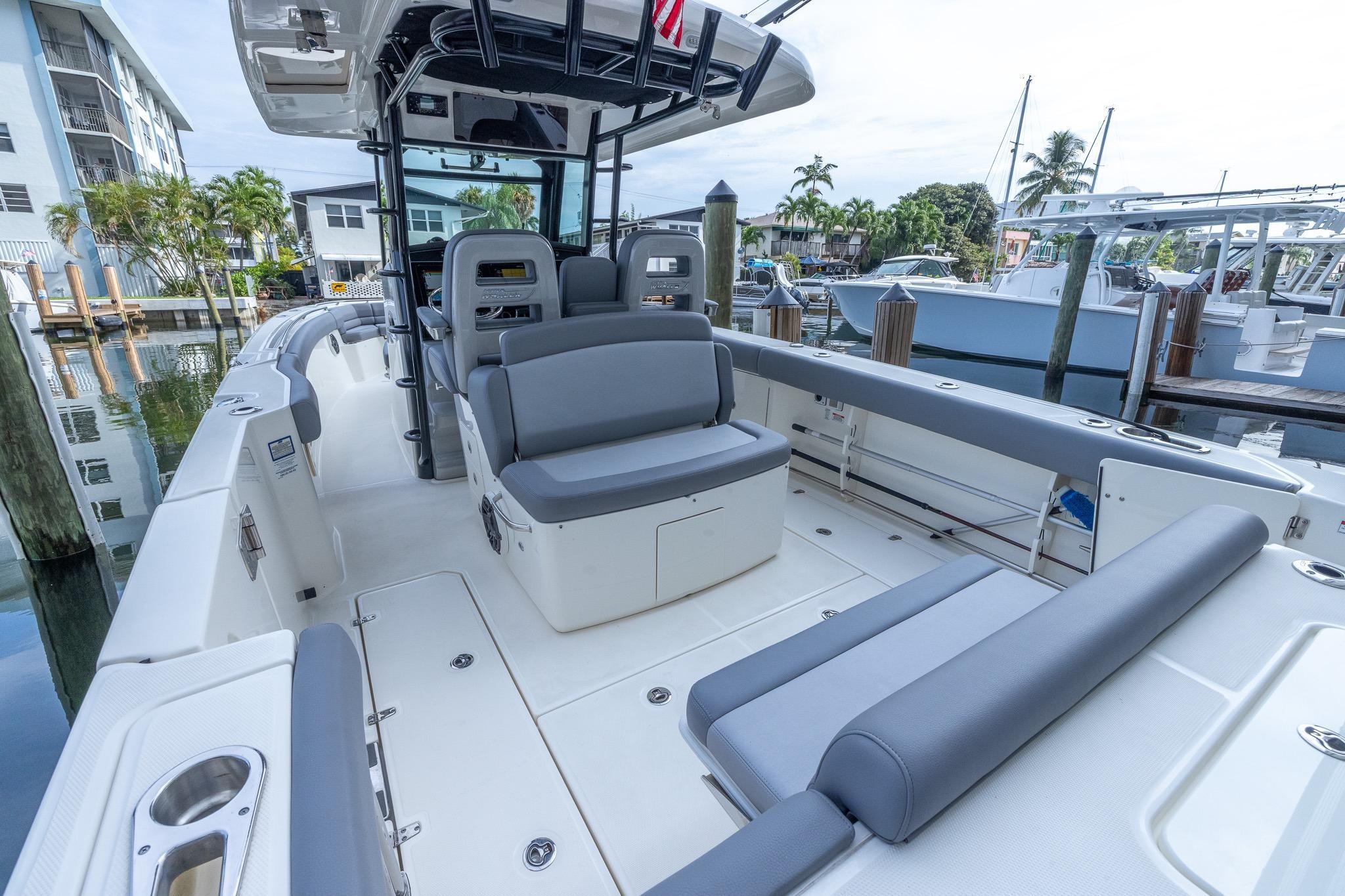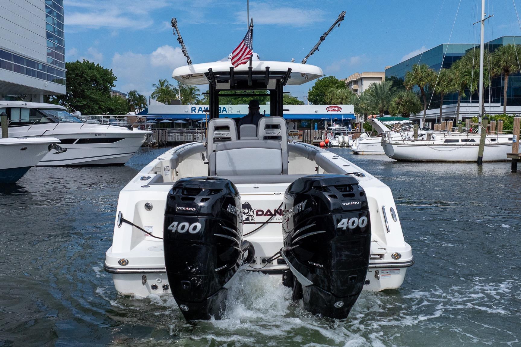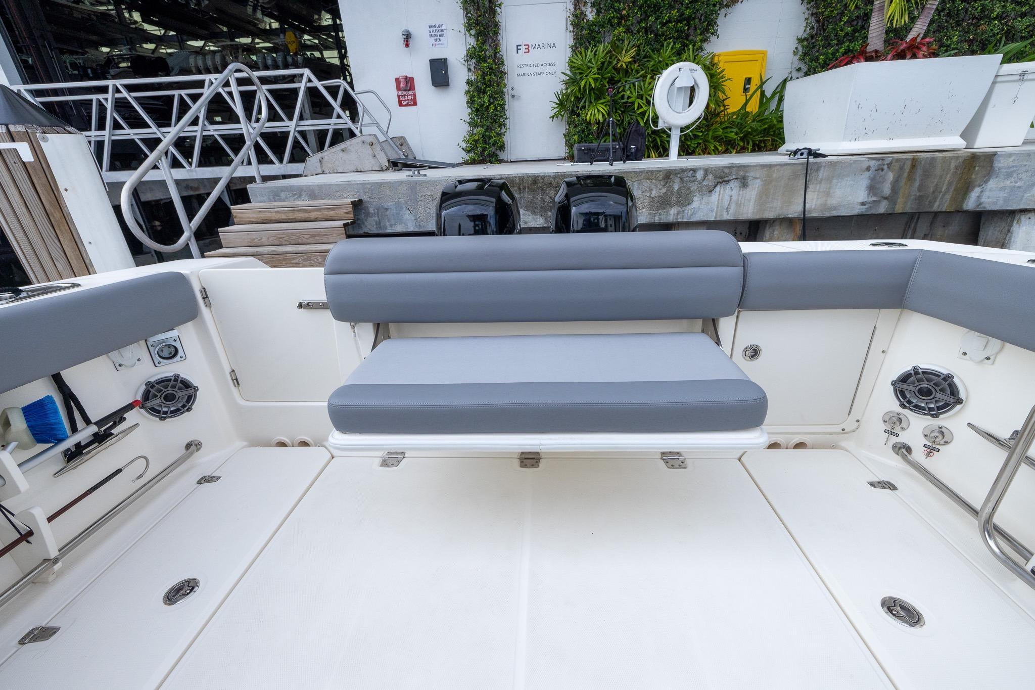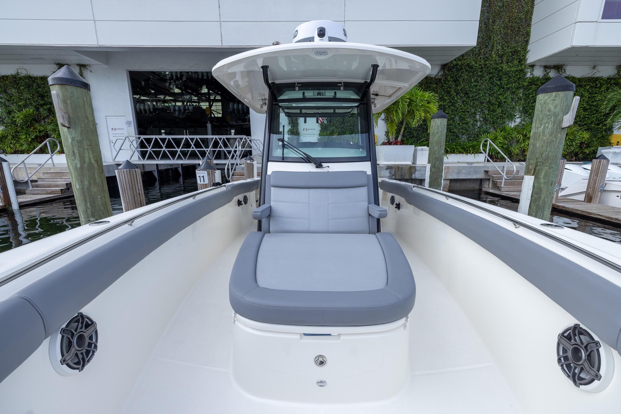 REEL DANCER is "better than new" and in bristol condition. She has been a freshwater-Great Lakes boat, until spring 2025. REEL DANCER has Twin Mercury 400s with less than 150 hours with all engine services up to date. This boat has all the factory preferred options including, integrated Mercury joystick control, windlass with stainless anchor, upgraded Fusion Marine Audio with JL Audio speakers, port-side dive/boarding door with removable stainless ladder, Twin Simrad touch screens, FLIR camera, and outriggers. A boat management team has maintained her in show-ready condition while in dry stack storage, since her arrival in Fort Lauderdale.