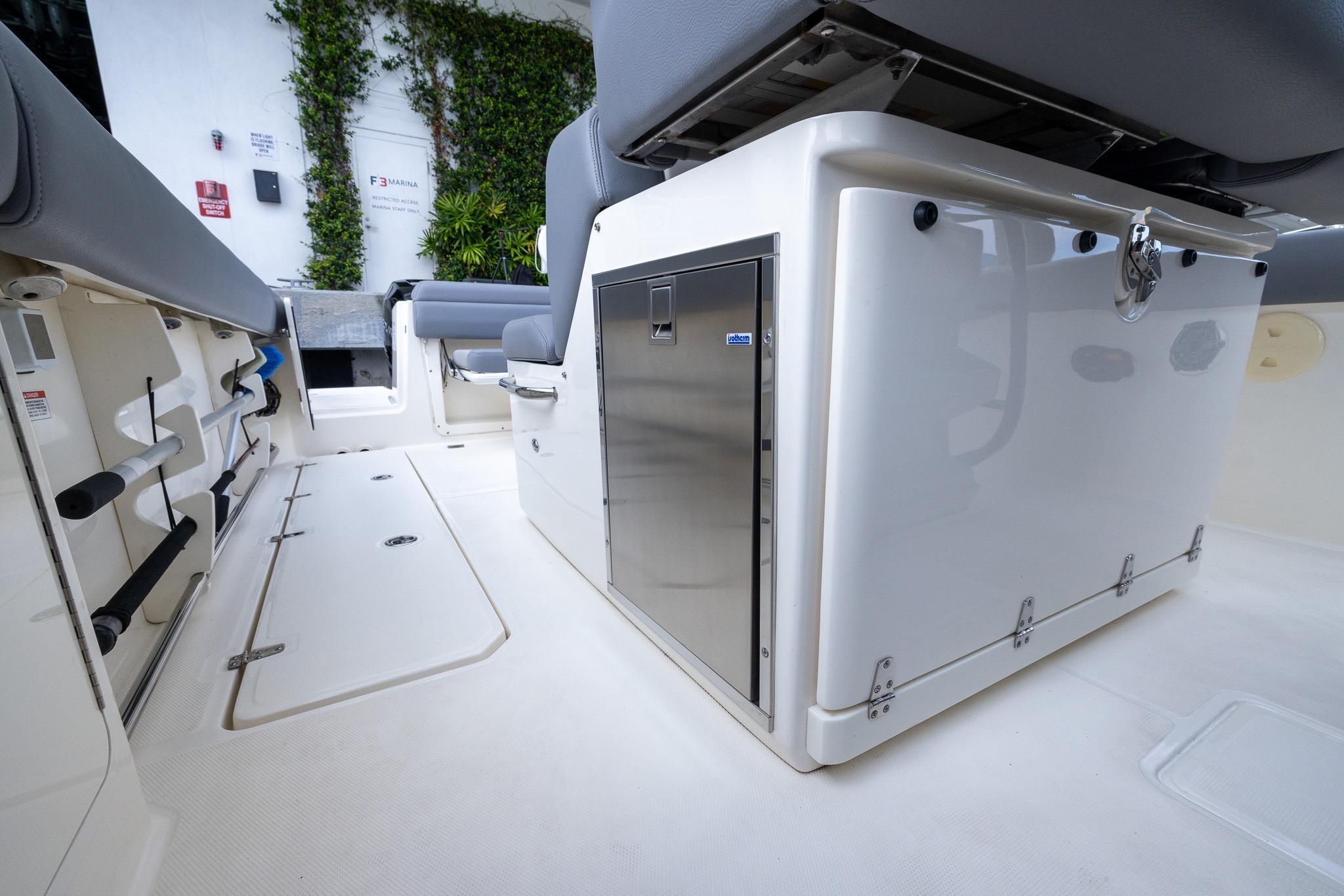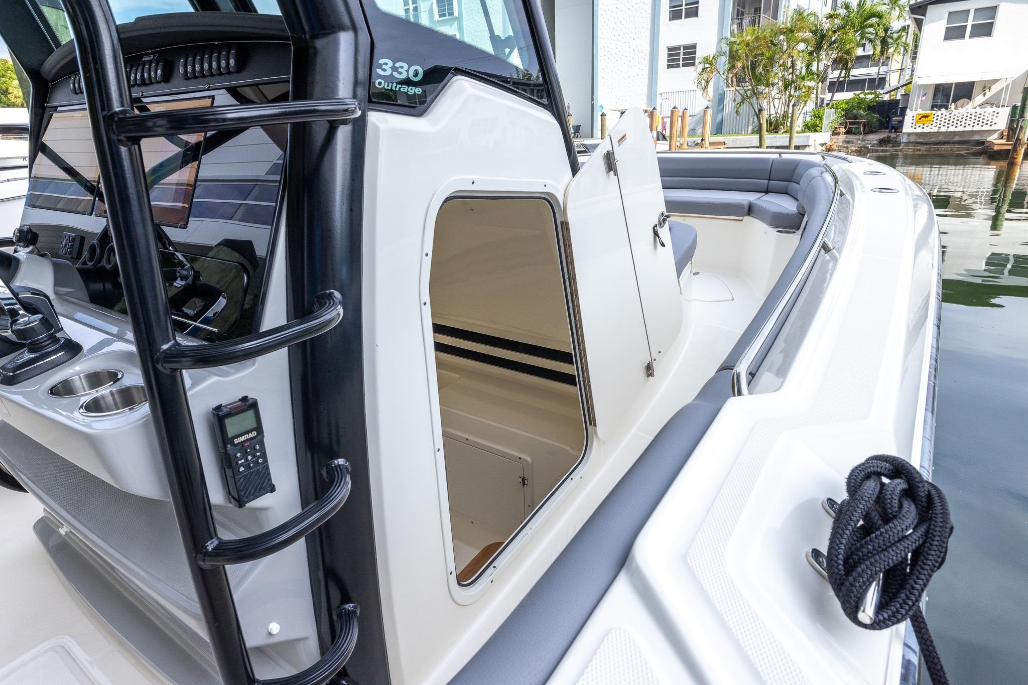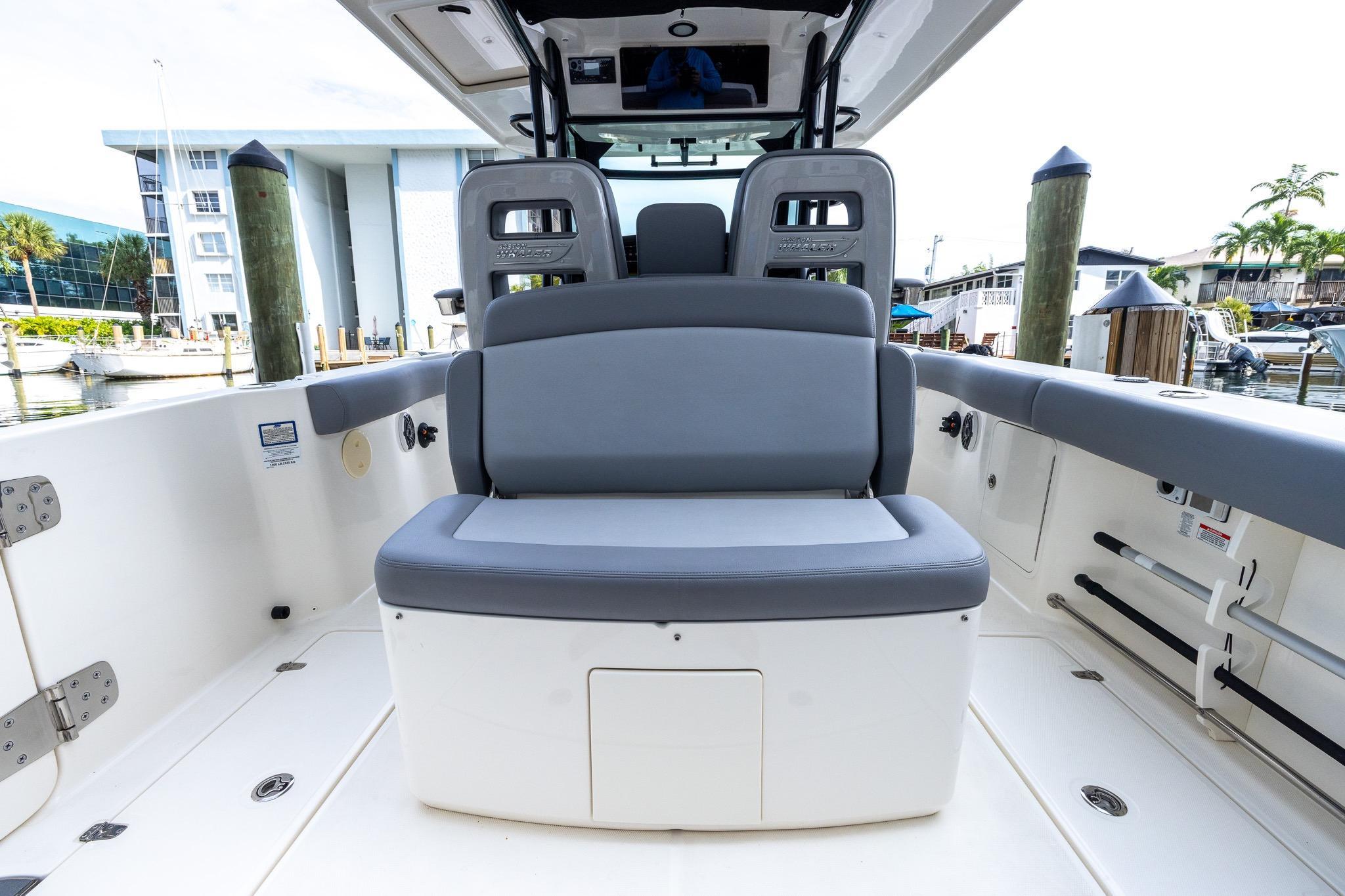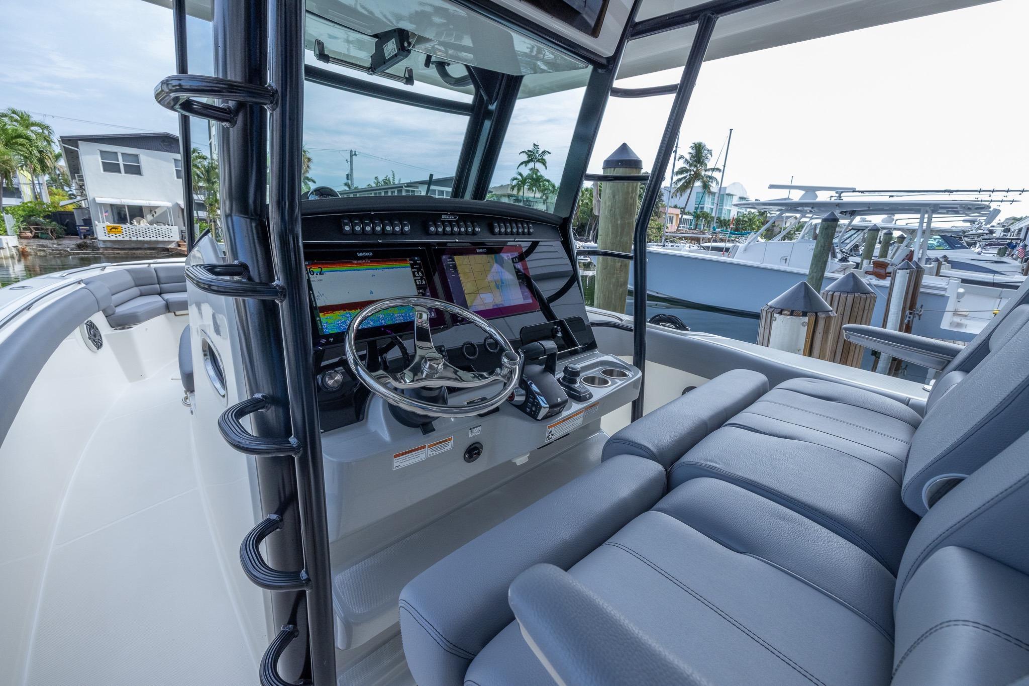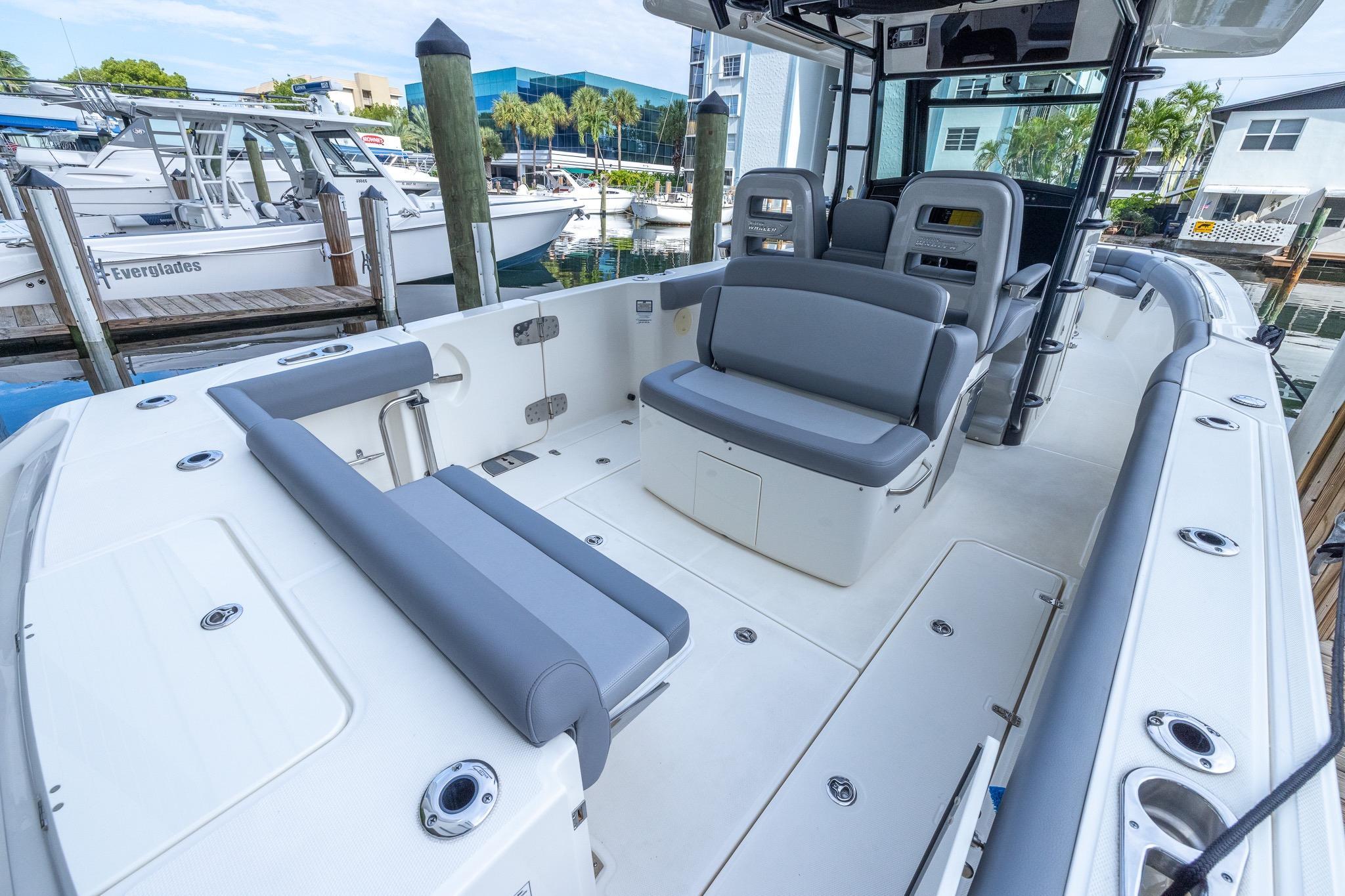 REEL DANCER is "better than new" and in bristol condition. She has been a freshwater-Great Lakes boat, until spring 2025. REEL DANCER has Twin Mercury 400s with less than 150 hours with all engine services up to date. This boat has all the factory preferred options including, integrated Mercury joystick control, windlass with stainless anchor, upgraded Fusion Marine Audio with JL Audio speakers, port-side dive/boarding door with removable stainless ladder, Twin Simrad touch screens, FLIR camera, and outriggers. A boat management team has maintained her in show-ready condition while in dry stack storage, since her arrival in Fort Lauderdale.