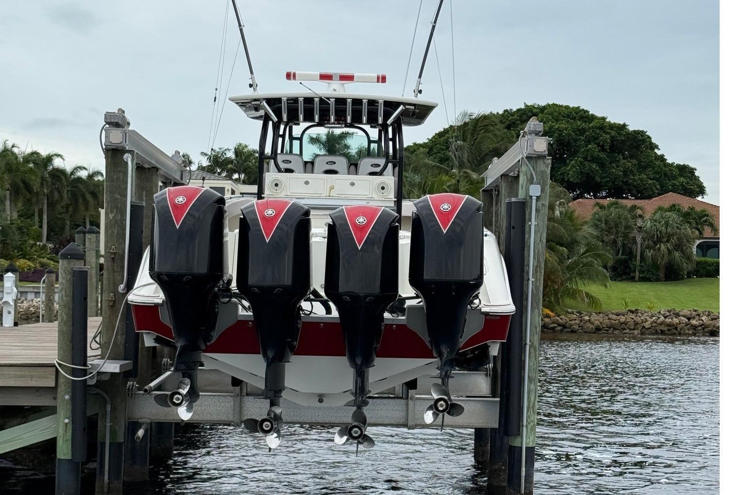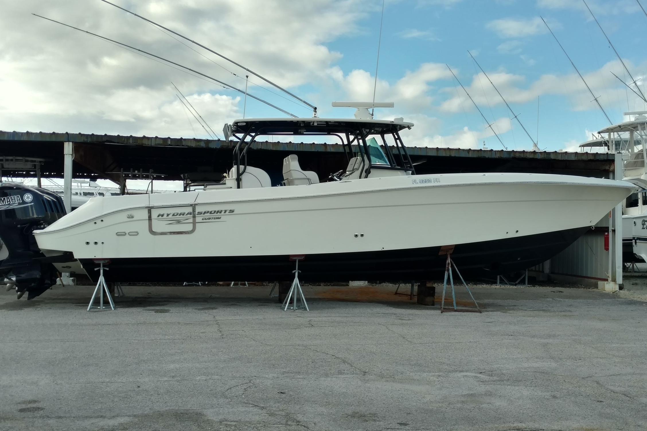 OverviewThis 2013 Hydra-Sports 42' powered by quad 350 hp Yamaha (B Series) engines and is equipped with everything you need for confort, speed, fishing and cruising. She has been lift kept with no bottom paint. A great bot for Florida fiishing or a trip to the Bahamas. Call for more information or to set up a showing on the 2013 HSC 42' Center console.Highlights:Red wrap, white Gel coat underneath, white and black gel coatNo bottom paintBow thruster (New 5-25)Full canvas coverAFT SunshadeNew Garmin Electronics package 2022ECM'S replaced at 140 hrs (260 hrs since replacement)Under water lights400 total hrsInward opening side dive door2nd row seatingNew cushions (complete)Sea Deck FullLED spreader lights for bow and cockpit (New)Fishbox chill plateFusion sounds system with JL Audio speakers5th 350 hp Yamaha "C" series engine include (currently in storage) (40 hrs) (6th lower unit brand newCabinSink and waterElectric freshwater head with fold down hideaway coverHull and DeckRed wrap on white Gealcoat HullDeep-V hull desing with Kevlar reinforcement throughout and single piece stringer grid system Factory Black gelcoat hull - no bottom paintFactory hardtop with black powder coated support and black gelcoat underneathAbove, under the hardtop are (2) JL Audio speakersStainless Edson tillable helm wheel with speed knobOptimus steering system displayNew LED spreader lights (aft facing, 2 forward facing)LED running lightsRemote control spotlight mounted on hardtopWhite rub railFull boat coaming padsFrom helm station to bow, recessed black powder coated safety railPop-up stainless cleatsStainless steel anchor chute with Maxwell windlass (helm & pedal controls)Stainless steel plow anchor, galvanized lead chain, and ropeFreshwater hose connectionSaltwater & freshwater washdownStainless steel scuppersCustom black Engine cowlings with Red/Silver/Gray stickers accent panelsAll deck hatches are gasketed and have stainless steel lift assist gas shocksSide dive door (opens inward) with attachment for stainless steel pool (lloop style) swim ladderAft transom doorUnderwater lightsUnder gunwale LED courtesy/accent lightingDual trumpet hornSeatingNew Diamond Stitched upholstery (light Gray) with Red stickersSeating for 152 row helm seating(3) New Llebroc bucket helm chairs with fold down bolster arm rests and foot rests2nd row bench seat with storage beneath and drink holder at each end Rear bench seat New Decking on floor - Sea deck Gray / Red filmsForward console lounge settee has large refrigerated storage box beneathForedeck seating lounges, port and starboard with storage beneathFishing EquipmentTaco Grand Slam outriggers with 15' outrigger poles (Upgrade to Black)(12) Flush mounted rod holders on gunwales both port and starboard(5) Rod holders flush across transom(6) Drink holders in the aft consoleBackside of 2nd row bench seats is a summer kitchen/tackle counter with circular polished stainless center sink with faucet (wand) and 2 rigging boards lo either side. (5) doors open lo storage cabinets.4 new macerated Fish Box2 Large live wellAdditional tackle storage drawers are on the sides of the 2nd row seating benchElectronics(2) Yamaha Command Link plus LCD display & dual single lever deluxe control box with trim adjustmentWhite Ritchie magnetic compass(3) Garmin 86/6's MSD'S with CHIRP depth sounder/GPS Chartplotting/Radar (New Tran duller)Garmin open array HD radar scannerGarmin autopilotGarmin VHF withmicrophone controlFusion sound system with JL Audio speakers upgraded Amps speakers + SubGhost Alarm System- W/ Remote App controlElectrical30 amp shore cord with Glendinning cable winderSide-Power bow thruster(4) batteries in cabin under the bunk. 2 for thruster/windlass, 2 for house (New)(4) batteries under helm console - Engines and electronics(4)batteriesunderhelm console -Enginesand electronicsBattery parallel switch and shutoff switches2) separate automatic battery chargers (New)to clarify: (4) Engine Bat (2) House BatMechanicalQuad 350 Yamaha outboards, full current servicesOptimus hydraulic steering5th 350 Yamaha Outboard included with boat (currently in storage)6th lower unit (New)