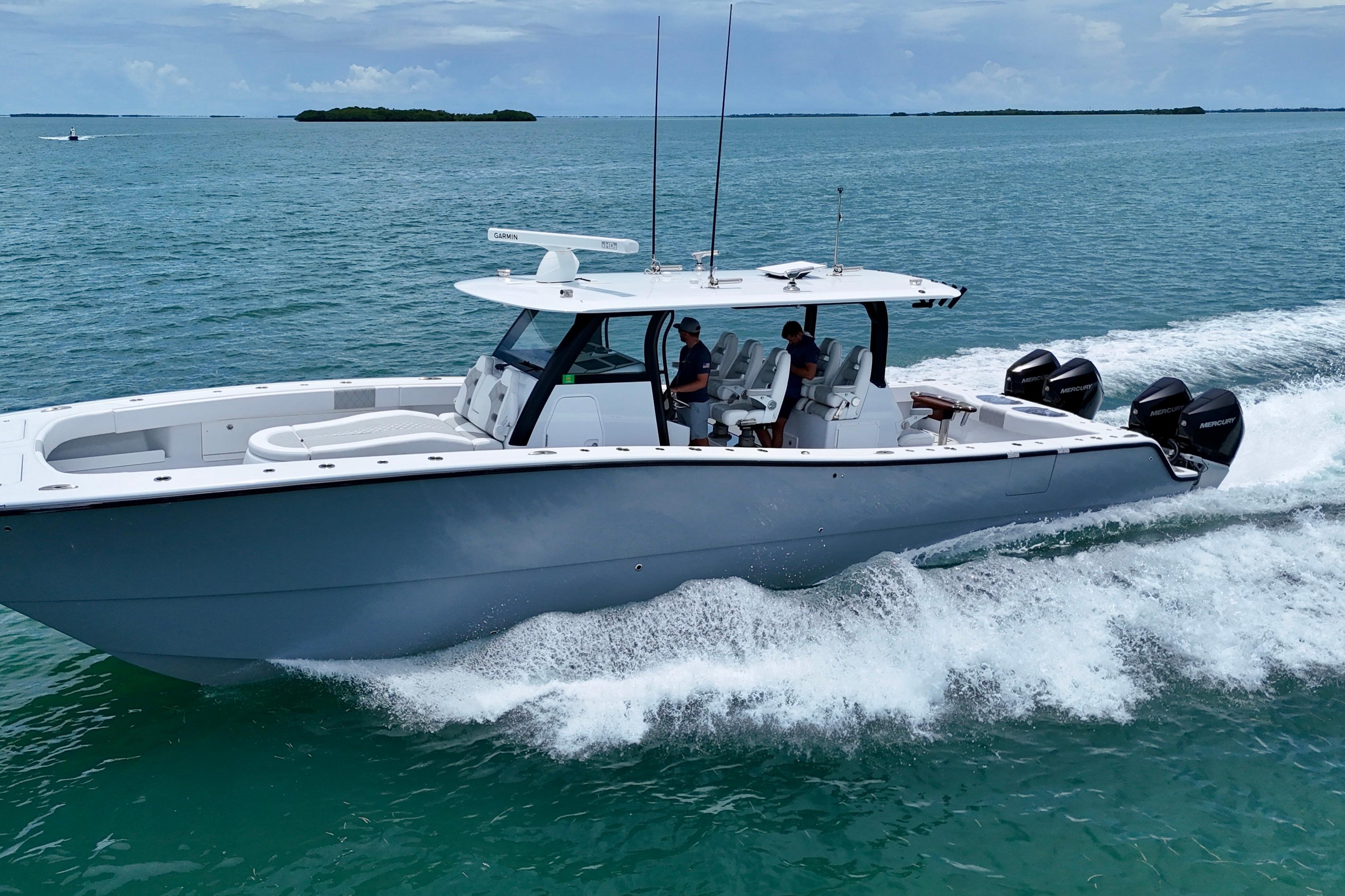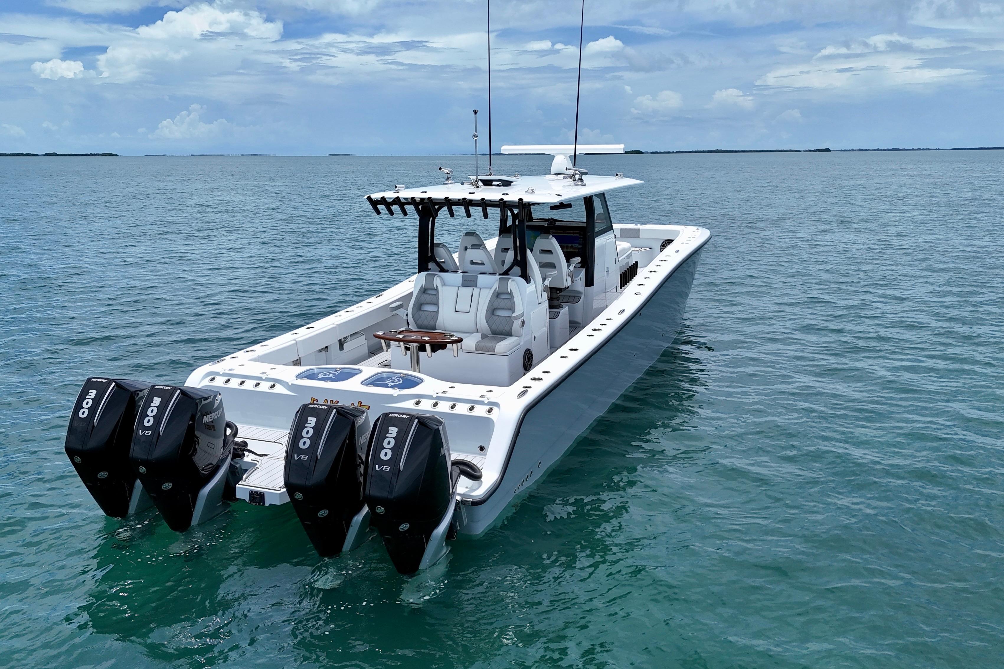 2023 Freeman 43“FLAK BAIT”Quad Mercury V8 300HP w/ 1,000hrs Electronics:Garmin Electronics Package(2) 24” GPS6’ Open Array RadarGarmin AutopilotGSD26 Sounder & GSD 25(2) iCom VHF RadioGarmin AIS 800FLIR Night VisionRear Facing Garmin 7”(6) Under Gunnel Reel PlugsOver The Top JL Audio Stereo SystemMulti Color LED Light PackageStarlinkErigger Antennas Other Options:Haze Gray HullBlack PowdercoatKingfish Rod HoldersMarsh Tacky 21’ OutriggersRear Facing SeatFloor Livewells PlumbedTeak Rocket LauncherElectric Marine HeadPort Side Dive DoorGemlux Shade SystemSHOX Seat PedestalsReverso Motor Flush System& Much MoreFactory Build Sheet Upon Request Key West, FLShown By Advanced Appointment Only