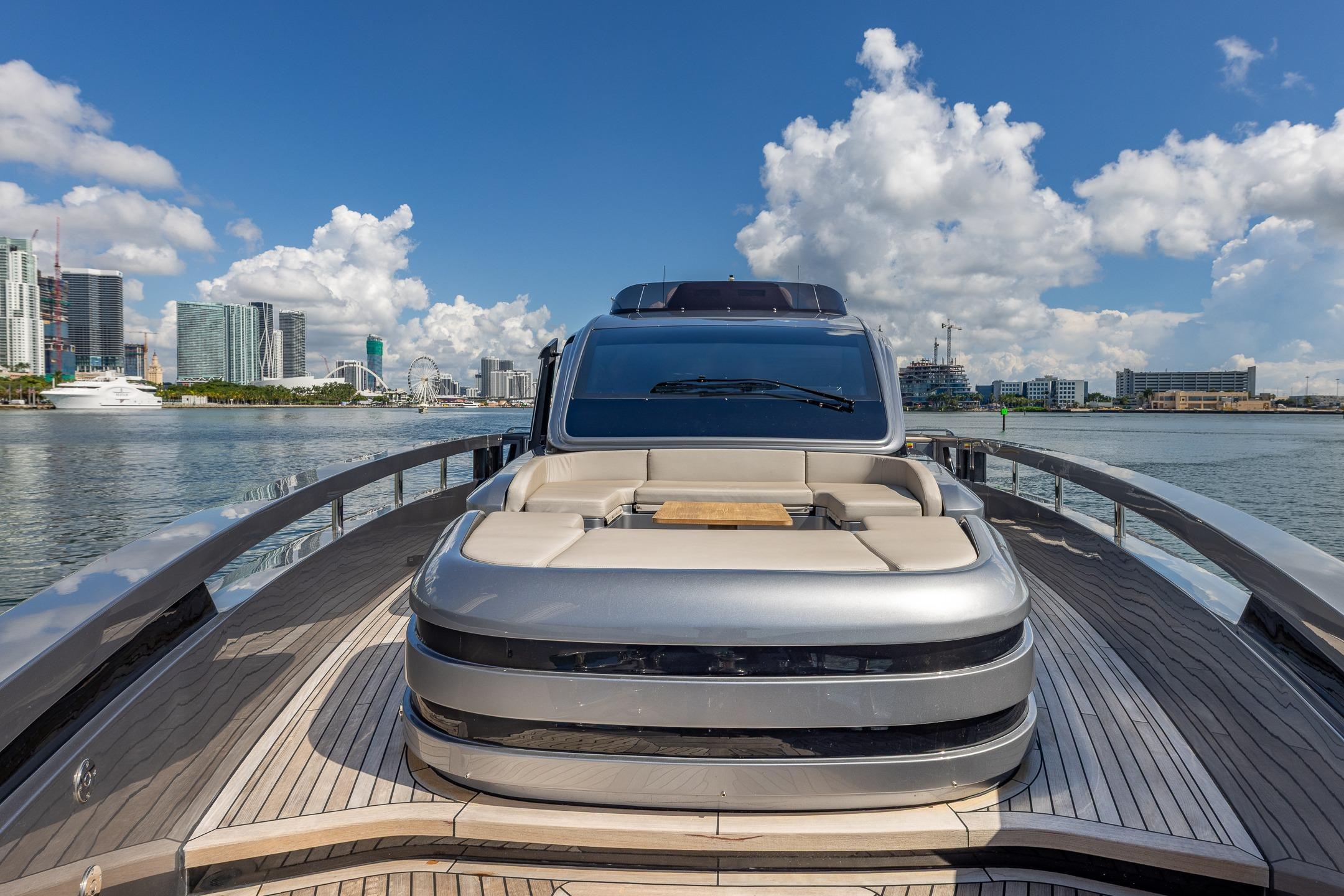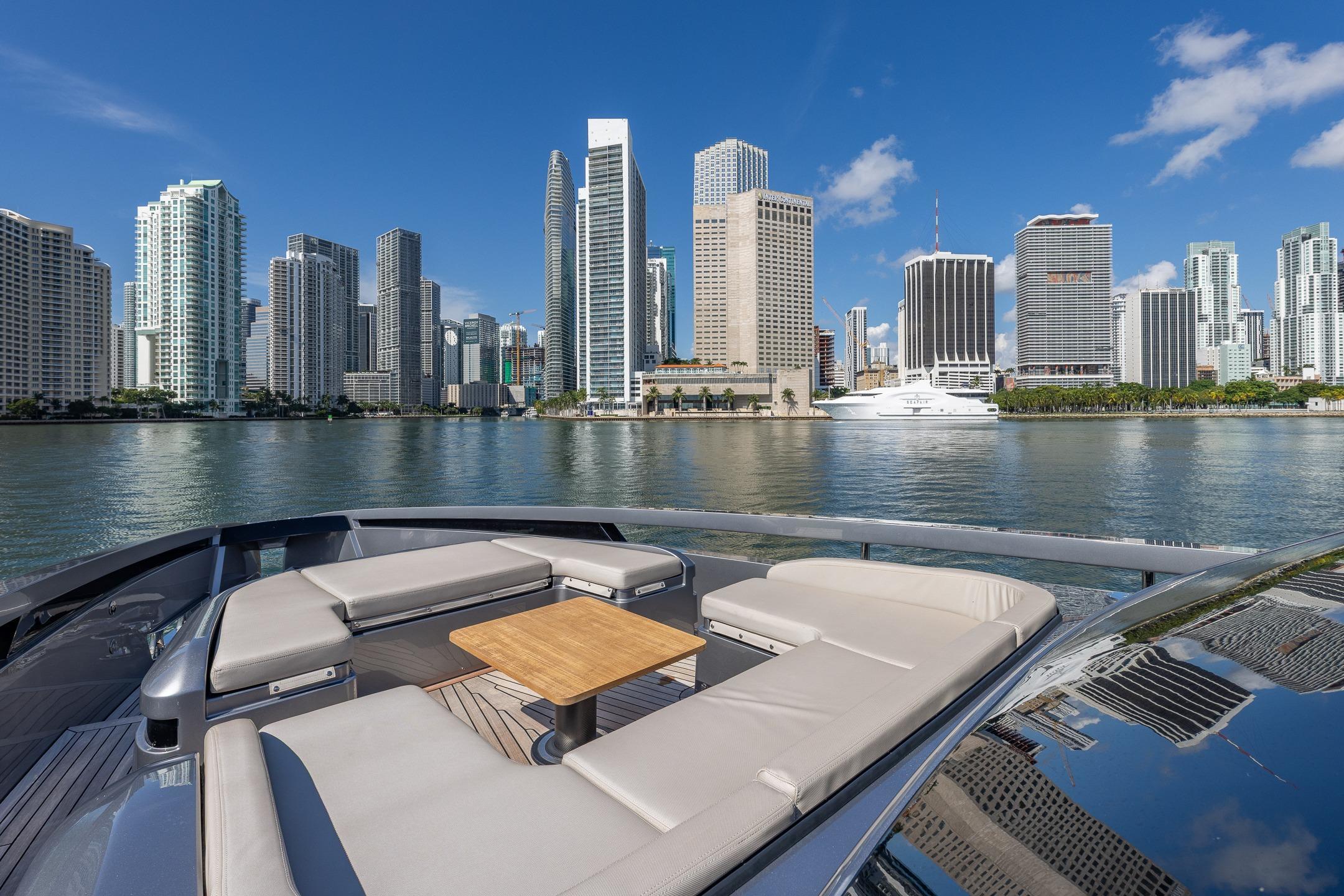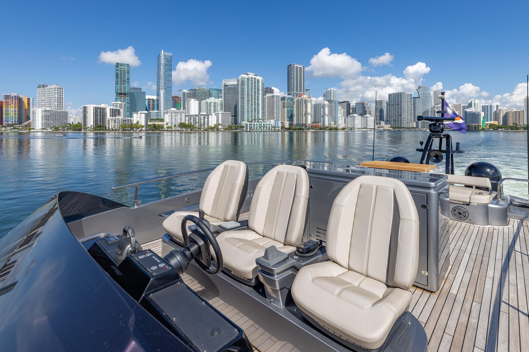 2025 Pershing GTX80 “CIAO”OVER $1M IN UPGRADES | 2-YEAR WARRANTY | ALL DUTIES PAIDSleek. Powerful. Sophisticated.Introducing “CIAO”, the groundbreaking 2025 Pershing GTX80 – a cutting-edge luxury motor yacht that redefines performance and style. As the first of its kind in the U.S., this exceptional vessel offers unmatched prestige, engineering excellence, and spacious comfort.Crafted through a visionary collaboration between the Ferretti Group’s Product Strategy Committee (led by Piero Ferrari) and the renowned Vallicelli Design Studio, the GTX80 is the perfect fusion of sporty performance and refined elegance.Experience the thrill of innovation at sea — available now without the wait.Features:• Glendenning• Side opening boarding gates (couple)• Underwater lights Lumishore under bathing platform (2)• Underwater lights Lumishore installed lengthwise on the two sides of the hull (2+2)• Curtains electric in VIP and guests cabins• Electric blackout curtains in VIP and guests cabins• Decoder Sat HD (5)• Sunshade awning with poles on aft deck• Control Station on the Flybridge• Additional boiler 15lt for master cabin w/bypass• Cover for windshield and side windows• Poltrona Frau• Ottoman in lower • Dinette Bar stools in salon (3)• Reclining Sunpad• Headrest• Additional manual stanchions for gangway• Cockpit table with electrical movement• Helm Controls electrically slide forward• Wine cellar in bar furniture• Seakeeper• Stabilizers• TV 49'' in salon• TV 65'' in master cabin• TV 55" in lower dinette• Mosaic in VIP cabin head • Mosaic in guest cabin head • Mosaic in master cabin head • External upholstery • Main deck salon rug • Preparation for housing jet skiStandard EquipmentSUNDECKFurniture unit with sink, fridge 85l and grillLED lightsMini hi-Fi with watertight loudspeakers (2)Sofa in GRP with backrest upholstered with vinyl fabric and lockersStainless steel and teak-laid stairs with stainless steel handrailSunpad in vinyl and storageANTENNAS AREAGPS antennaGRP radar arch (radar support, antennas, signals and horn)HornNavigation lightsVHF antenna (2)SUNDECK HELM STATIONBow thruster joystickElectronic levers for engine controlsEngines joystickHelm wheelIntegrated autopilot functionIntegrated system for alarms and electric data managementMultifunction touch display for navigation system (chartplotter, GPS, echosounder, monitoring system, engines)(1x16")Panels in carbon fiberPilot seatPlexiglass windshieldUSB socketVHF radioSIDE WALKWAYSCourtesy lights for stepsFresh water filling capLED lightingMidship fairlead in stainless steel with integrated cleats (2)Side Pershing silicon Logo (2)Stbd lateral gateMain DeckCOCKPIT/OUTSIDE AFT AREAAft locker door with electric movementAft steps in teakEmergency engine shut down remote controlExternal shower Fire extinguishing system and alarm activation remote control from portside furnitureFolding chairs (2)Fuel filling capGRP sofa with with seat and backrest in vinylLateral hydraulic terracesLow lightingMini hi-Fi with watertight loudspeakers (2)Shore power socketShore water inletSwim ladder, manualSwimming teak platform with hydraulic movementTeakTeak table with fixed supportTelescopic hydraulic hideaway gangway with (2) remote controlsACCESS TO THE ENGINE ROOMAccess through teak hatchwayAFT MOORING STATIONS (2)Capstan 1700W with foot control (2)Fairlead in stainless steel (2)Stainless steel mooring cleat (4)OUTSIDE FORWARD DINETTEGRP sofas with seats and backrest upholstered in white vinylLife rafts lockers (2)Lockers (2)Led lightingMini hi-Fi with watertight loudspeakers (2)BOW MOORING STATIONAccess to bow locker with hatch and closureChain basketChain wash down with sea waterFairlead (2)Fire hydrant outlet with sea waterGalvanized anchor with joint (1 x 50kg)Galvanized chain 100m 12mmMooring LED lightsStainless steel mooring bow anchor rollerStainless steel mooring cleat at bow (2)Windlass 2700W with waterproof control padGALLEYCeiling spotlightCeramic glass hob with 4 burnerDishwasher for 12 peopleElectric ovenExtractorFaucetFreezer 106lFridge 308lGalley top in acrylic stoneIcemakerParquet floorRubbish binShelf with acrylic stone and lacquered supportStainless steel washbasinStools (2)Under top unit furniture with lacquered doors, internal shelves and drawersSALONAft door with sliding and rotating panes in black painted aluminum and crystal with electrical up &down windowAudio-video systemApple TVCoastal internet system (GPRS/UMTS)Hi-fi surround: "5+1" system sintoamplifierSingle remote control for the audio-video system (I-Pad Mini)SMART TV 43"Ceiling LED lightsCeramic set for 12 peopleDigitally controlled A/C systemElectric fabric roll curtains for side windowsFolding dining table for 8 peopleGlasses set for 12 peopleLacquered ceilingLacquered furnitureLacquered wallsLower deck stair descent covered with leather panels and parquet stepsManual aluminum Venetian blinds for sliding aft doorParquet floorSide windows in monolithic / stratified tempered glassSofas in leather (2)Soft touch switch platesStainless steel cutlery set for 12 peopleHELM STATIONBow thruster joystickCarbon fiber steering wheel covered in eco-leatherCeiling spot LED lightsCompassCo-pilot seat covered with Frau leather with double electric controlDigitally controlled A/C systemEcho box in-hull transducerElectric pantograph stbd side doorElectronic levers for engine controlsEngine room remote cameras on helm stationEngines joystickIntegrated autopilot functionIntegrated system for alarms and electric data managementEngines joystickIntegrated autopilot functionIntegrated system for alarms and electric data managementLacquered dashboard and carbon look panelsLower deck stair descent covered with leather panels and parquet stepsMultifunction touch display for navigation system (radar, chartplotter, GPS, echosounder, monitoring system, engines data) (3x16") OBD (On Board Diagnostic) socketParquet floorPilot seat