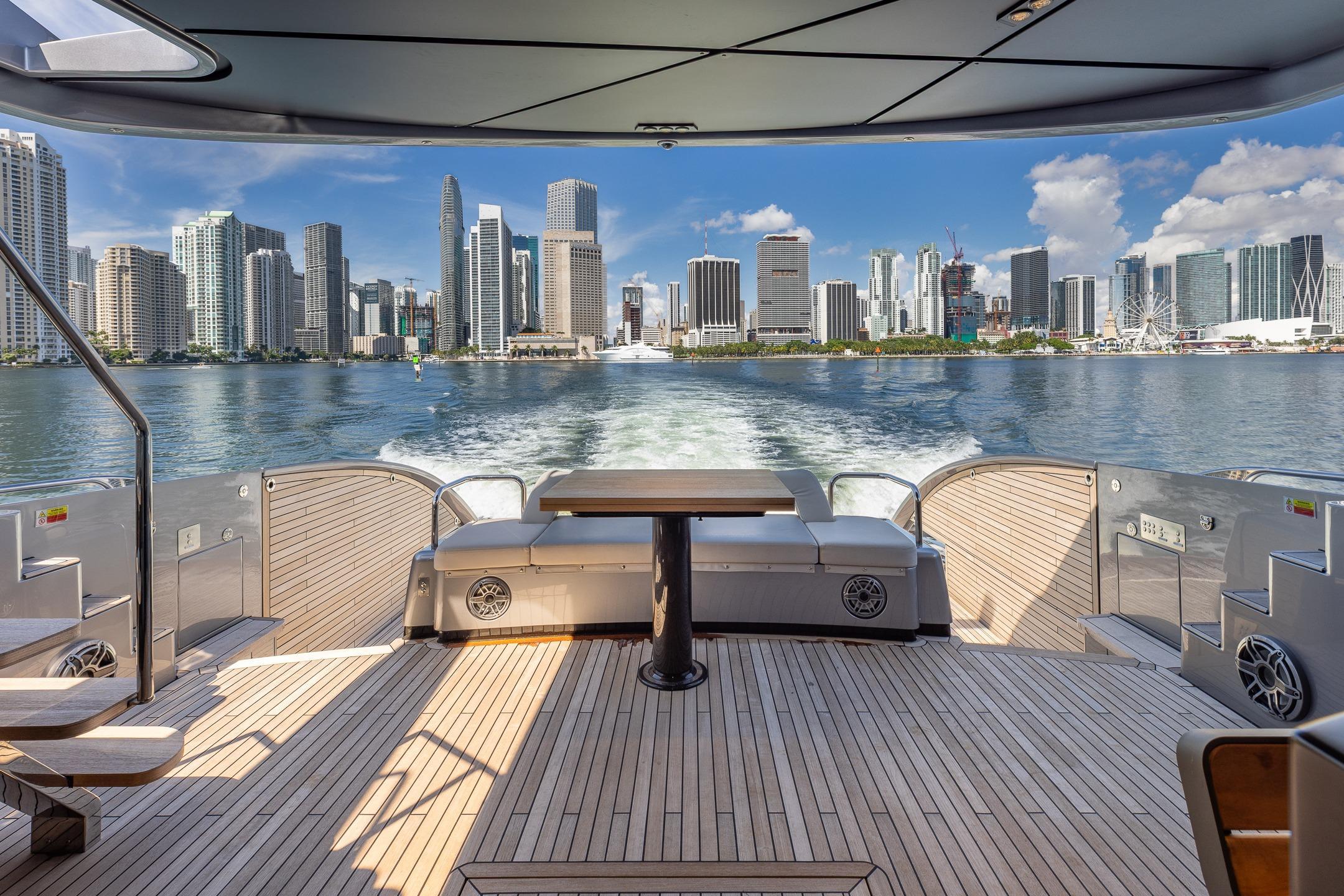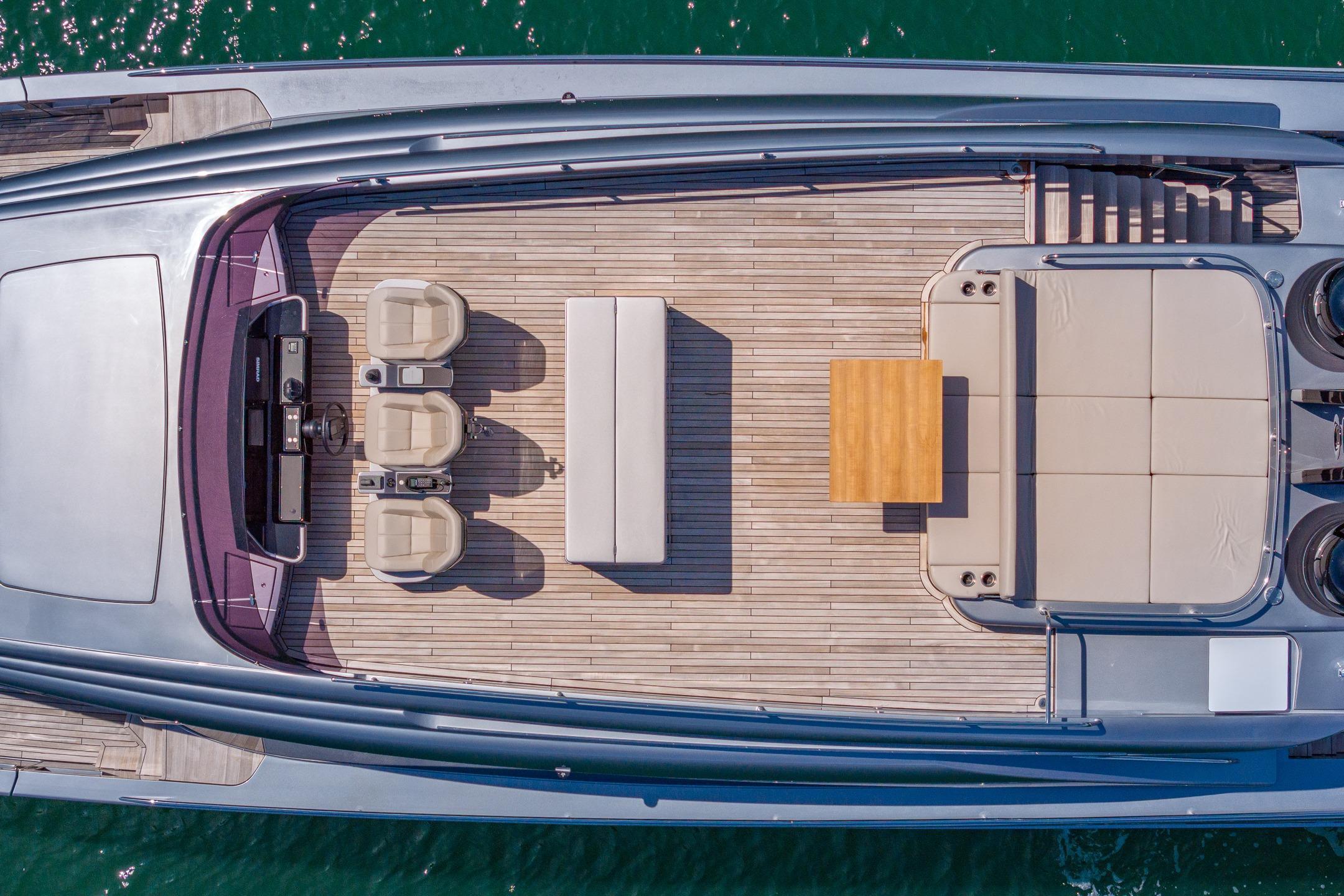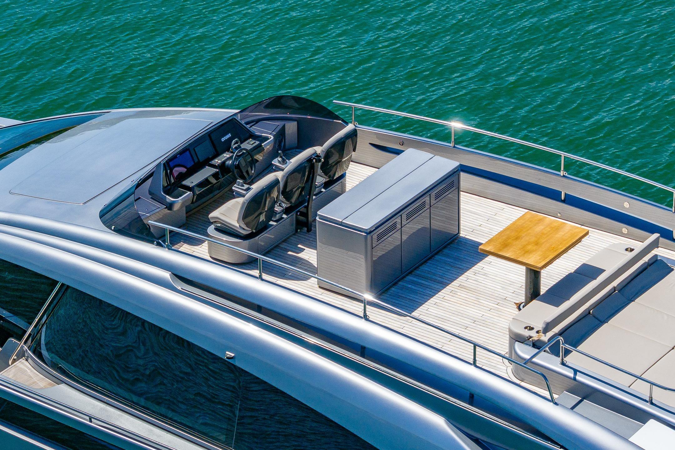 2025 Pershing GTX80 “CIAO”OVER $1M IN UPGRADES | 2-YEAR WARRANTY | ALL DUTIES PAIDSleek. Powerful. Sophisticated.Introducing “CIAO”, the groundbreaking 2025 Pershing GTX80 – a cutting-edge luxury motor yacht that redefines performance and style. As the first of its kind in the U.S., this exceptional vessel offers unmatched prestige, engineering excellence, and spacious comfort.Crafted through a visionary collaboration between the Ferretti Group’s Product Strategy Committee (led by Piero Ferrari) and the renowned Vallicelli Design Studio, the GTX80 is the perfect fusion of sporty performance and refined elegance.Experience the thrill of innovation at sea — available now without the wait.Features:• Glendenning• Side opening boarding gates (couple)• Underwater lights Lumishore under bathing platform (2)• Underwater lights Lumishore installed lengthwise on the two sides of the hull (2+2)• Curtains electric in VIP and guests cabins• Electric blackout curtains in VIP and guests cabins• Decoder Sat HD (5)• Sunshade awning with poles on aft deck• Control Station on the Flybridge• Additional boiler 15lt for master cabin w/bypass• Cover for windshield and side windows• Poltrona Frau• Ottoman in lower • Dinette Bar stools in salon (3)• Reclining Sunpad• Headrest• Additional manual stanchions for gangway• Cockpit table with electrical movement• Helm Controls electrically slide forward• Wine cellar in bar furniture• Seakeeper• Stabilizers• TV 49'' in salon• TV 65'' in master cabin• TV 55" in lower dinette• Mosaic in VIP cabin head • Mosaic in guest cabin head • Mosaic in master cabin head • External upholstery • Main deck salon rug • Preparation for housing jet skiStandard EquipmentSUNDECKFurniture unit with sink, fridge 85l and grillLED lightsMini hi-Fi with watertight loudspeakers (2)Sofa in GRP with backrest upholstered with vinyl fabric and lockersStainless steel and teak-laid stairs with stainless steel handrailSunpad in vinyl and storageANTENNAS AREAGPS antennaGRP radar arch (radar support, antennas, signals and horn)HornNavigation lightsVHF antenna (2)SUNDECK HELM STATIONBow thruster joystickElectronic levers for engine controlsEngines joystickHelm wheelIntegrated autopilot functionIntegrated system for alarms and electric data managementMultifunction touch display for navigation system (chartplotter, GPS, echosounder, monitoring system, engines)(1x16")Panels in carbon fiberPilot seatPlexiglass windshieldUSB socketVHF radioSIDE WALKWAYSCourtesy lights for stepsFresh water filling capLED lightingMidship fairlead in stainless steel with integrated cleats (2)Side Pershing silicon Logo (2)Stbd lateral gateMain DeckCOCKPIT/OUTSIDE AFT AREAAft locker door with electric movementAft steps in teakEmergency engine shut down remote controlExternal shower Fire extinguishing system and alarm activation remote control from portside furnitureFolding chairs (2)Fuel filling capGRP sofa with with seat and backrest in vinylLateral hydraulic terracesLow lightingMini hi-Fi with watertight loudspeakers (2)Shore power socketShore water inletSwim ladder, manualSwimming teak platform with hydraulic movementTeakTeak table with fixed supportTelescopic hydraulic hideaway gangway with (2) remote controlsACCESS TO THE ENGINE ROOMAccess through teak hatchwayAFT MOORING STATIONS (2)Capstan 1700W with foot control (2)Fairlead in stainless steel (2)Stainless steel mooring cleat (4)OUTSIDE FORWARD DINETTEGRP sofas with seats and backrest upholstered in white vinylLife rafts lockers (2)Lockers (2)Led lightingMini hi-Fi with watertight loudspeakers (2)BOW MOORING STATIONAccess to bow locker with hatch and closureChain basketChain wash down with sea waterFairlead (2)Fire hydrant outlet with sea waterGalvanized anchor with joint (1 x 50kg)Galvanized chain 100m 12mmMooring LED lightsStainless steel mooring bow anchor rollerStainless steel mooring cleat at bow (2)Windlass 2700W with waterproof control padGALLEYCeiling spotlightCeramic glass hob with 4 burnerDishwasher for 12 peopleElectric ovenExtractorFaucetFreezer 106lFridge 308lGalley top in acrylic stoneIcemakerParquet floorRubbish binShelf with acrylic stone and lacquered supportStainless steel washbasinStools (2)Under top unit furniture with lacquered doors, internal shelves and drawersSALONAft door with sliding and rotating panes in black painted aluminum and crystal with electrical up &down windowAudio-video systemApple TVCoastal internet system (GPRS/UMTS)Hi-fi surround: "5+1" system sintoamplifierSingle remote control for the audio-video system (I-Pad Mini)SMART TV 43"Ceiling LED lightsCeramic set for 12 peopleDigitally controlled A/C systemElectric fabric roll curtains for side windowsFolding dining table for 8 peopleGlasses set for 12 peopleLacquered ceilingLacquered furnitureLacquered wallsLower deck stair descent covered with leather panels and parquet stepsManual aluminum Venetian blinds for sliding aft doorParquet floorSide windows in monolithic / stratified tempered glassSofas in leather (2)Soft touch switch platesStainless steel cutlery set for 12 peopleHELM STATIONBow thruster joystickCarbon fiber steering wheel covered in eco-leatherCeiling spot LED lightsCompassCo-pilot seat covered with Frau leather with double electric controlDigitally controlled A/C systemEcho box in-hull transducerElectric pantograph stbd side doorElectronic levers for engine controlsEngine room remote cameras on helm stationEngines joystickIntegrated autopilot functionIntegrated system for alarms and electric data managementEngines joystickIntegrated autopilot functionIntegrated system for alarms and electric data managementLacquered dashboard and carbon look panelsLower deck stair descent covered with leather panels and parquet stepsMultifunction touch display for navigation system (radar, chartplotter, GPS, echosounder, monitoring system, engines data) (3x16") OBD (On Board Diagnostic) socketParquet floorPilot seat