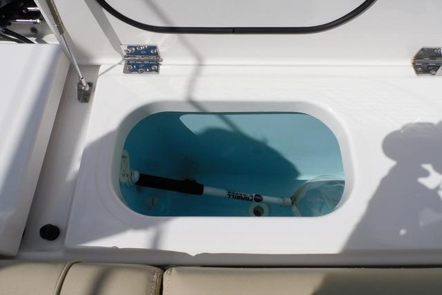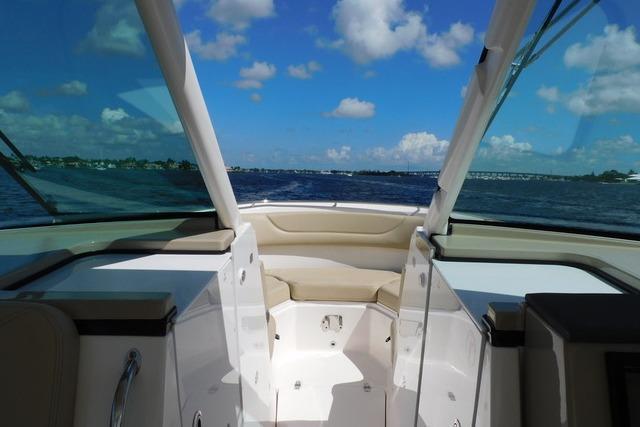 - Port and starboard forward coaming boxes with four (4) drink holders, grab rails, courtesy lights, storage keeper, port stereo remote, and speakers