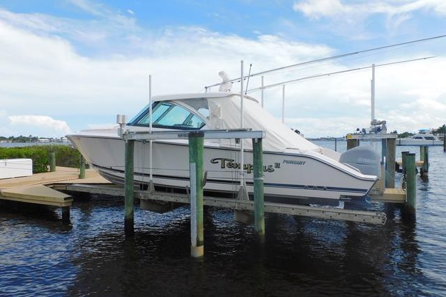 Great opportunity to own a very well-maintained and popular 32’ Pursuit. Original owner. The boat has been kept on a lift its entire life, with no bottom paint. She gets washed professionally every two weeks and waxed every three months. She has several canvas covers that are kept on all the time. This boat looks, runs, and smells brand new.