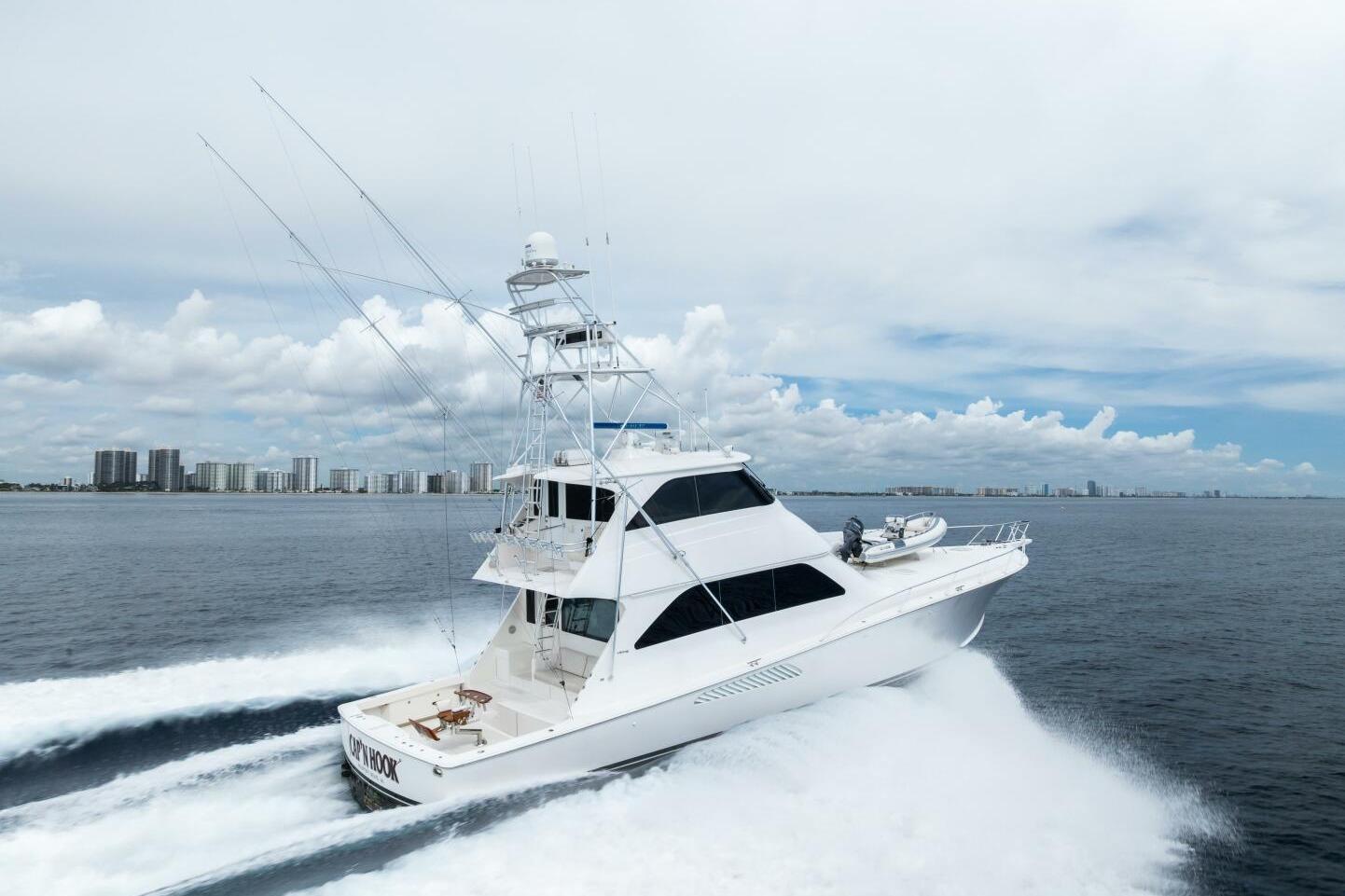 2006 Viking 68 Enclosed Bridge "Cap'n Hook"The 68’ has earned its reputation as a true workhorse in the tournament fishing circuit. Boasting an expansive 186-square-foot cockpit, it offers ample space to battle and land trophy catches. Inside, the four-stateroom, four-head layout provides luxurious accommodations perfectly suited for family and guests. Below deck, the highly sought-after stand-up engine room ensures easy access for maintenance and service. Updated Electronic Package23' Novourania Tender Hard Bottom Inflatable w/ Maquipt DavitAdditional Factory Fuel TankHydraulic System for Bow Thuster, Davit & Outriggers