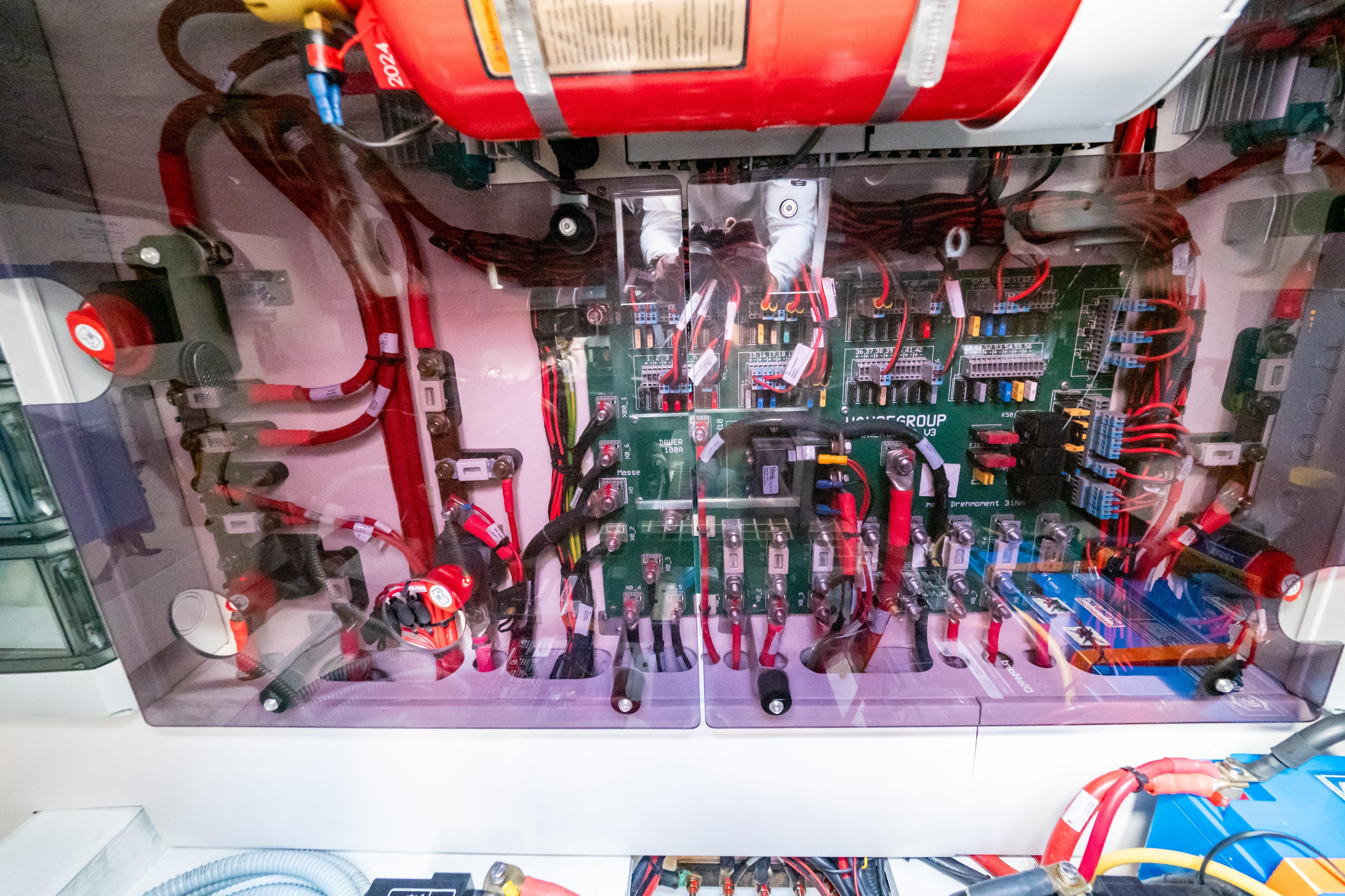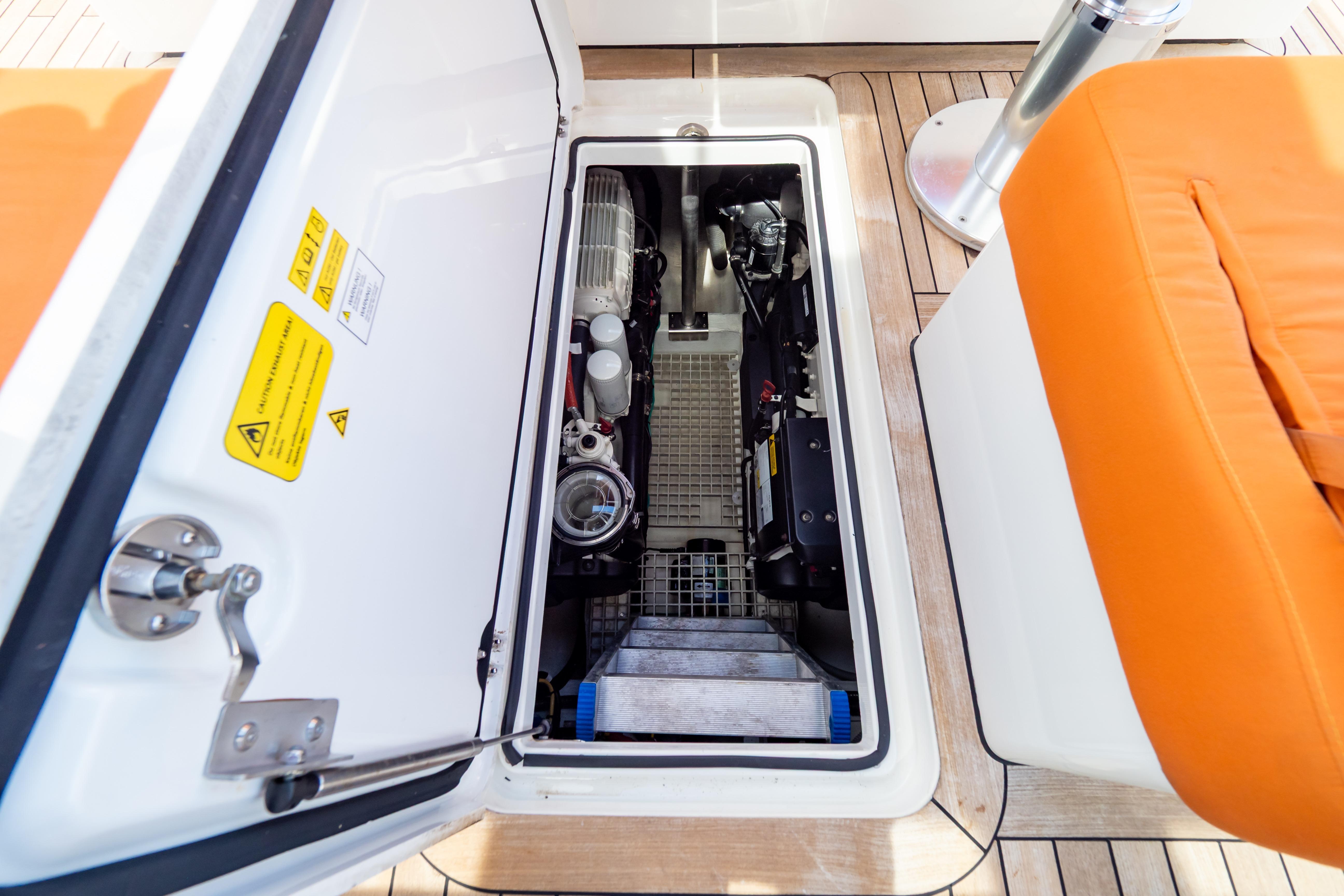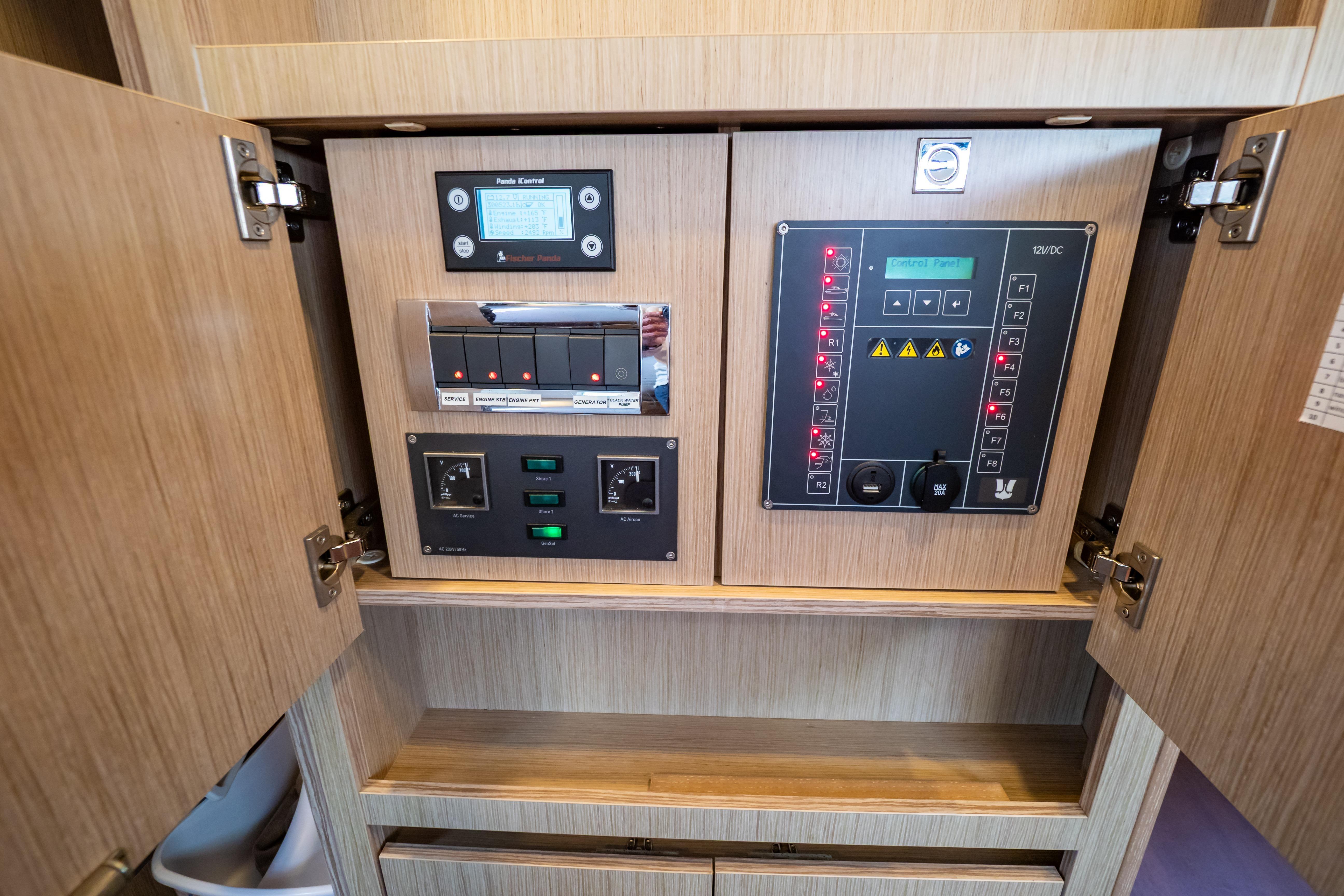Engine room, sound insulated, fans, fire extinguisher system, automatic and manual, Batteries-Engines: 2 x 90 Ah / 12 V, Battery charger 50 A. (for engine and service batteries).