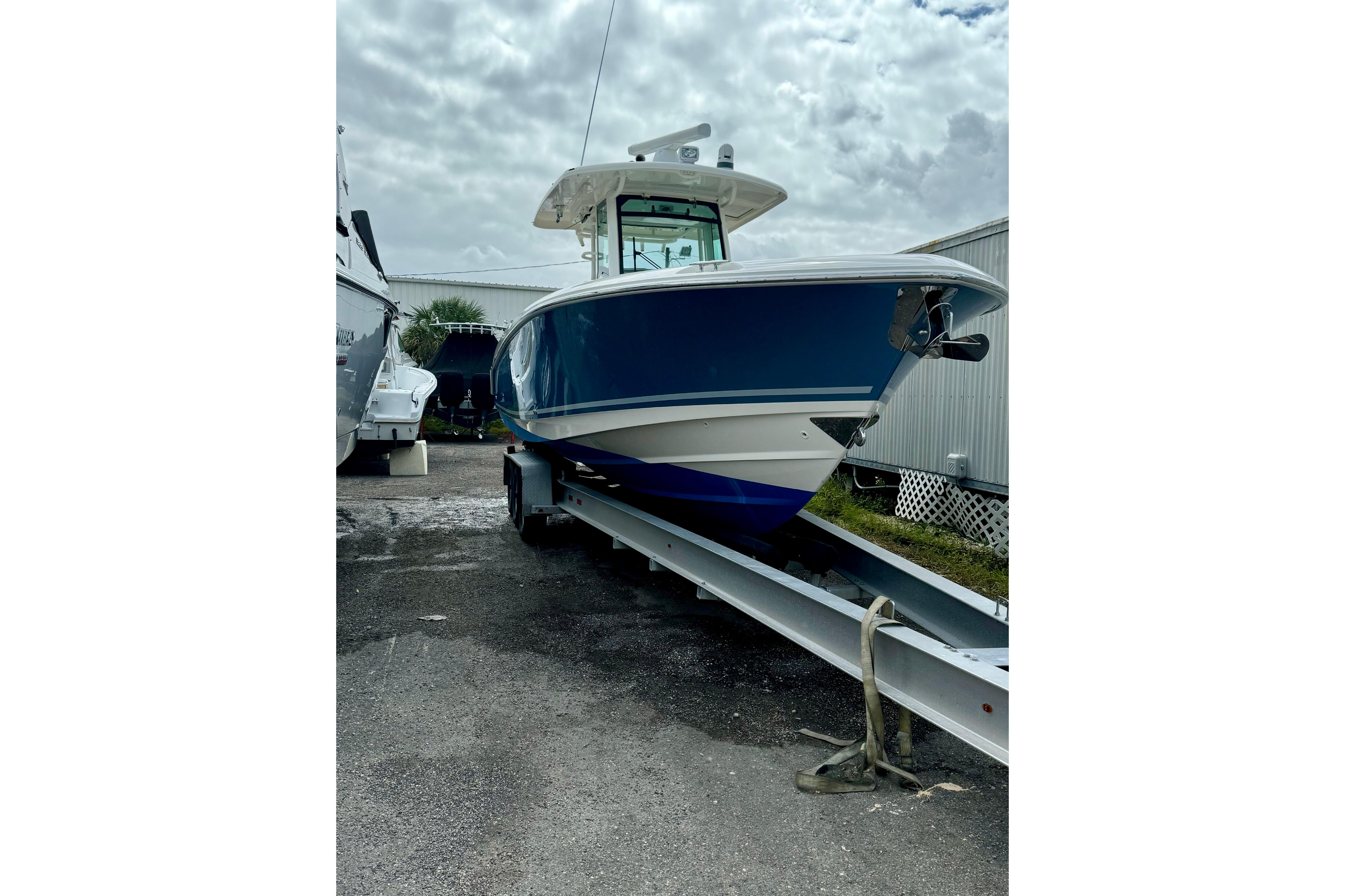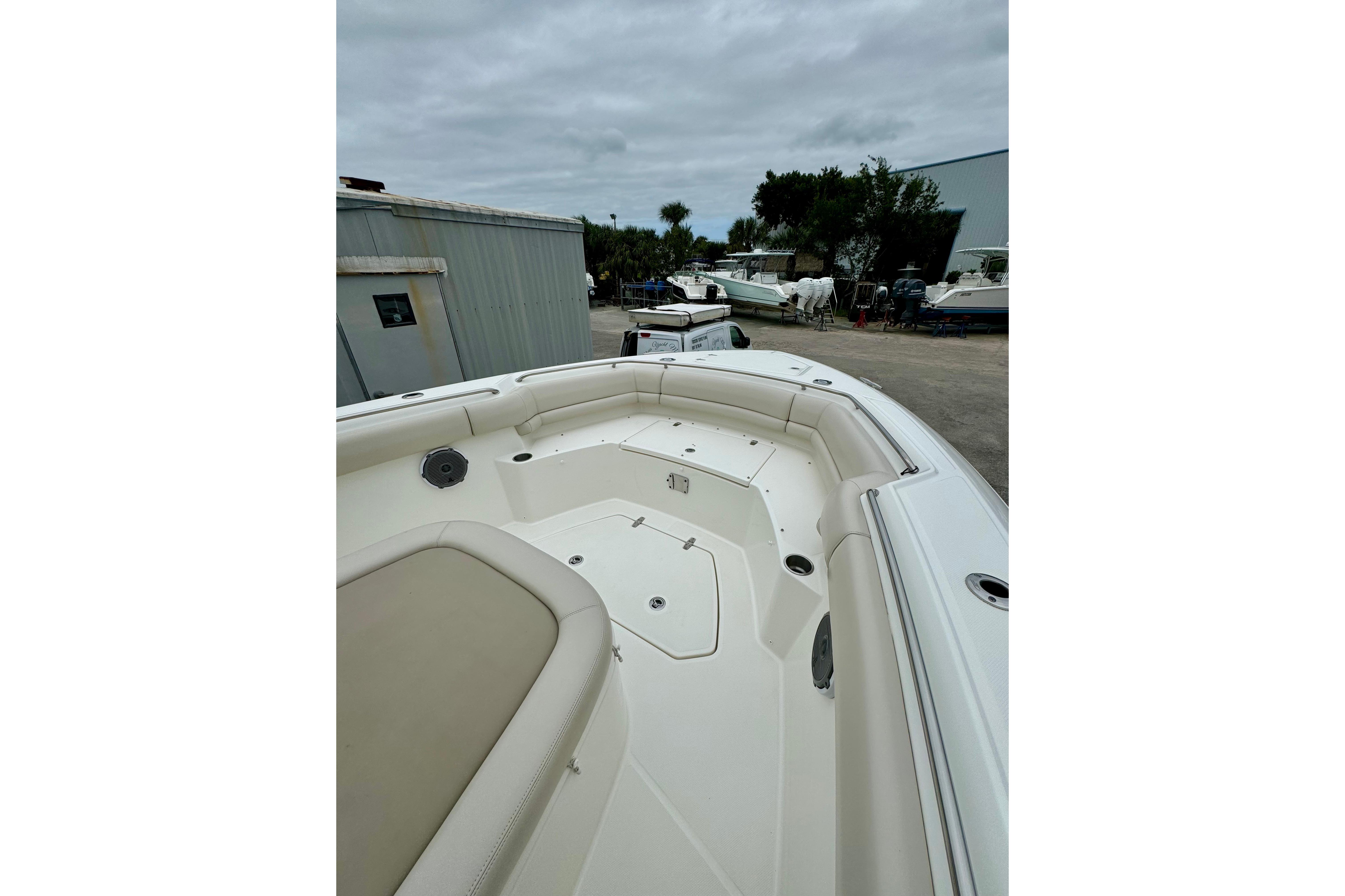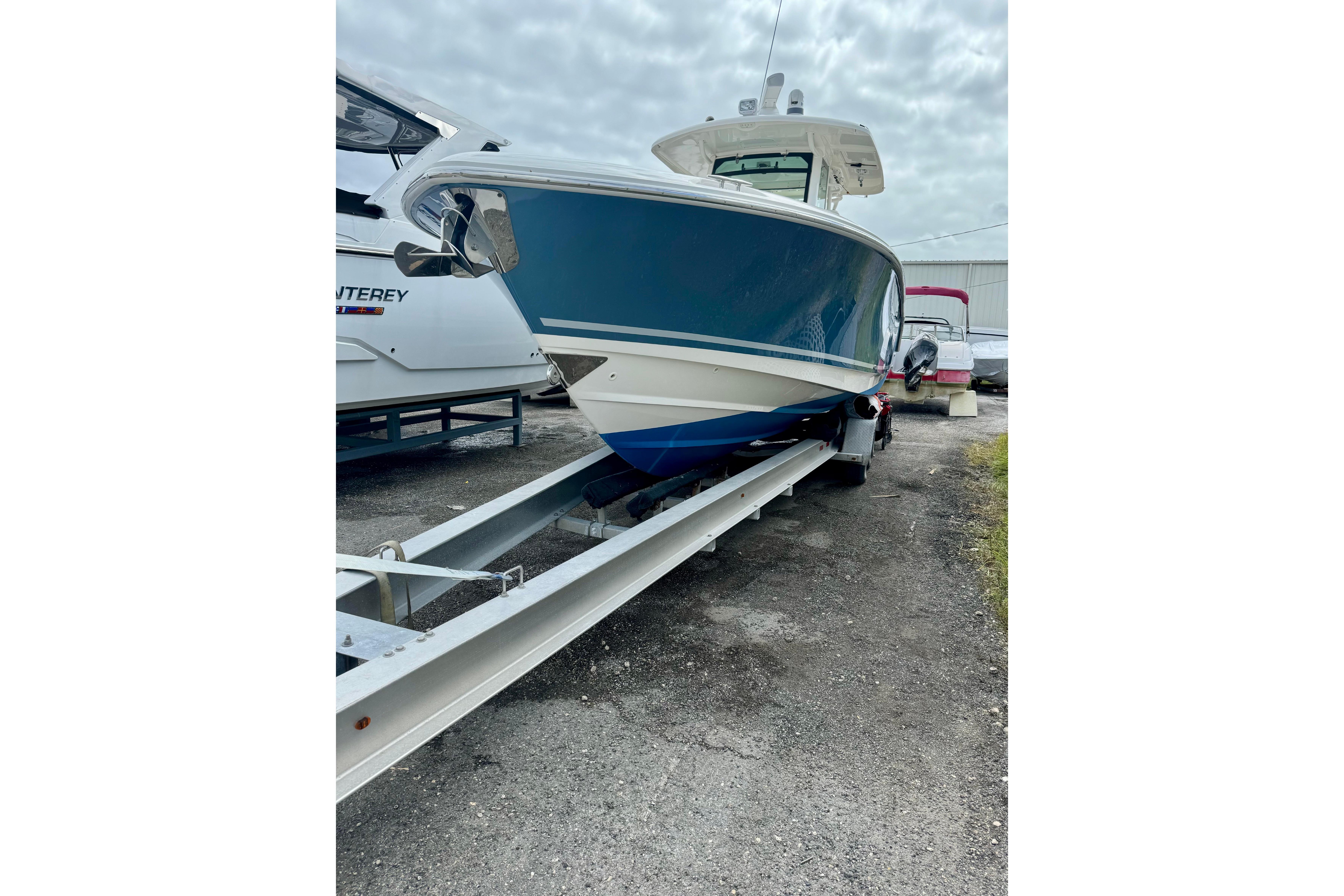 - Freshwater system (40 gallons) with sink in console, transom shower and anchor washdown