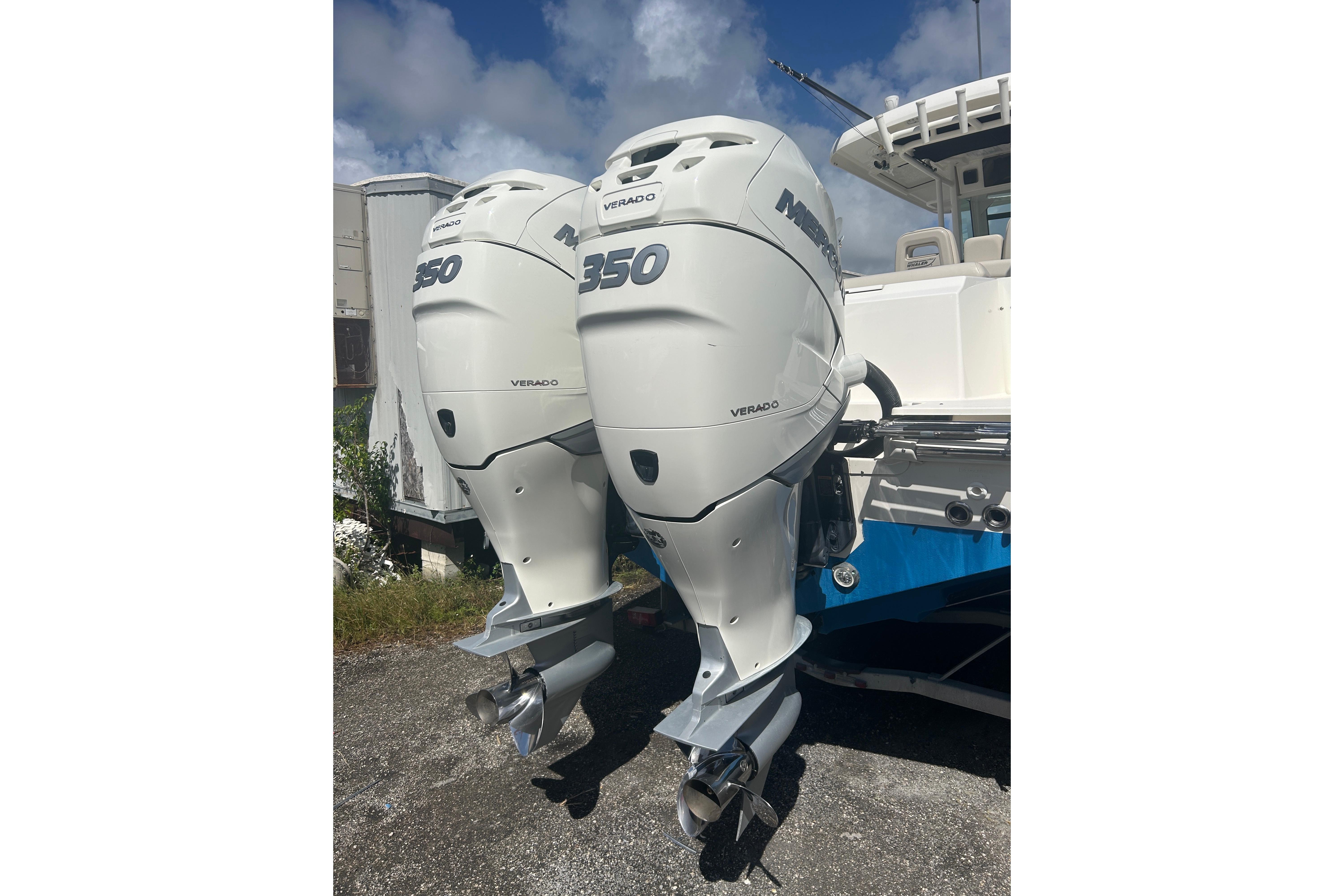 - 300 CXXL L6 DTS Dual Mercury Verado FourStroke engines with hydraulic power steering (91 octane fuel recommended)