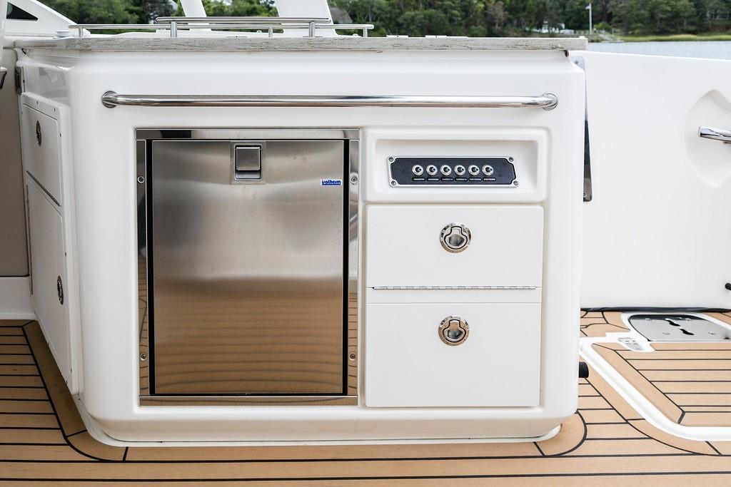 - Double convertible port lounge seat with storage (not available with Deluxe Prep Center with Livewell)