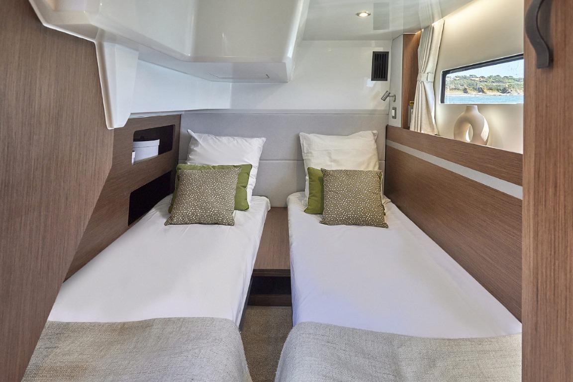 Available in Store: Fort Lauderdale - HIN: BEYHH045F526 Beneteau Antares 12Triple Mercury 300sThe Beneteau Antares 12 is a 40-foot flagship cruiser that combines elegance, performance, and luxury for an unparalleled experience on the water. Designed for extended cruising or relaxing day trips, the Antares 12 offers exceptional comfort, a sleek profile, and the latest in modern boating technology. Its powerful hull ensures excellent seakeeping and stability, making it a perfect companion for coastal or offshore adventures.Powered by triple Mercury 300s, the Antares 12 delivers impressive performance and a smooth ride even in challenging conditions. With a fuel capacity of 2 x 106 gallons (2 x 400 liters), it provides an extended cruising range, while features like an optional bow thruster and joystick control make it remarkably easy to handle. The cockpit is spacious and versatile, featuring modular seating, a dining area, and a swim platform for easy access to the water.The interior of the Antares 12 is designed to maximize space and light, offering a luxurious salon with panoramic windows and a fully equipped galley. Below deck, it features two private cabins with double berths, a convertible salon berth, and two bathrooms with separate showers, comfortably accommodating up to six people overnight. High-quality materials and meticulous craftsmanship create a warm and inviting atmosphere, ideal for relaxing after a day on the water.With a water tank capacity of 79 gallons (300 liters) and numerous customizable features, including air conditioning, a generator, and advanced navigation systems, the Beneteau Antares 12 is a true floating haven. Whether hosting friends, enjoying a family trip, or exploring new horizons, this cruiser offers the perfect blend of luxury, functionality, and performance for unforgettable experiences at sea.
