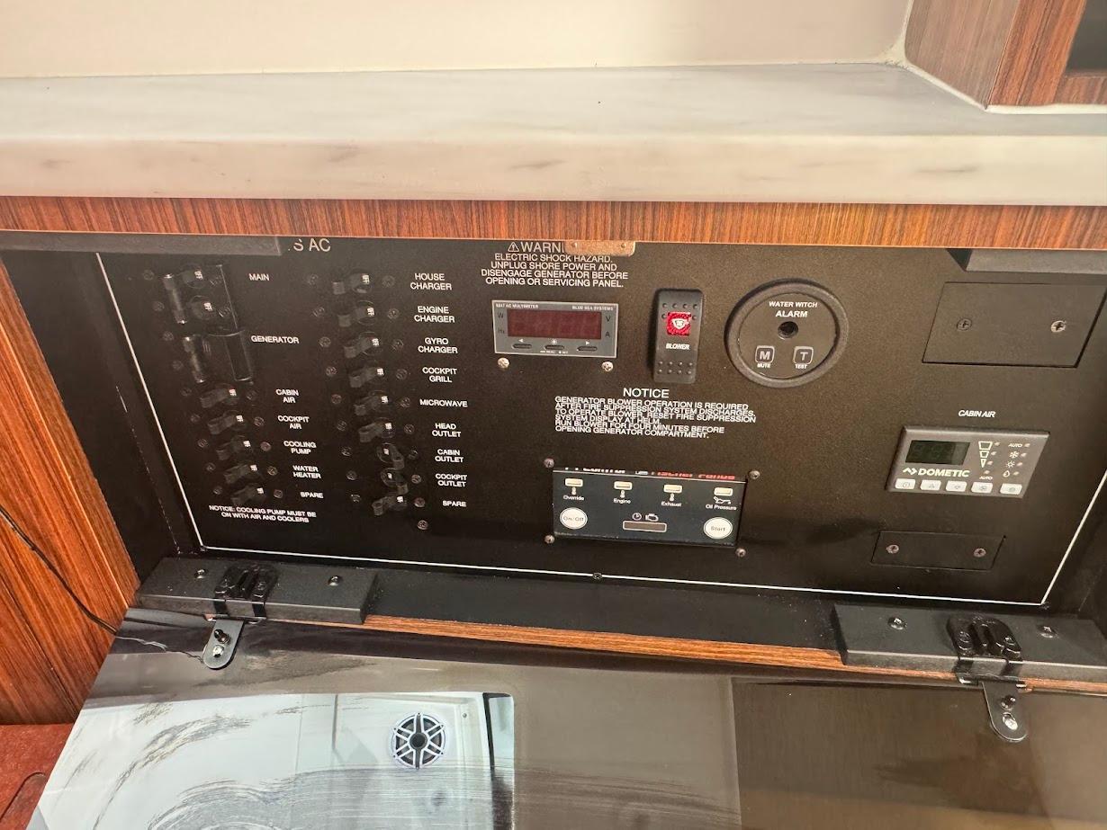 - Five Battery System: Engines (2), House - AGM (1), Electronics - AGM (1), and Bow Thruster - AGM (1)