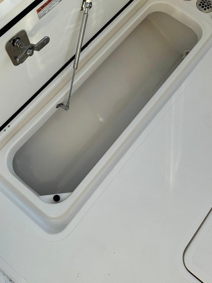 - Fish Boxes, In-Floor (port & starboard, 27 gallons each) with Molded Foam Insulation and Independent Diaphragm Discharge Pumps