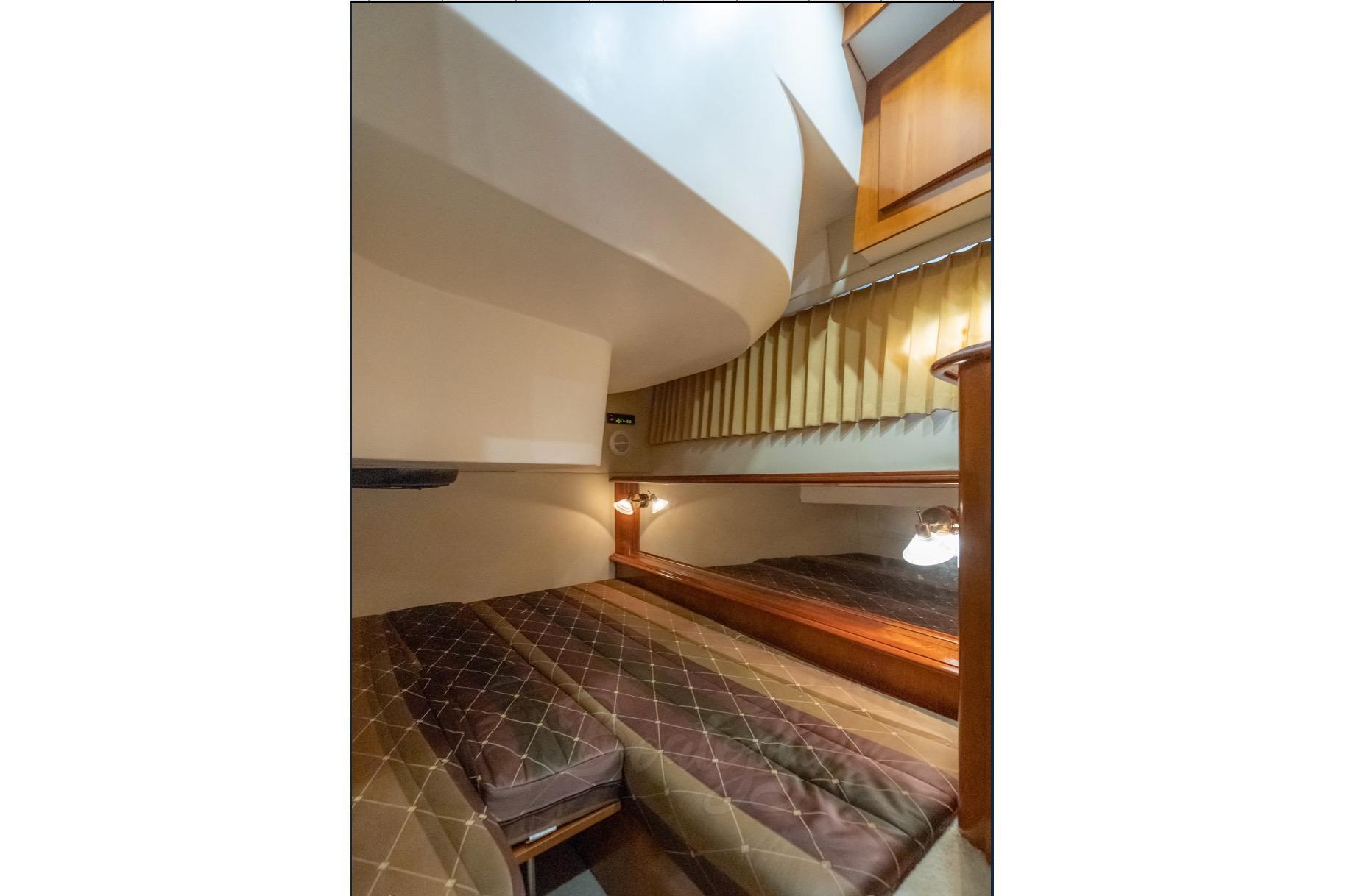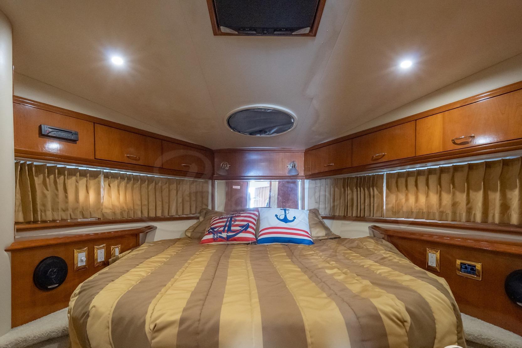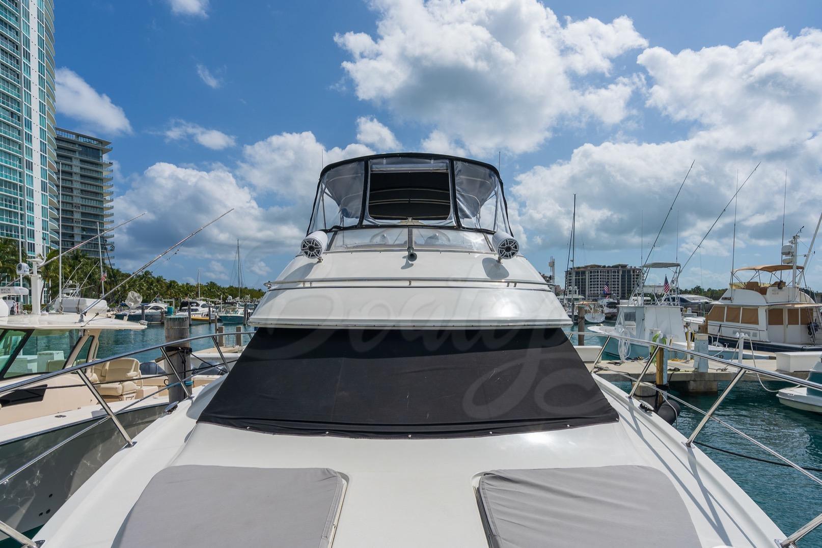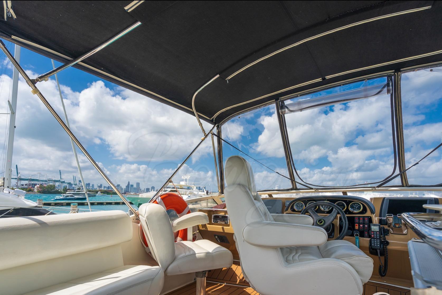 EquipmentPower & Systems • Twin Volvo Penta 8.1 Gi Engines | ~2,300 hrs • Kohler 10 kW Generator w/ Sound Shield | ~1,200 hrs (verify) • 50A Shore Power Service | 50A Cord + Adapters • Multi-Bank Battery Charger • Bow Thruster • Trim TabsHelm & Navigation • Flybridge Helm w/ Full Instrumentation • Raymarine RL70 Radar/Chartplotter • Raymarine Autopilot • Raymarine ST-60 Depth Finder • VHF Marine Radio • Compass | Spotlight | Windshield WipersTankage & Capacities • Fuel: 400 gal (twin saddle tanks) • Fresh Water: 95 gal • Holding Tank: 35–50 gal w/ Pumpout • 3-Zone Marine Air Conditioning & Heat • Hot Water Heater (11 gal) • VacuFlush Head | Tank MonitorDeck & Exterior • Integrated Swim Platform w/ Ladder & Transom Door • Windlass w/ Anchor, Rode & Chain • Foredeck Sun Pads • Molded Stairways Port & Starboard to Flybridge • Stainless Steel Rails & Cleats • Cockpit w/ Lazarette & Storage Lockers • Full Flybridge Enclosure (isinglass/strataglass panels) • Deluxe XL Flybridge Seating w/ Double Helm Seat & Wrap-Around Lounge • Flybridge Wet Bar w/ Refrigerator • Bridge Stereo & SpeakersInterior & Galley • Expansive Full-Beam Salon w/ Sofa & Large Windows • Raised Dinette (seats 4–6) • Entertainment Center (TV, Stereo, DVD – upgraded flat screen possible) • Galley w/ Corian Counters | Double Sink | Convection Microwave | 3-Burner Electric Cooktop | Full-Size Refrigerator/Freezer • Master Stateroom Forward w/ Centerline Queen Berth | Hanging Lockers | Drawer Storage • Guest Stateroom w/ Twin Berths (convertible to Queen) • Large Head w/ Separate Stall Shower • Central Vacuum System • Premium Cabinetry & CarpetingUtility & Comfort • Transom Shower (Hot/Cold) • Fresh & Raw Water Washdowns • Multiple Storage Lockers (under-seat & under-floor) • Full Wrap-Around Coaming Bolsters • Generator-Powered A/C for Salon & Staterooms