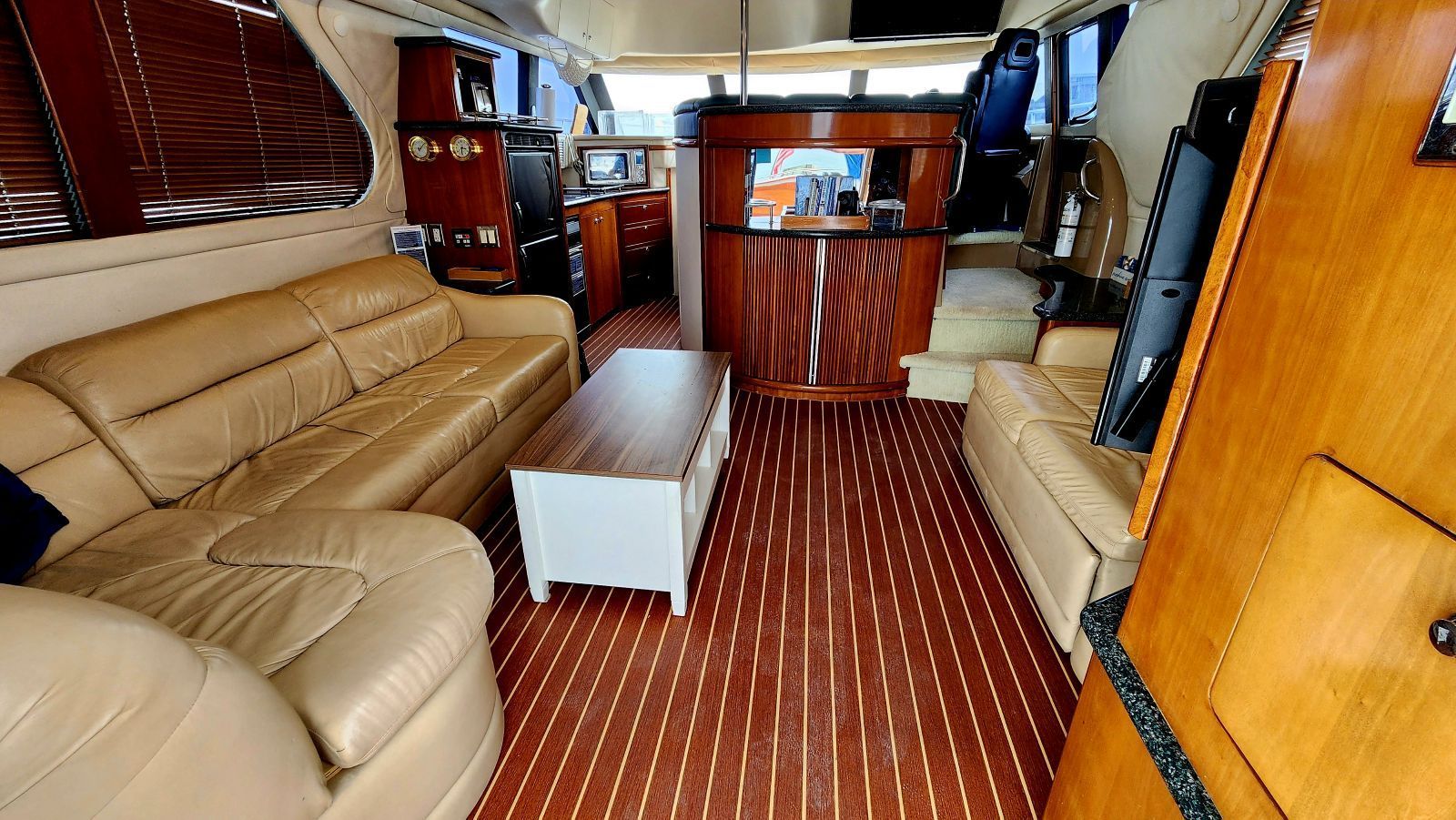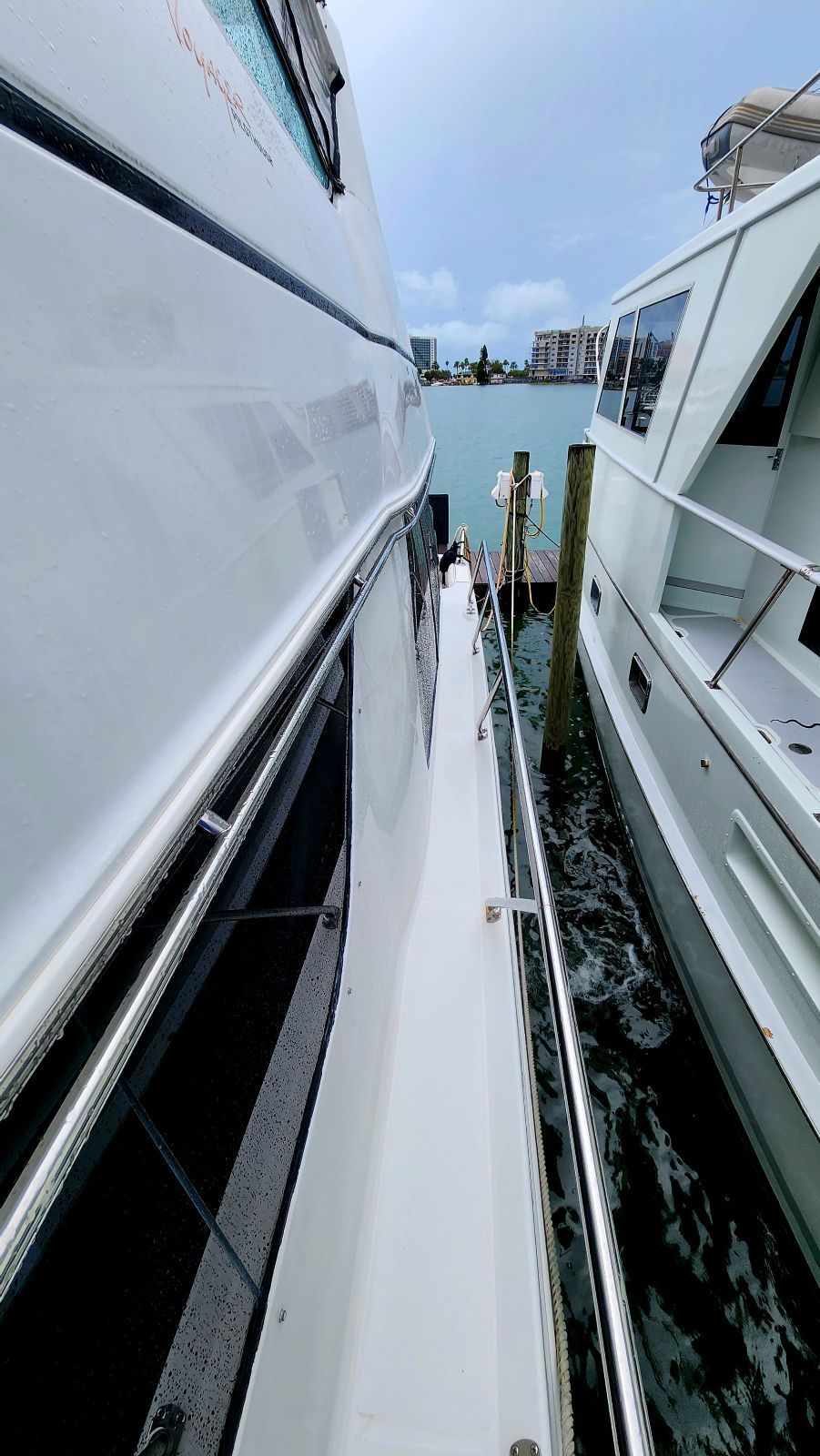 Boarding Still Waters is effortless from the oversized swim platform, which leads directly into her well-protected aft cockpit—an inviting space equally suited for handling lines, enjoying dockside sunsets, or relaxing at anchor. Wide, secure side decks provide safe passage forward, giving easy access to the bow for lounging or line handling.