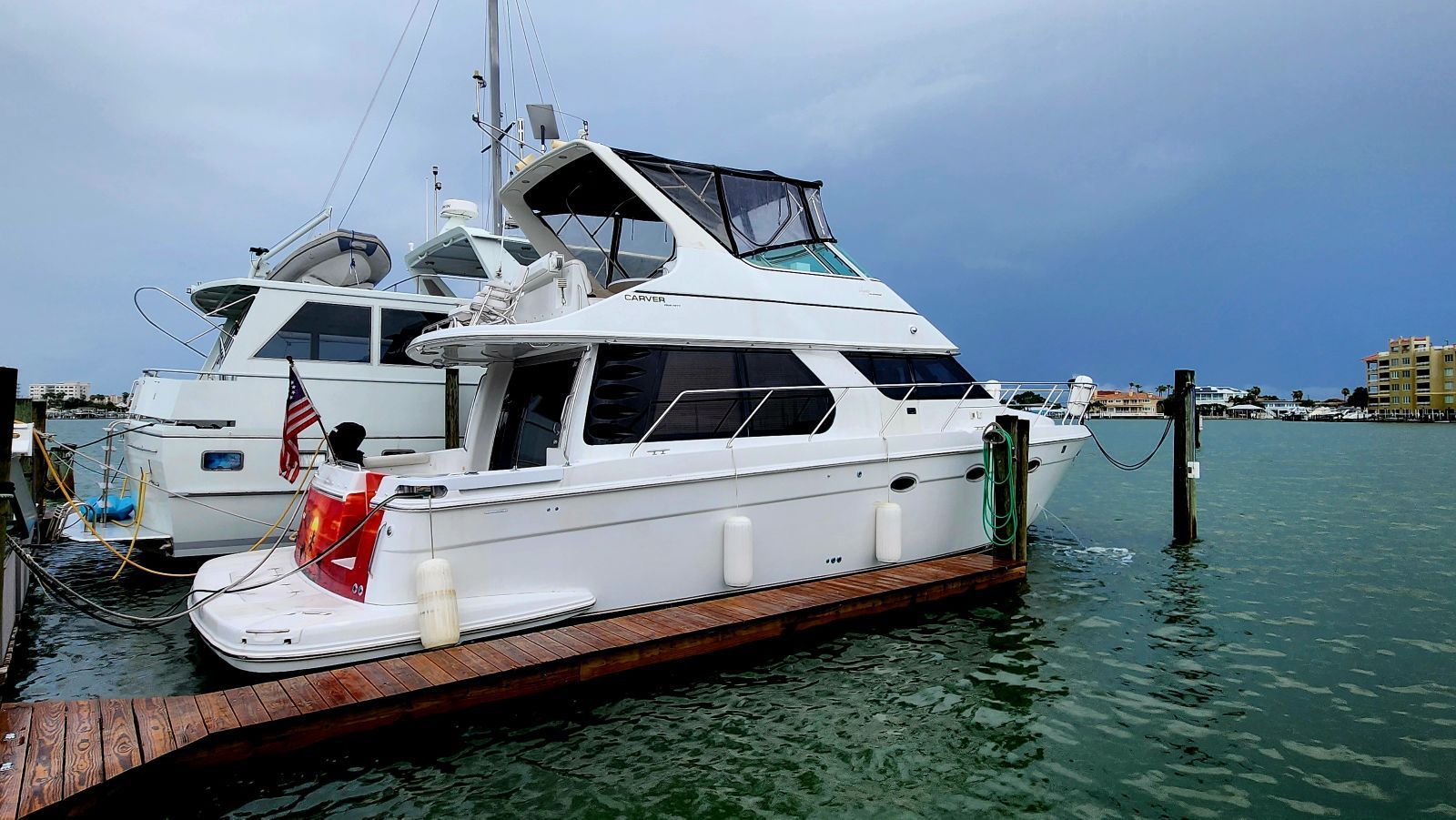 Still Waters is an exceptionally well-kept example of Carver’s popular 450 Pilothouse. With two large staterooms, two full heads, a spacious salon, raised pilothouse, and expansive flybridge, she offers the perfect blend of comfort, performance, and livability. Her current owners have invested heavily in upgrades across all systems—mechanical, electrical, interior, and exterior—making her one of the cleanest, most turn-key 450s on the market.Powered by twin Volvo TAMD74EDC Penta diesels with LESS THAN 900 Hours and complemented by a Kohler 13.5KW generator with less than 700 hours, bow thruster, and modernized electronics, Still Waters is equally at home on the Great Loop, extended coastal cruising, or serving as a comfortable liveaboard. Major improvements include new Garmin MFDs at both helms, Starlink internet, multiple new A/C units, LED lighting conversion, custom cabinetry, new flooring and carpet, updated appliances, rebuilt thruster, bottom paint (2023), new canvas and helm seating covers, and a long list of mechanical servicing and reliability upgrades.Boarding is safe and simple via the oversized swim platform and protected aft cockpit. Sliding glass doors lead into the bright and open salon with updated furnishings, entertainment systems, and a full-featured galley just steps away. Forward, the raised pilothouse doubles as an upper salon with panoramic visibility, modern electronics, and direct side-deck access for easy docking. Below, the full-beam master stateroom aft features abundant storage and a private ensuite head, while the forward VIP stateroom is equally comfortable with its own access to the guest/day head.The flybridge is a true highlight, with expansive seating, new canvas and isinglass, helm upgrades, refrigeration, and plenty of space for entertaining.Whether your plans include completing America’s Great Loop, seasonal cruising, or enjoying marina life in comfort, Still Waters is a ready-to-go Pilothouse that has already had the big-ticket items addressed. Her meticulous care and extensive upgrade history set her apart from others in her class.