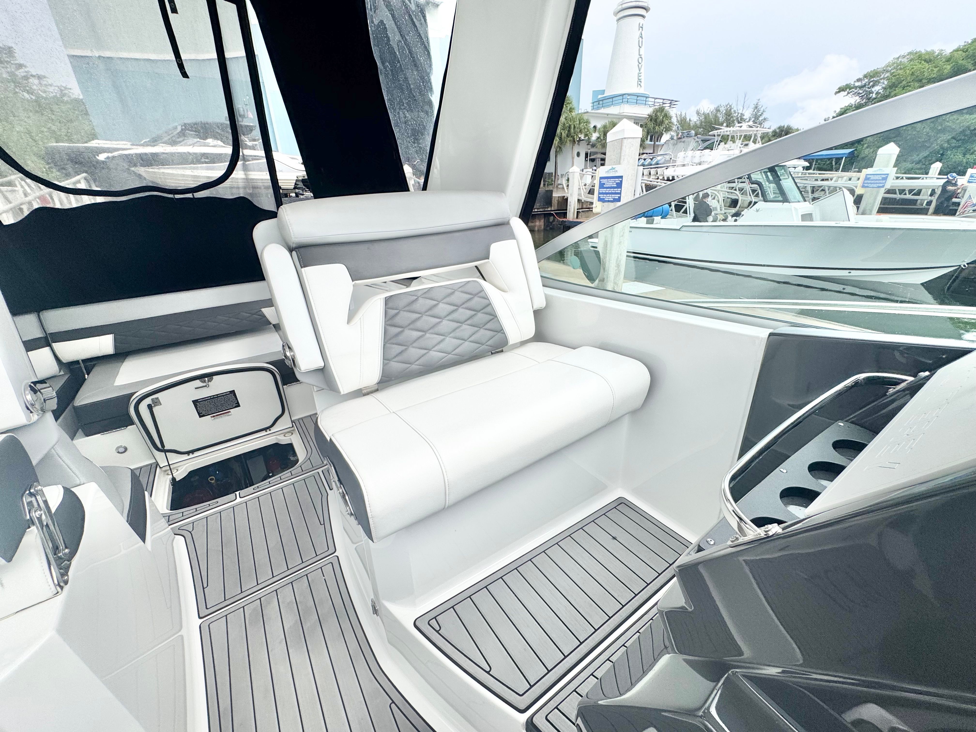 2021 Monterey 335 Sport Yacht - Like New with Only 147 HoursThis pristine 2021 Monterey 335 Sport Yacht is a rare find, combining exceptional style, modern comfort, and powerful performance in a like-new package. With a mere 147 hours on its twin Volvo Penta 300's, this vessel has been meticulously maintained and is ready for its next adventure.The 335 Sport Yacht is designed for both exhilarating days on the water and comfortable overnight stays. The spacious cockpit features ample seating for entertaining, a wet bar, and a versatile sun lounge that can be configured for relaxation or dining. The boat’s helm is equipped with the latest electronics, offering a clean, intuitive layout for easy command.Below deck, the cabin is a testament to Monterey’s commitment to luxury and functionality. The open and airy salon includes a well-appointed galley with a microwave, refrigerator, and solid-surface countertops. The forward V-berth and an aft cabin provide comfortable sleeping arrangements for four, making it perfect for weekend getaways. A full head with a shower ensures all the comforts of home.The performance of the twin Volvo Penta 300's is outstanding, providing an ideal balance of power and efficiency. With just 147 hours of use, these engines are barely broken in, ensuring years of reliable performance. This vessel has been kept in pristine condition and shows like a new boat. It has been stored indoors at Haulover Marine Center, and the owner has a strict routine of rinsing the boat and flushing the engines after every single use—a true testament to the exceptional care this vessel has received.Key Features:• Twin Volvo Penta 300 engines with only 147 hours• Generator + AC• Spacious cockpit with wet bar and versatile seating• Modern, well-equipped helm with advanced electronics• Luxurious cabin with sleeping for four• Full galley and a complete marine head with shower• Meticulously maintained and in excellent, like-new condition