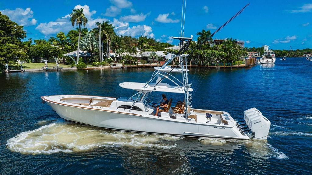 OCTOBER SKY is one of the nicest V46 Valhallas to leave the factory and one of the few available with a full gap tower. Lots of upgrades and options. She is a beast of a center console that can run with the best of them. Need to get to the fishing grounds fast, she can cruise at 50 mph. Want to take the the family and friends out for a day on the water, its a spacious day boat with room to lounge. Built with numerous options & upgrades!Custom Gap TowerQuad Mercury V12's, 600 HP w/ JoystickGenerator, Garmin electronics packageSeakeeper 6, bow thruster, A/C helm & seatsUpgraded Release Marine jump seatsUpgraded upholstery, coaming bolsters, underwater lights