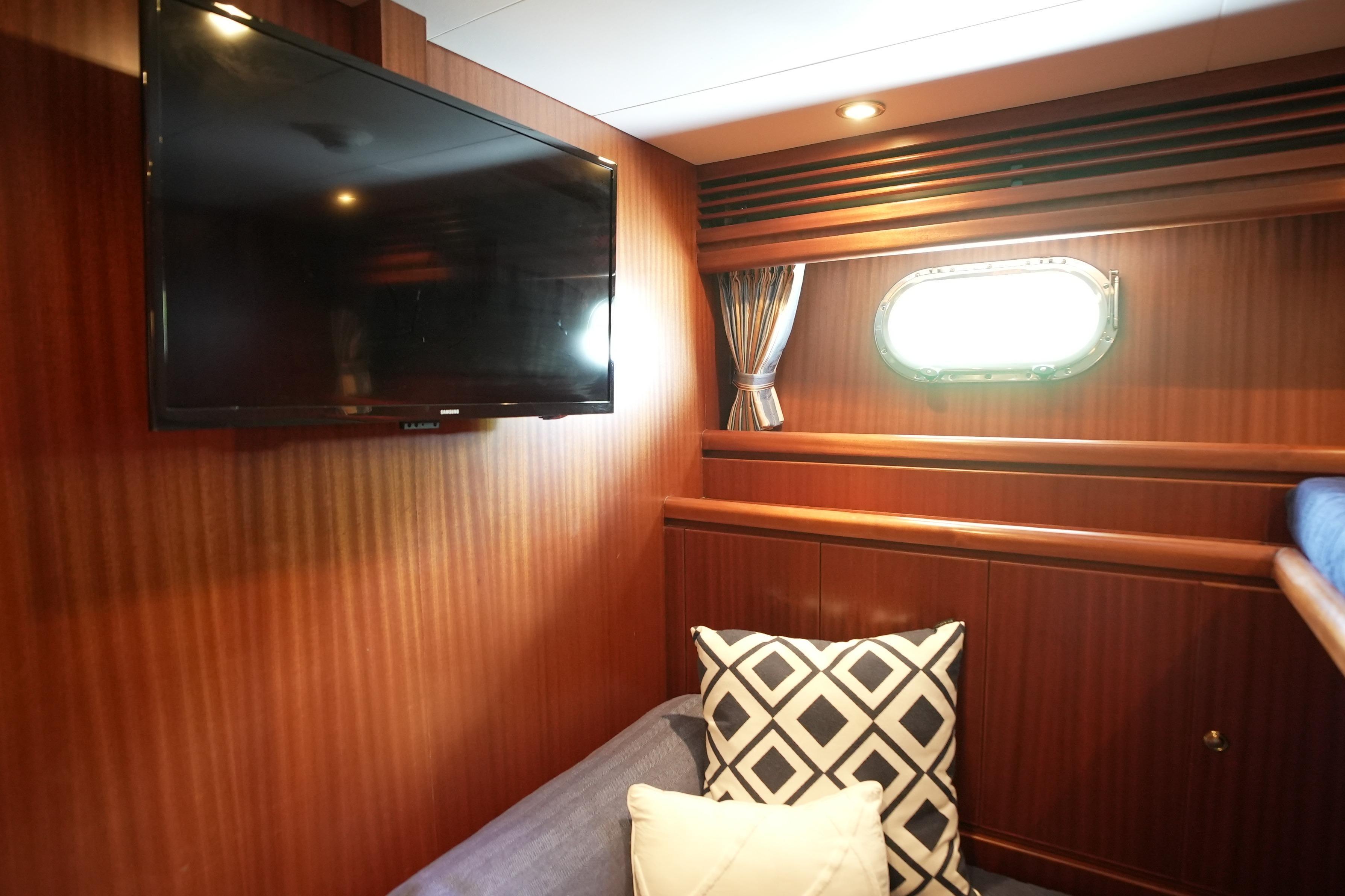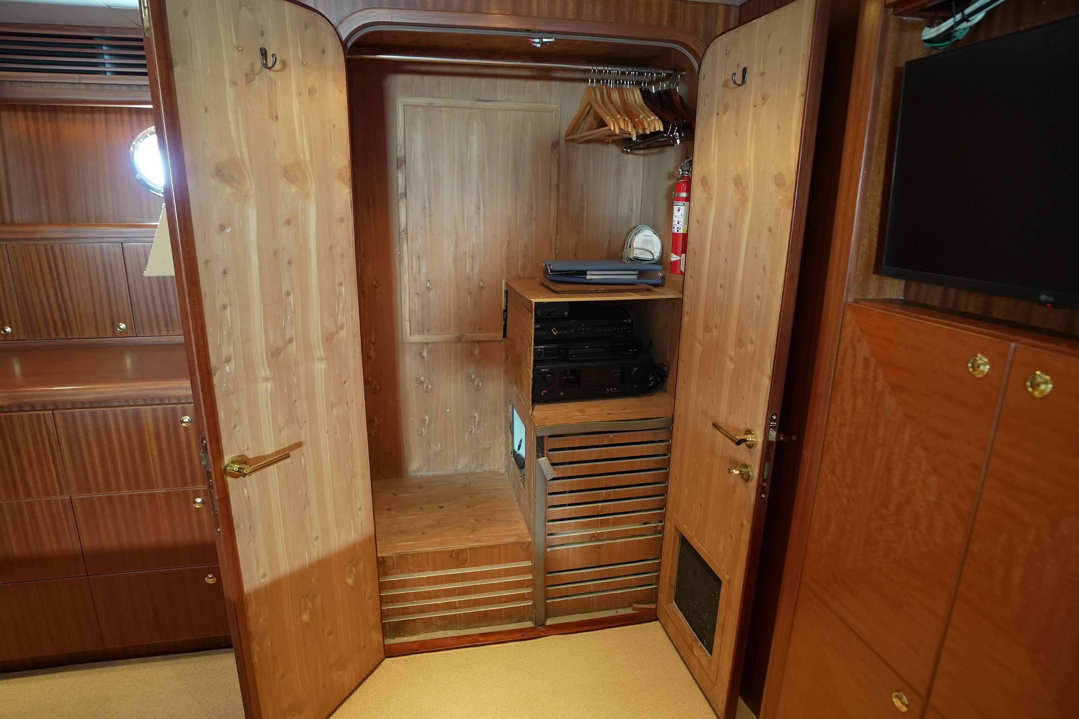 - To port, additional storage drawers, counters for display, and another closet add further practicality. Designed for extended travel, this yacht offers abundant storage and entertainment features, including a Sharp 27" HD LG Smart TV mounted on the forward wall. (2024)