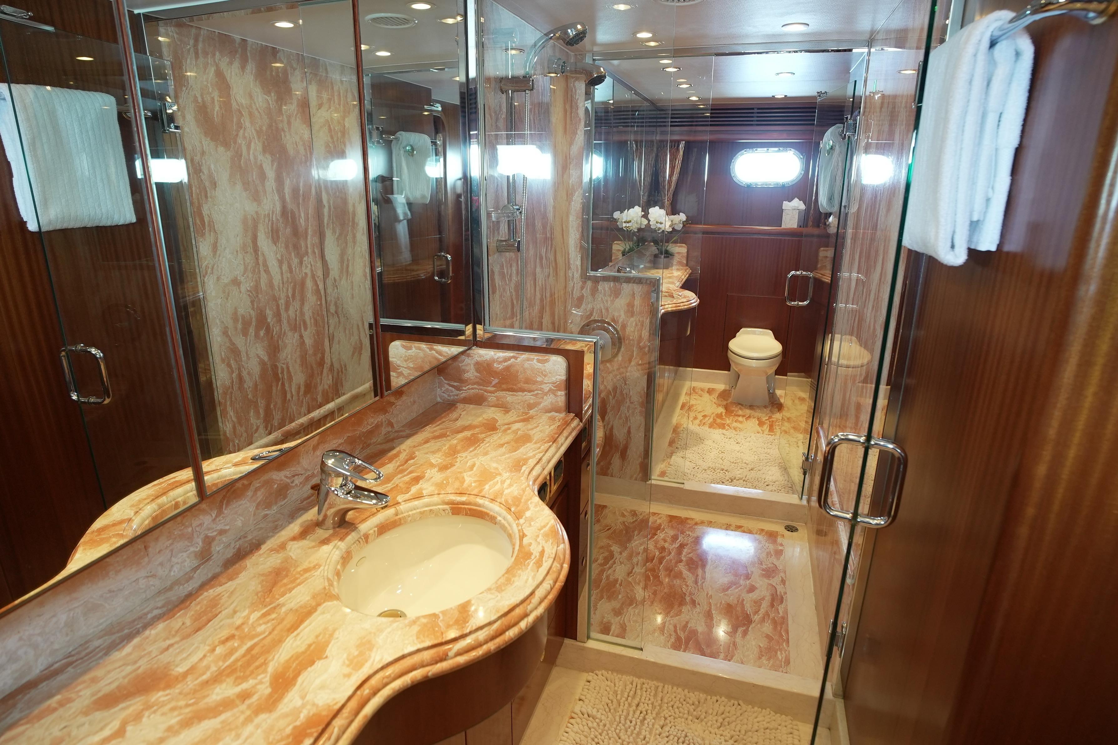 Each stateroom is fitted with a private en suite head complete with a full shower, while the master stateroom offers his and her heads. Perfect for both travel and entertainment, this yacht is designed to deliver comfort and style.
